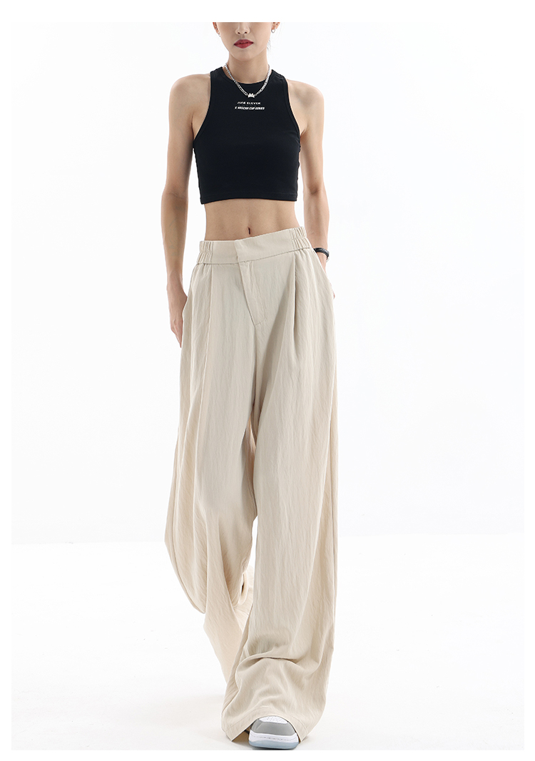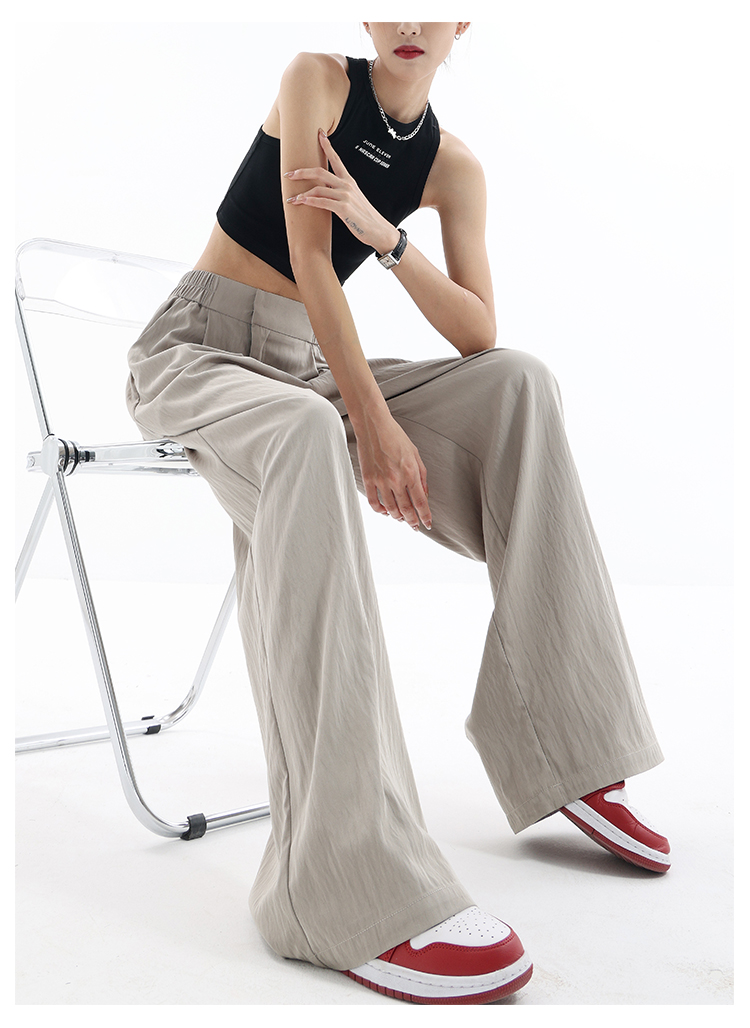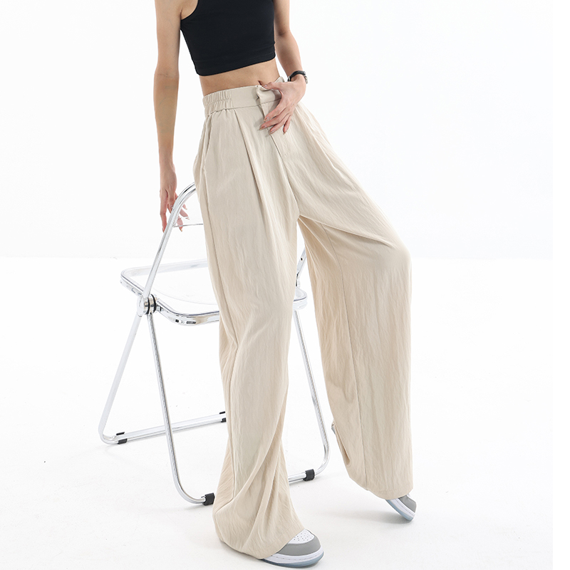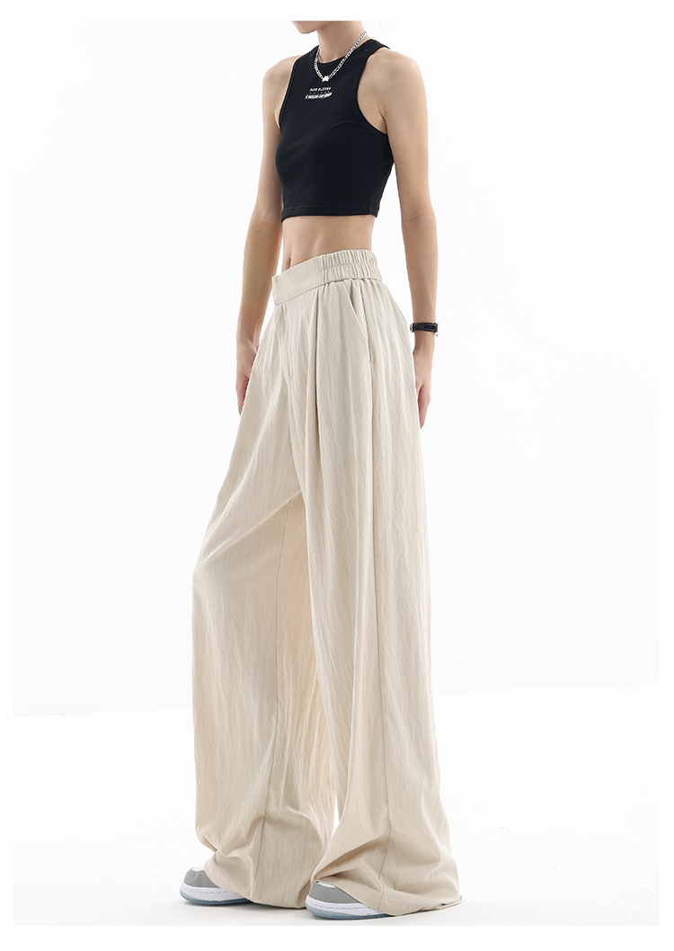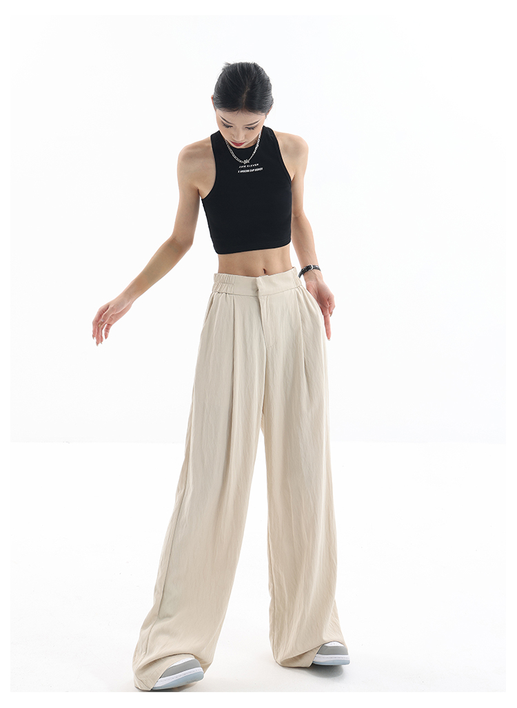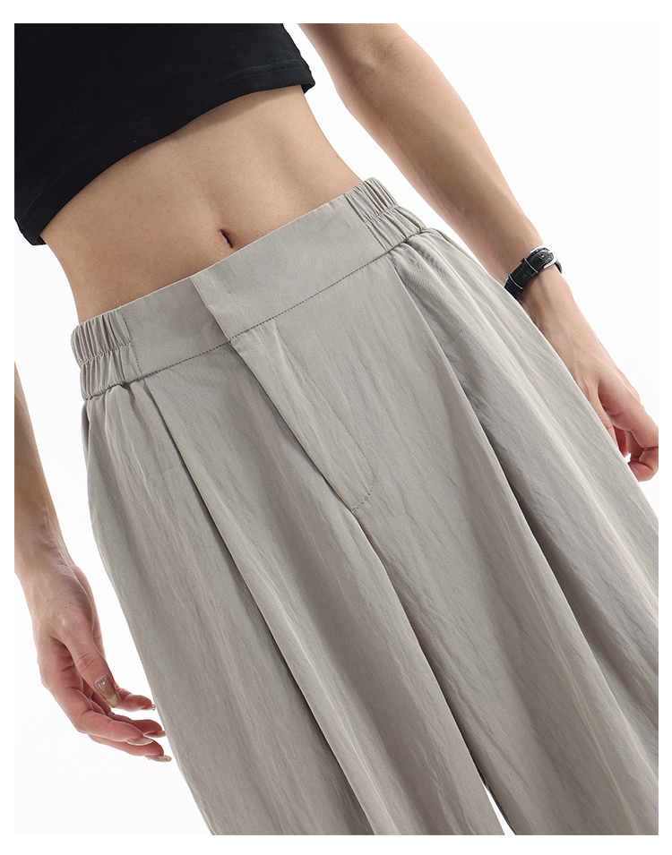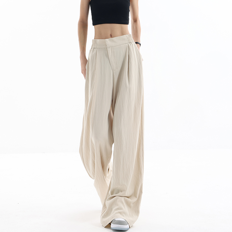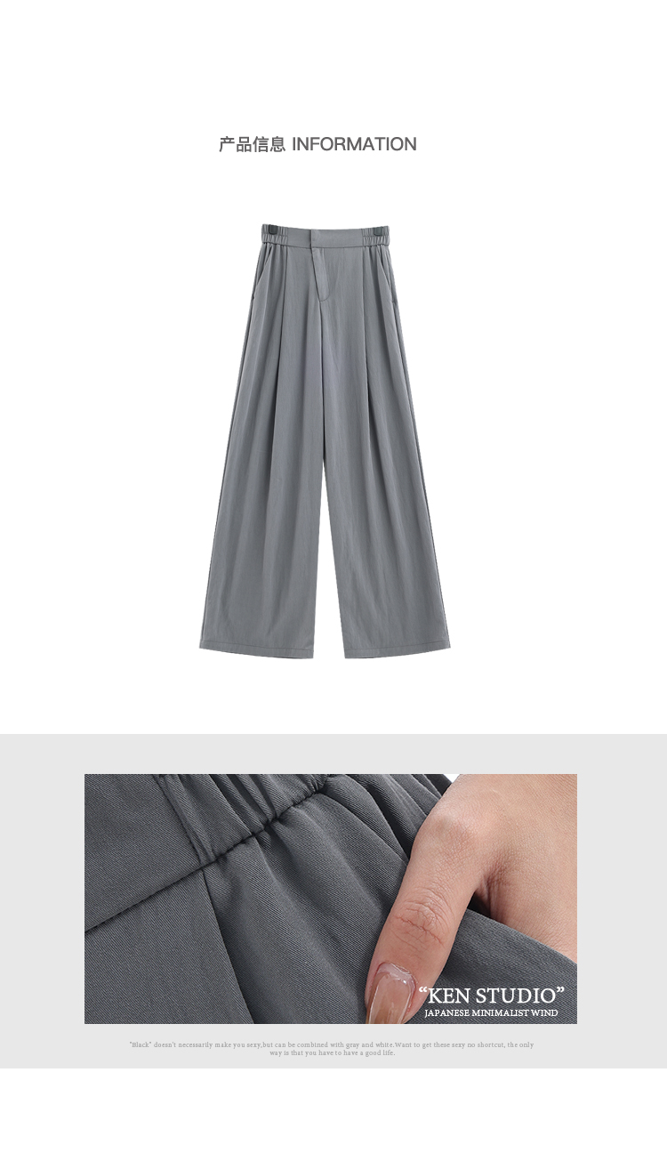 KEN STUDIO天絲闊腿西裝褲女夏薄款褶皺慵懶設計感寬鬆休閒褲褲子