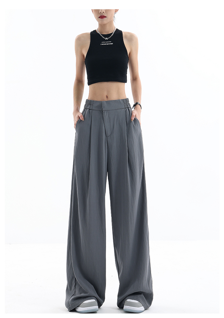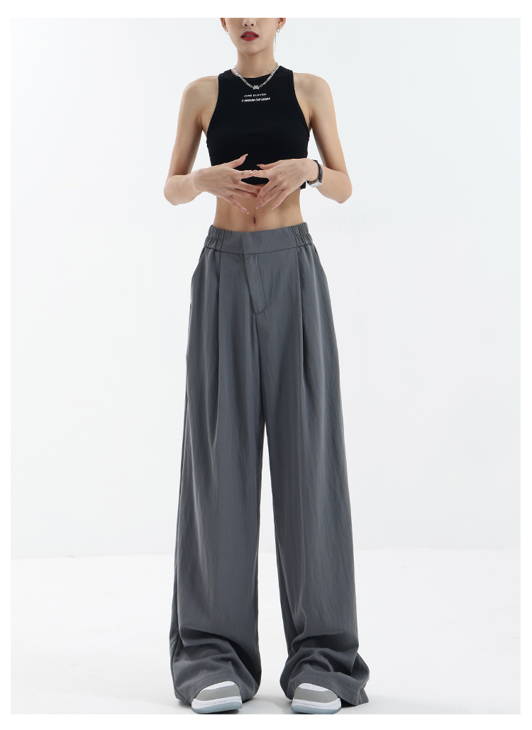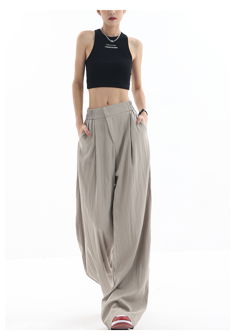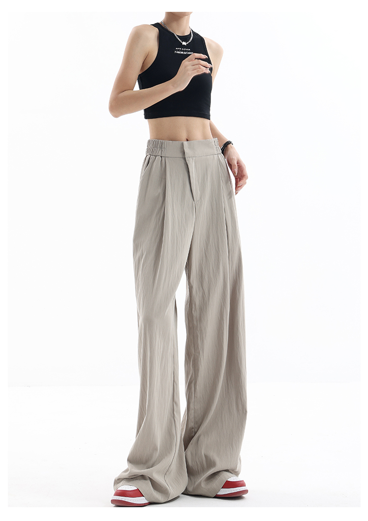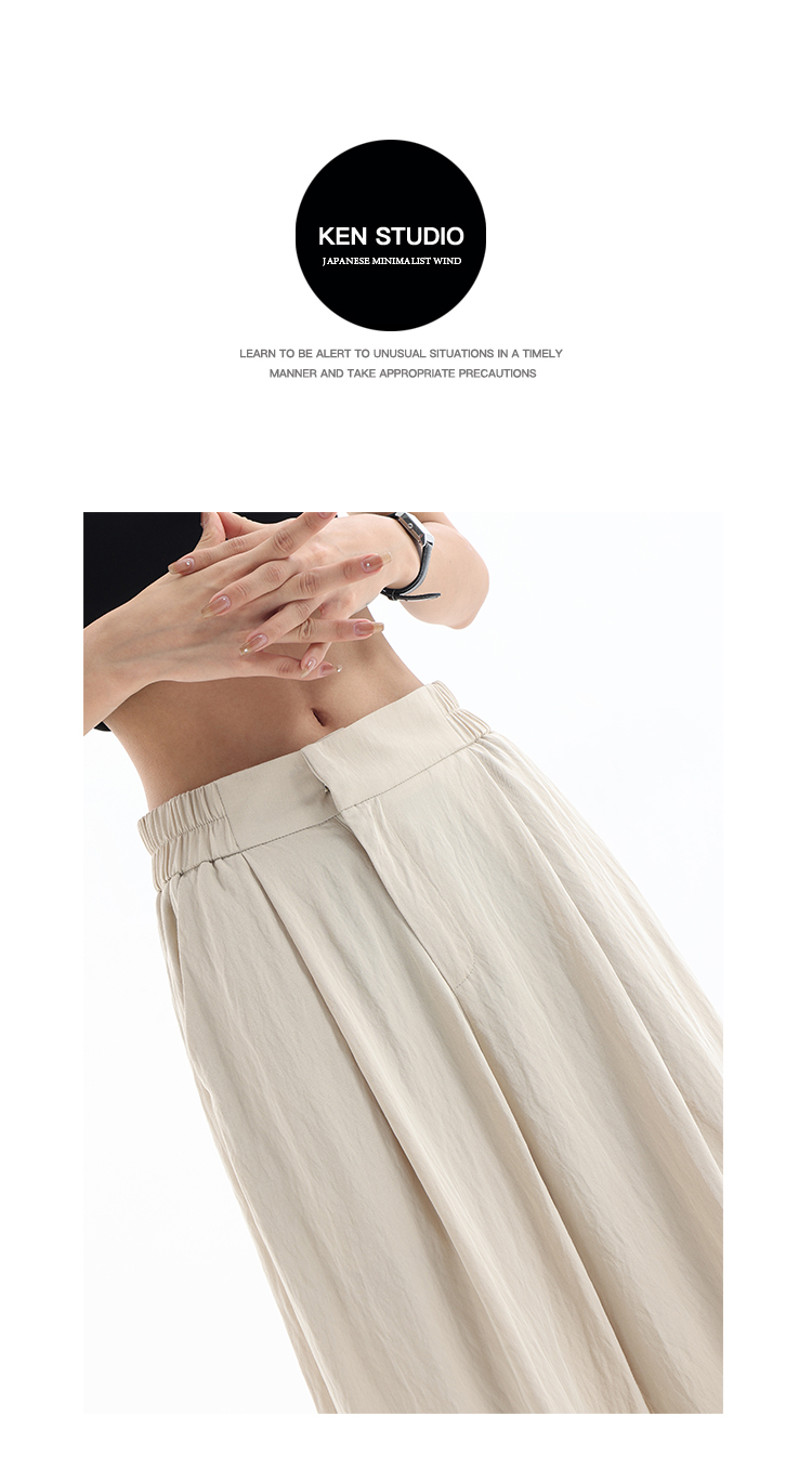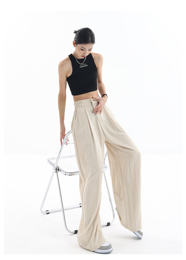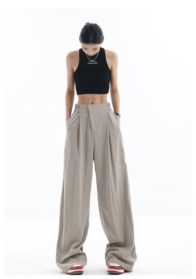 KEN STUDIO天絲闊腿西裝褲女夏薄款褶皺慵懶設計感寬鬆休閒褲褲子