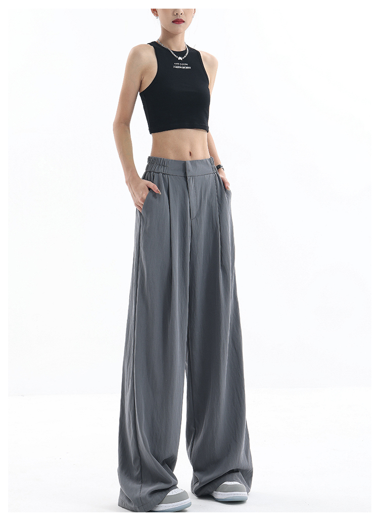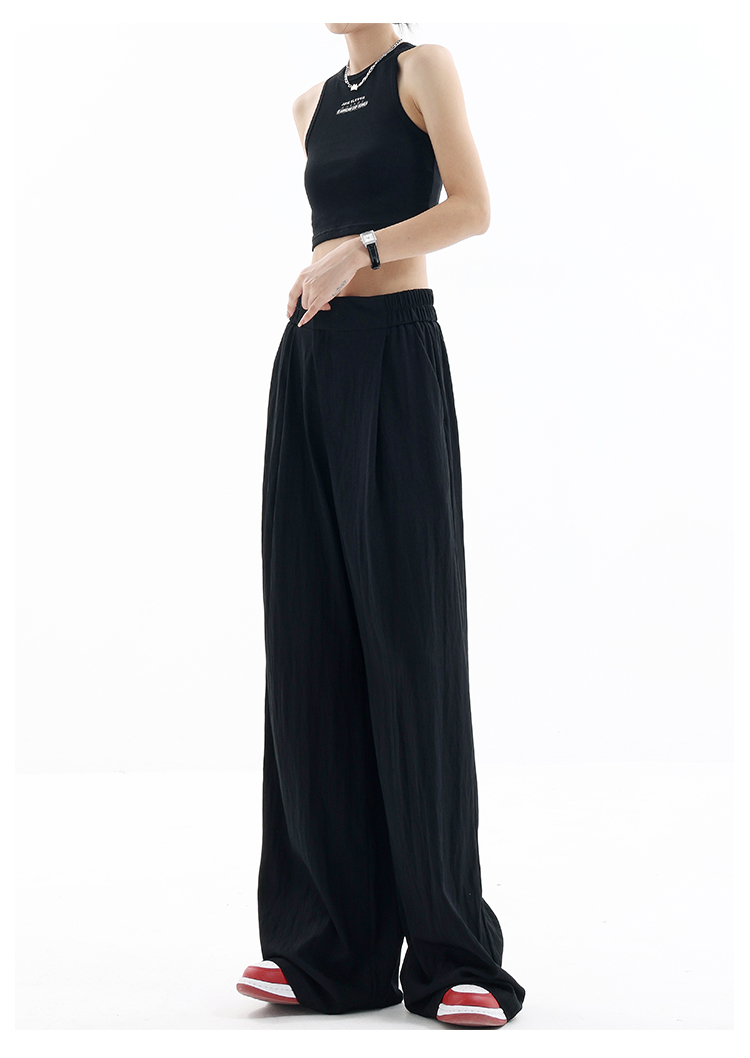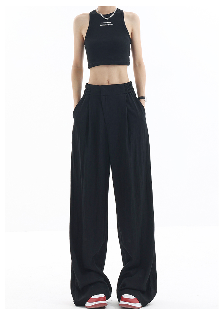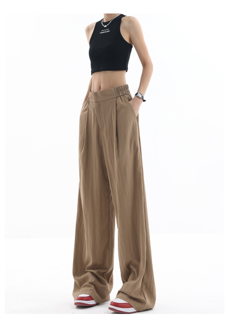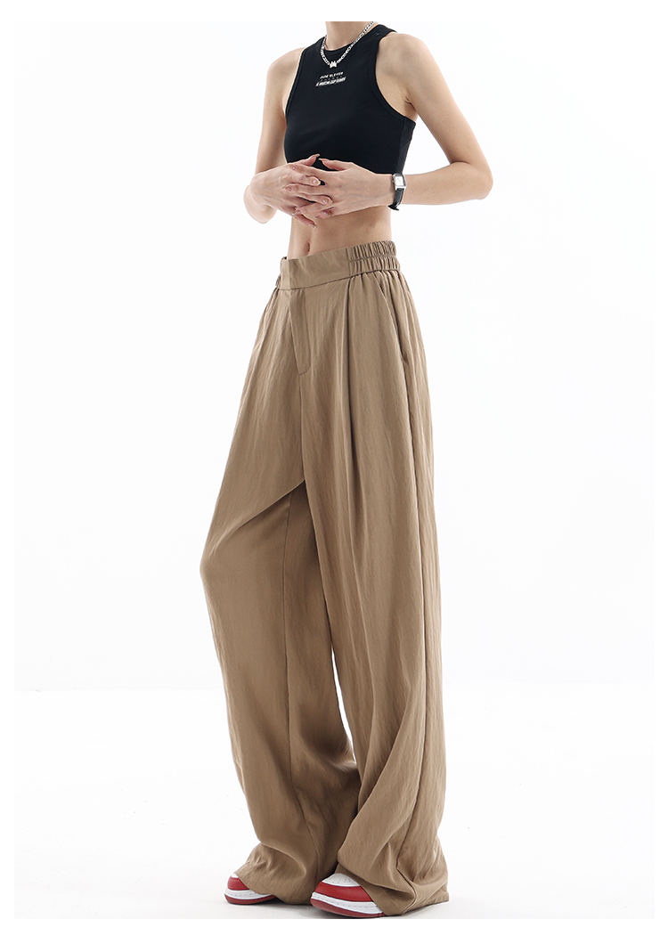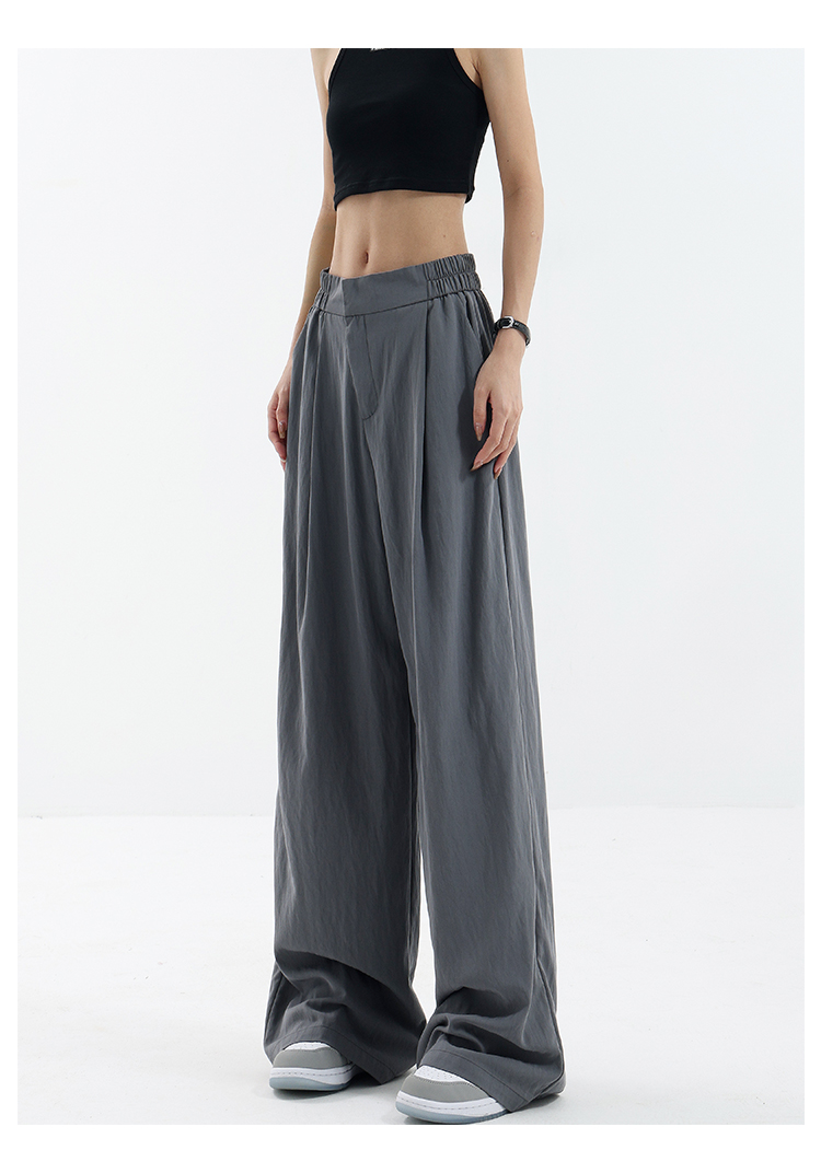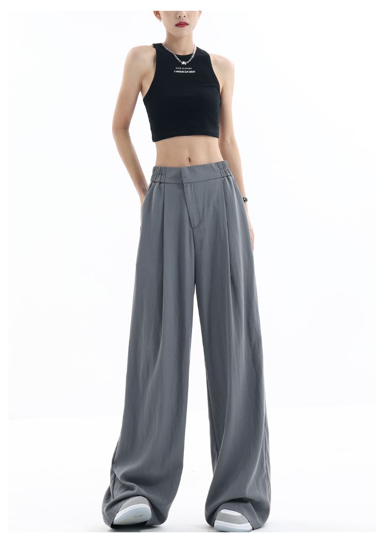 KEN STUDIO天絲闊腿西裝褲女夏薄款褶皺慵懶設計感寬鬆休閒褲褲子