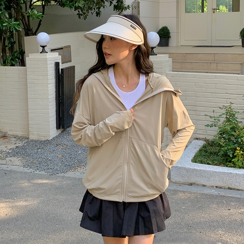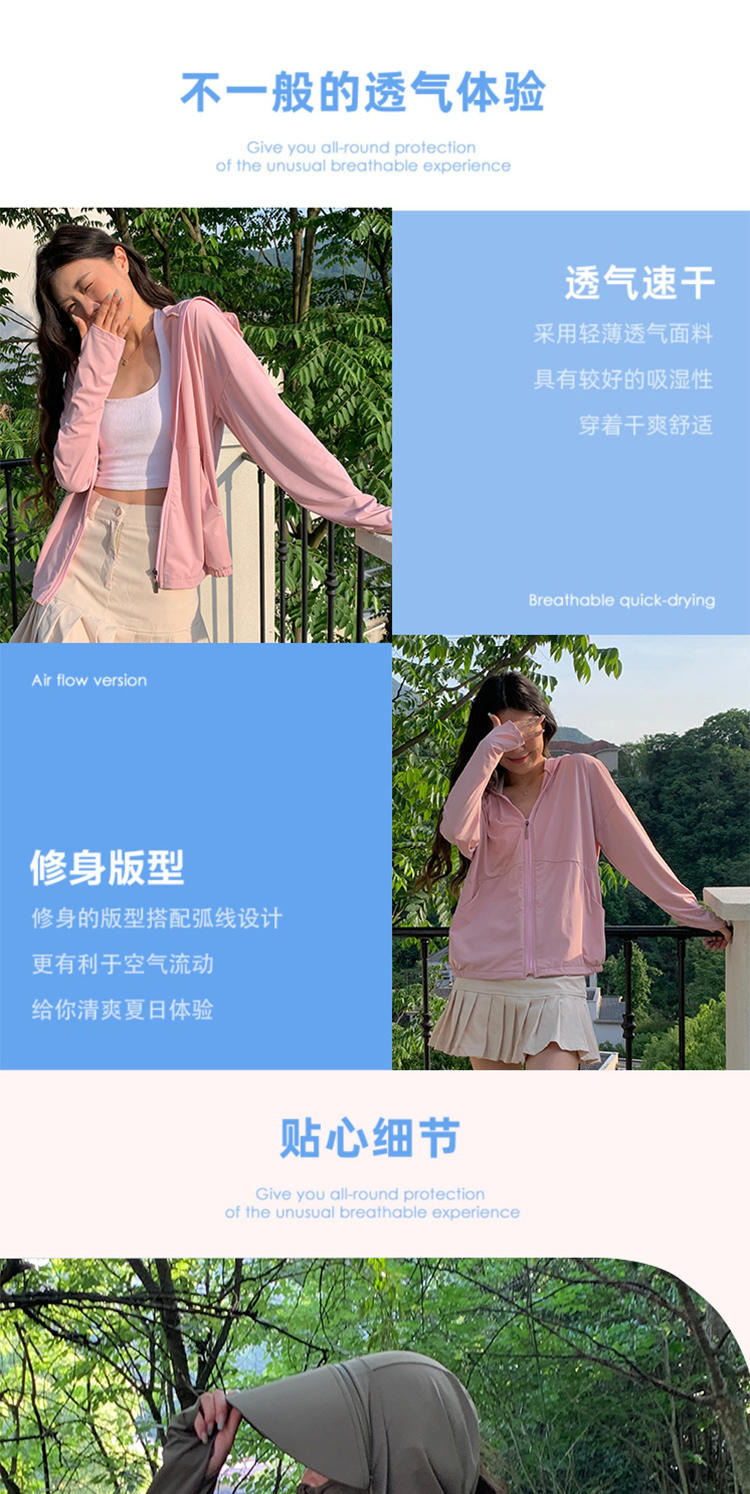 防曬衣女2023新款夏抗UV冰絲透氣防曬服戶外休閒連帽薄款外套