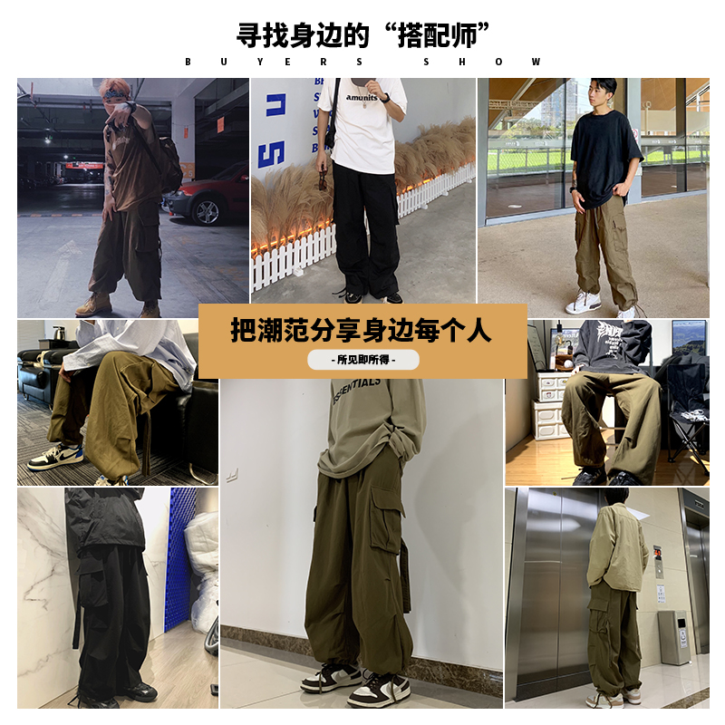 美式工裝褲男寬鬆大尺碼機能束口褲春秋潮牌高街男款休閒長褲子夏季