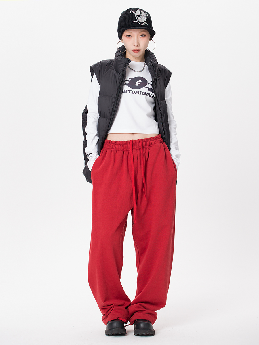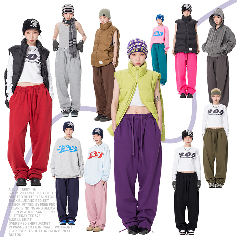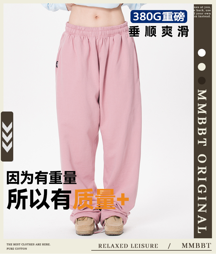 MMBBT 爵士舞褲子女款跳舞hiphop街舞垂感寬鬆粉色休閒運動滑板褲