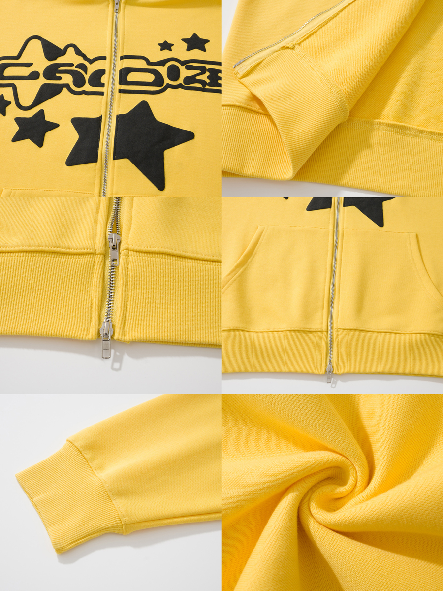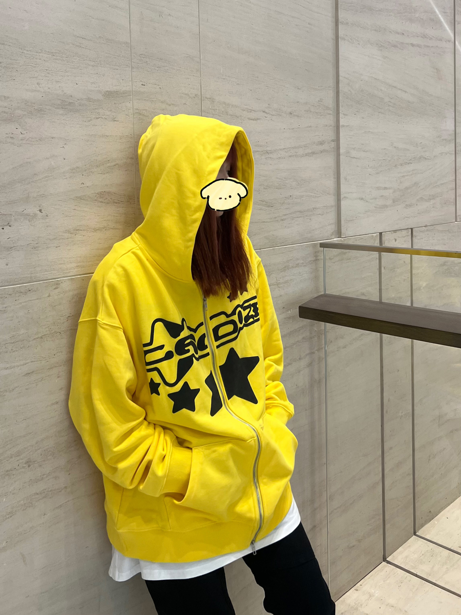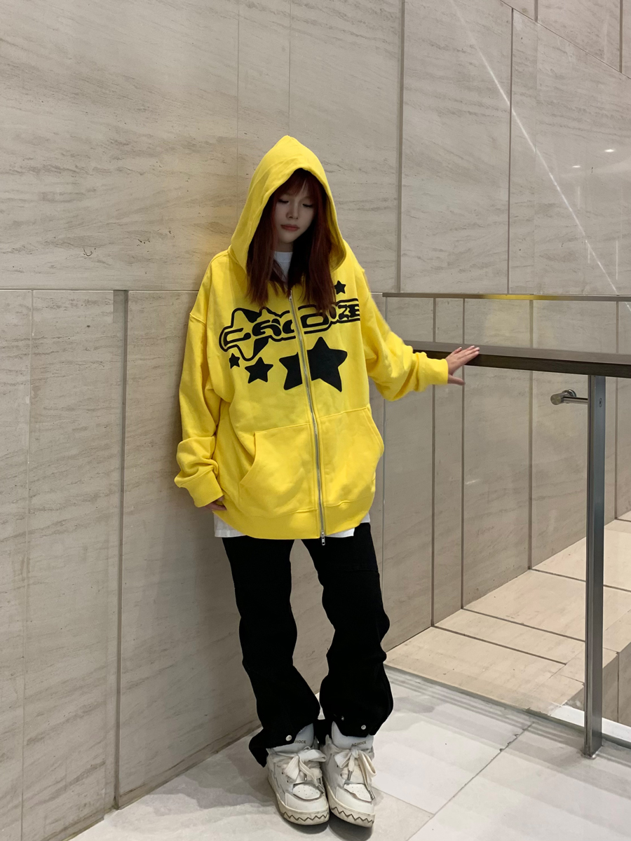 JU403 原創國潮星星字母印花連帽運動衫秋季男女寬鬆拉鍊開衫外套潮