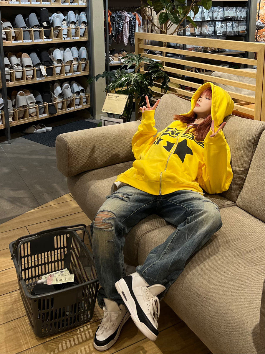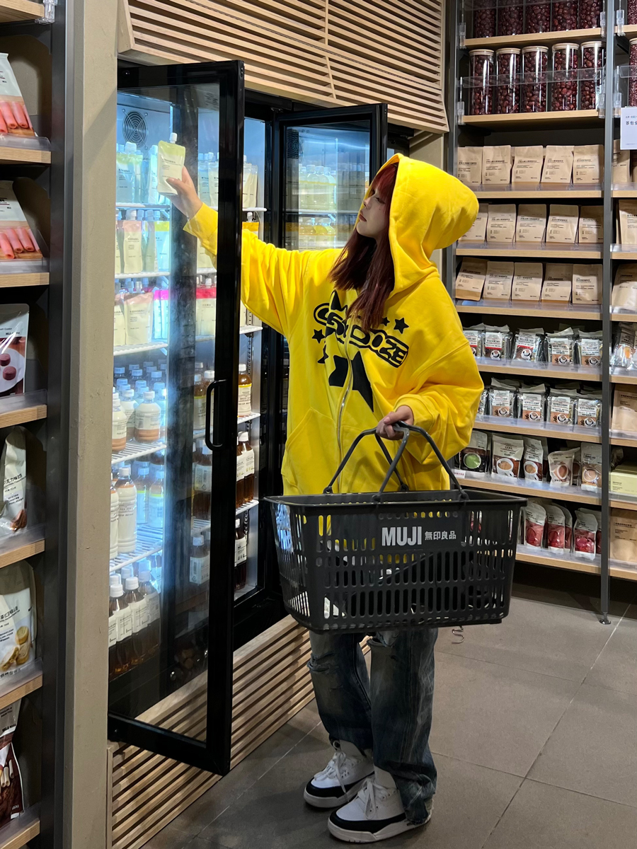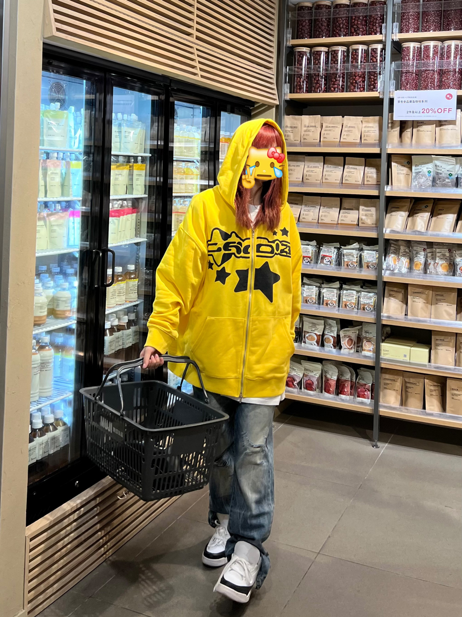 JU403 原創國潮星星字母印花連帽運動衫秋季男女寬鬆拉鍊開衫外套潮