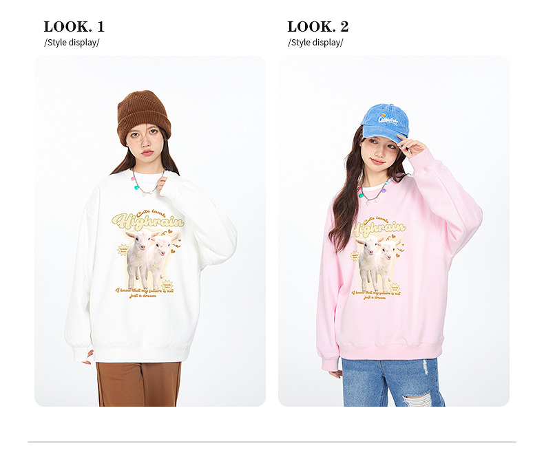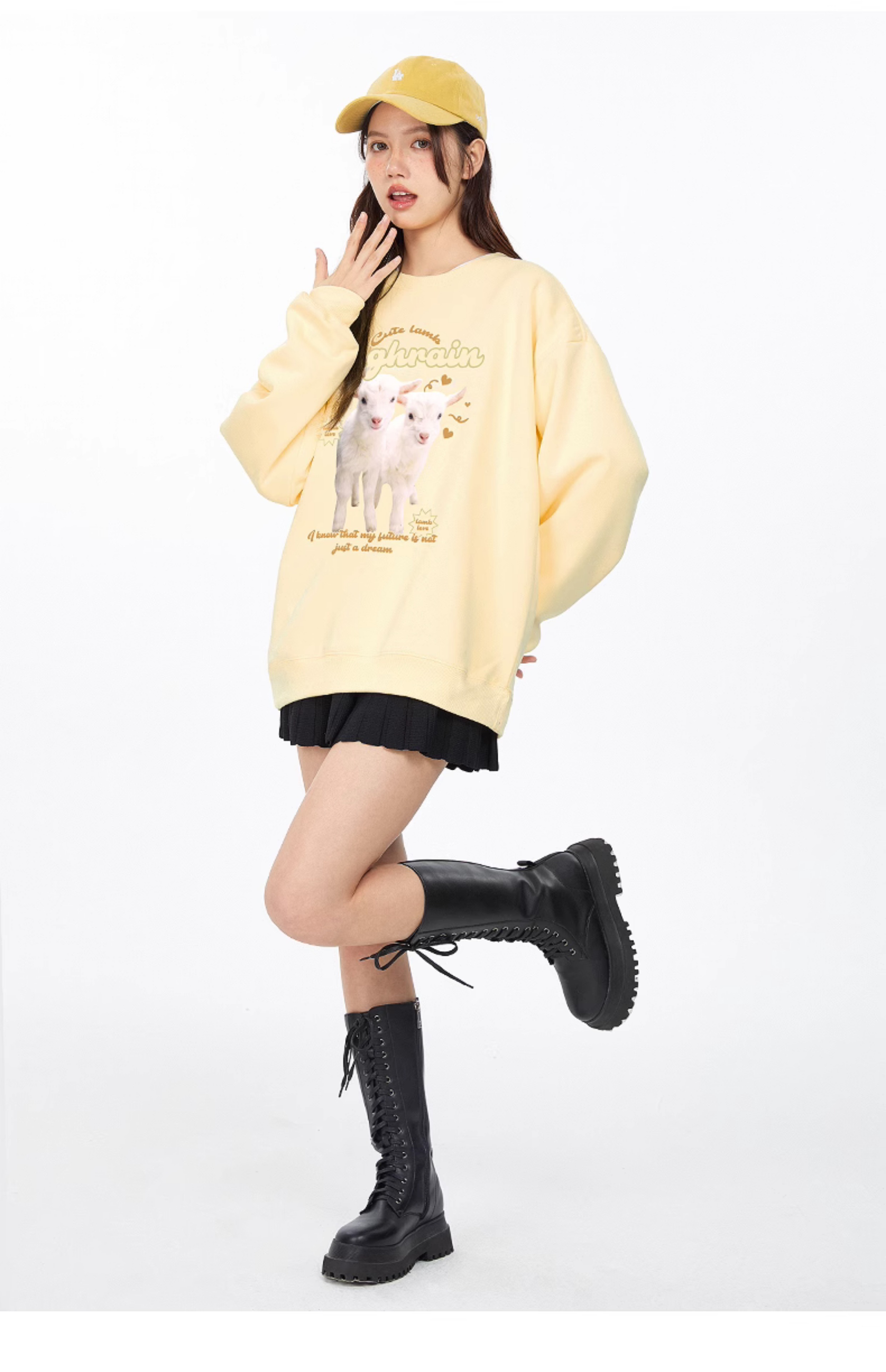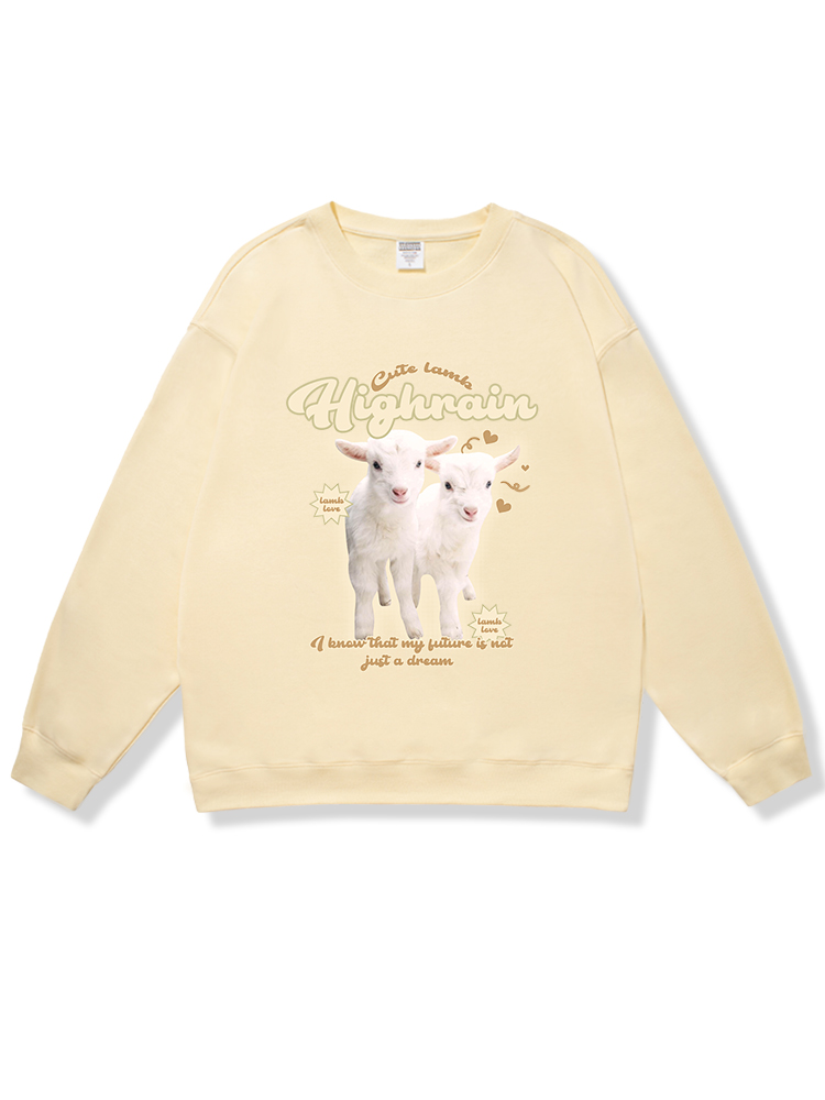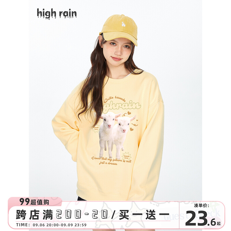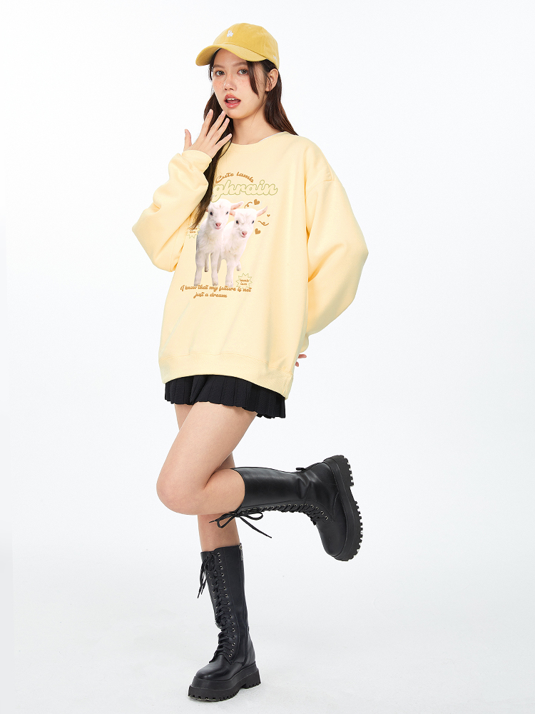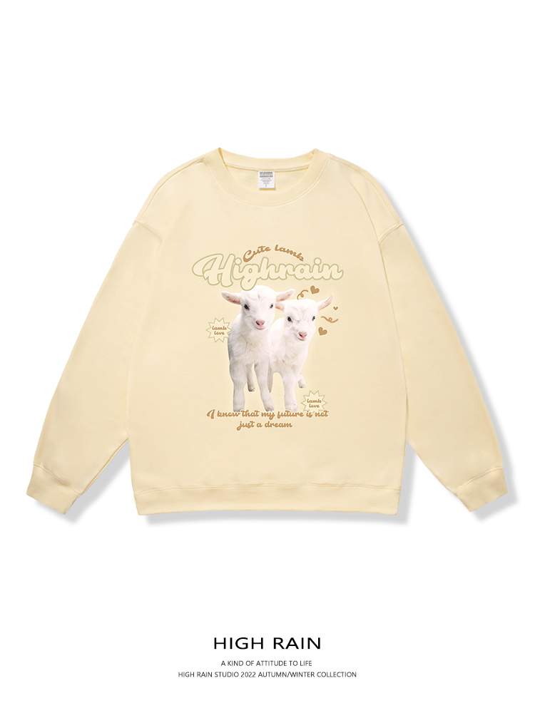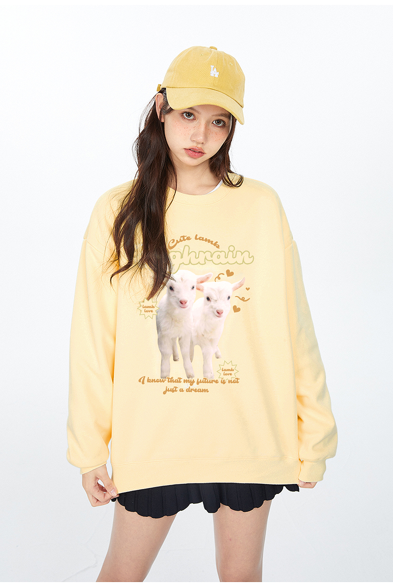 很潤工作室秋季今年流行漂亮小羊學院風衛衣女春秋奶黃色圓領上衣