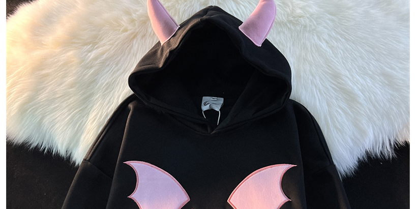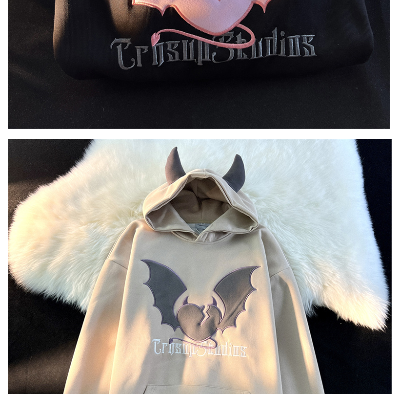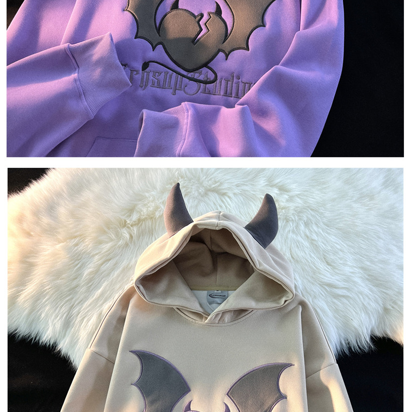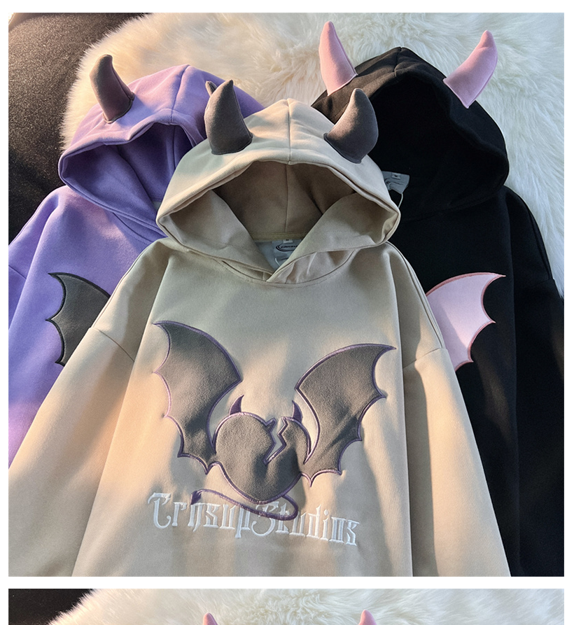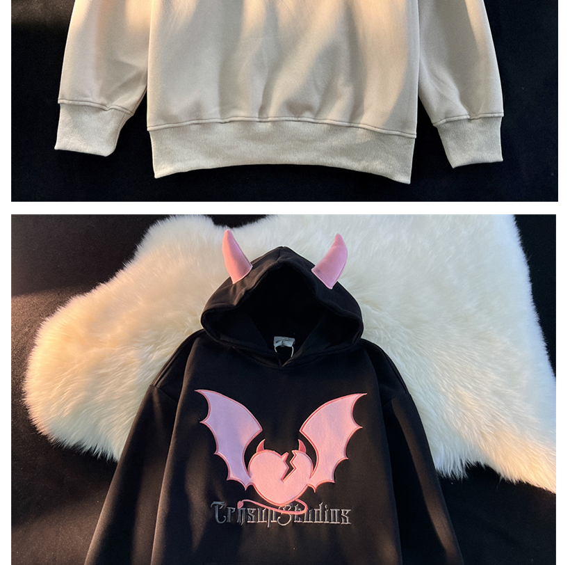 美式復古刺繡小惡魔連帽運動衫女春秋2023新款潮牌oversize高街外套