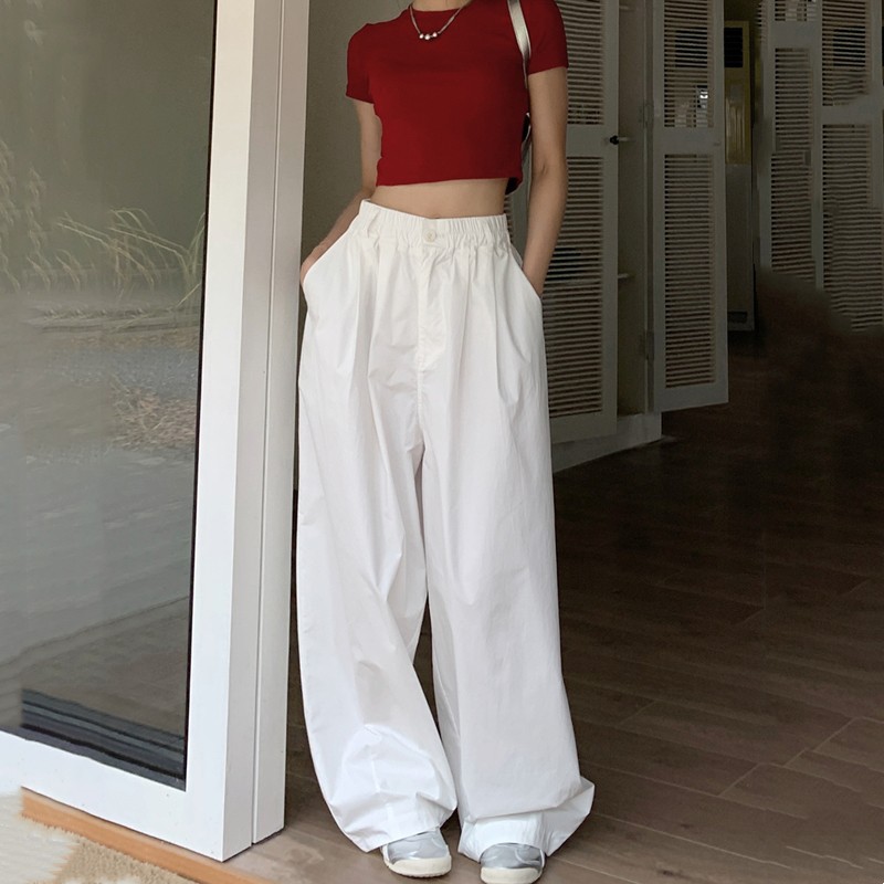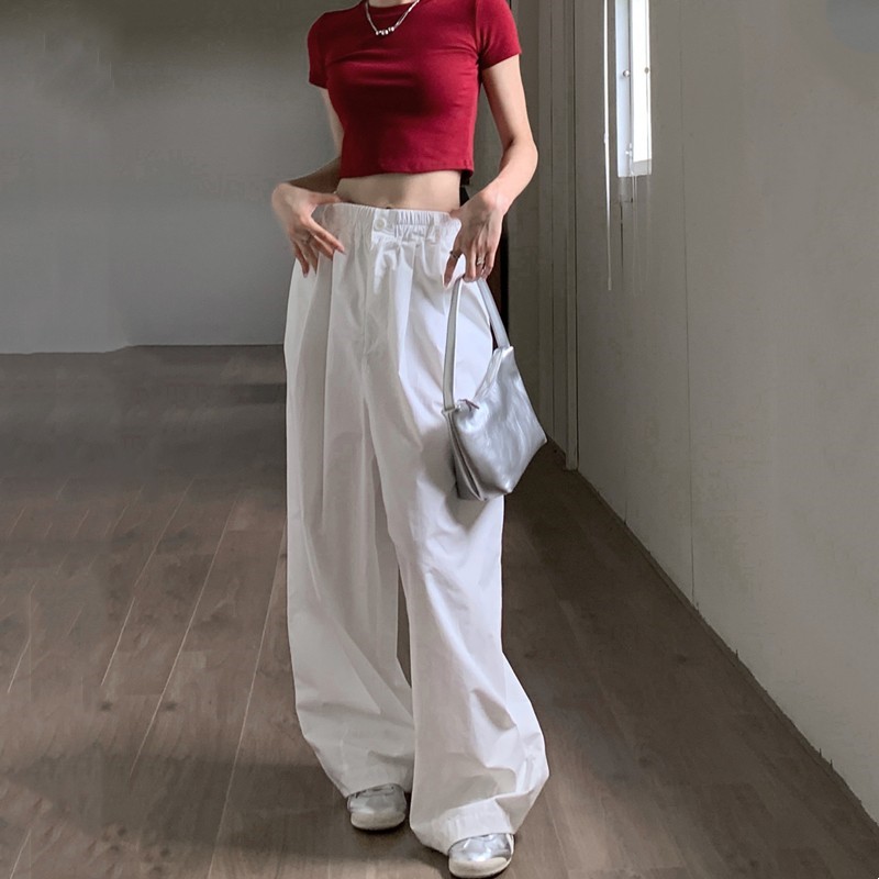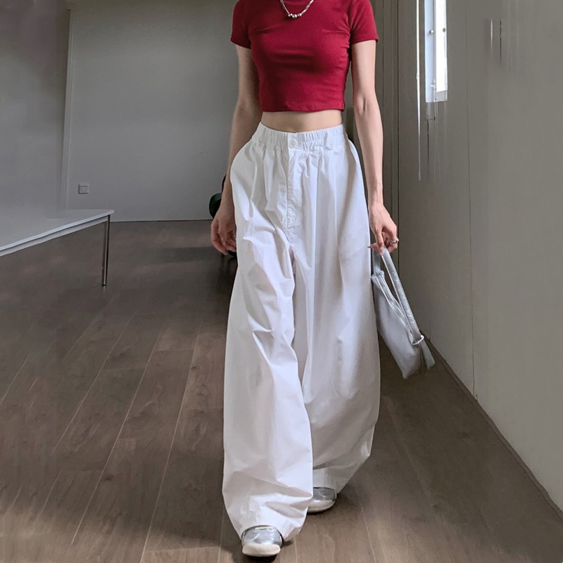 菡尚潮品~日系嘻哈白色褲子女純棉寬鬆潮牌休閒寬褲oversize風