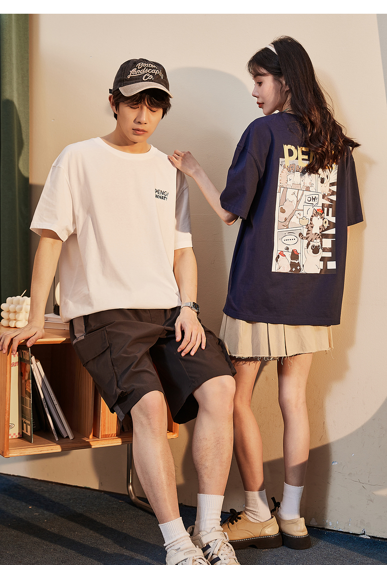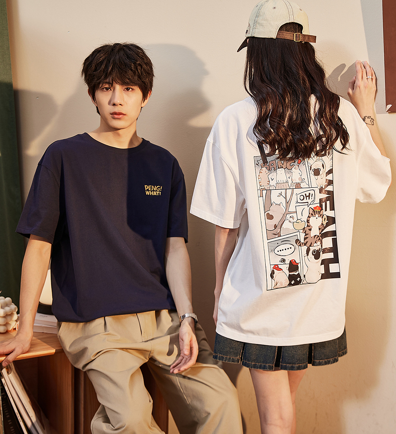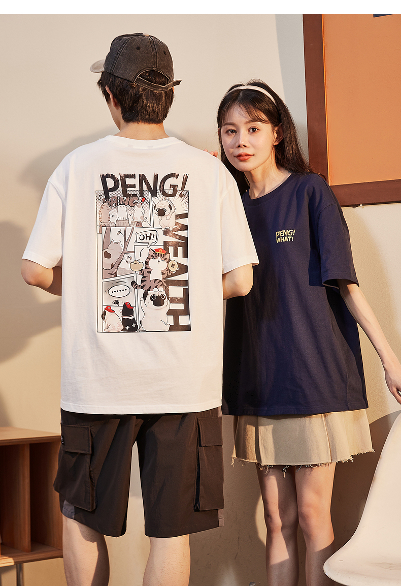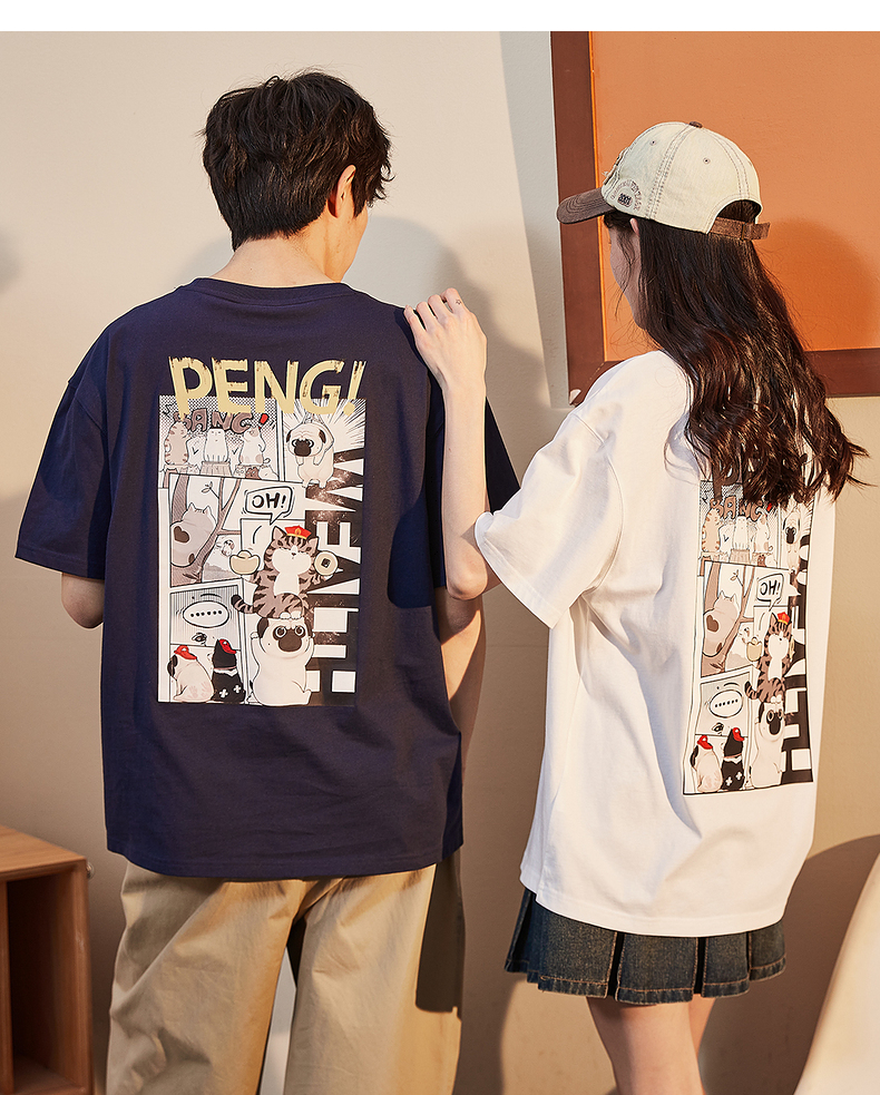 [吾皇貓聯名]唐獅2023夏季新款情侶短袖T恤印花男女半袖情侶裝潮