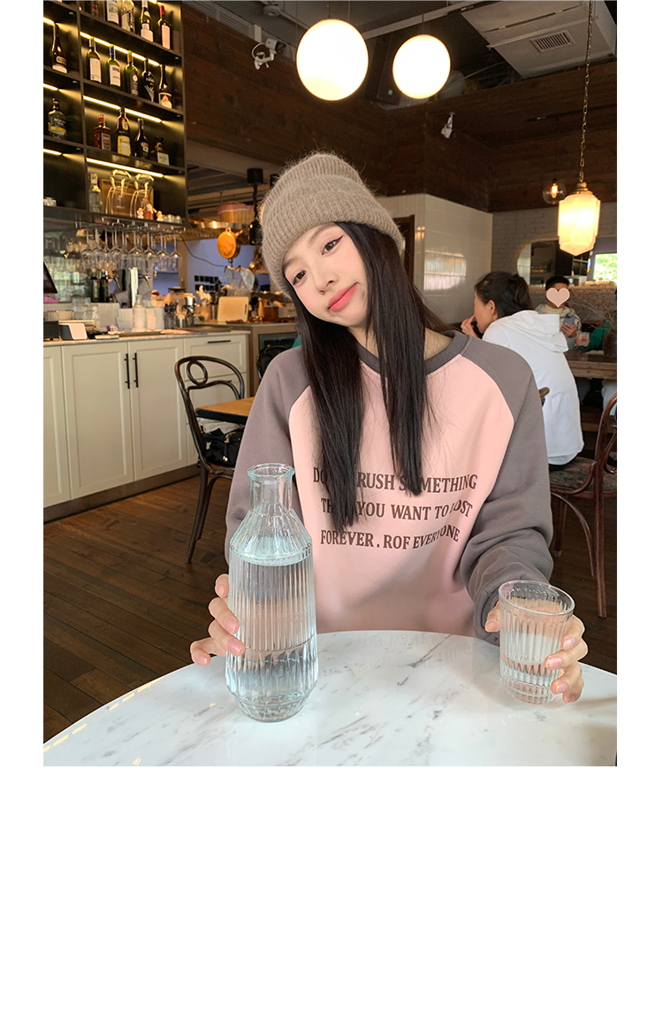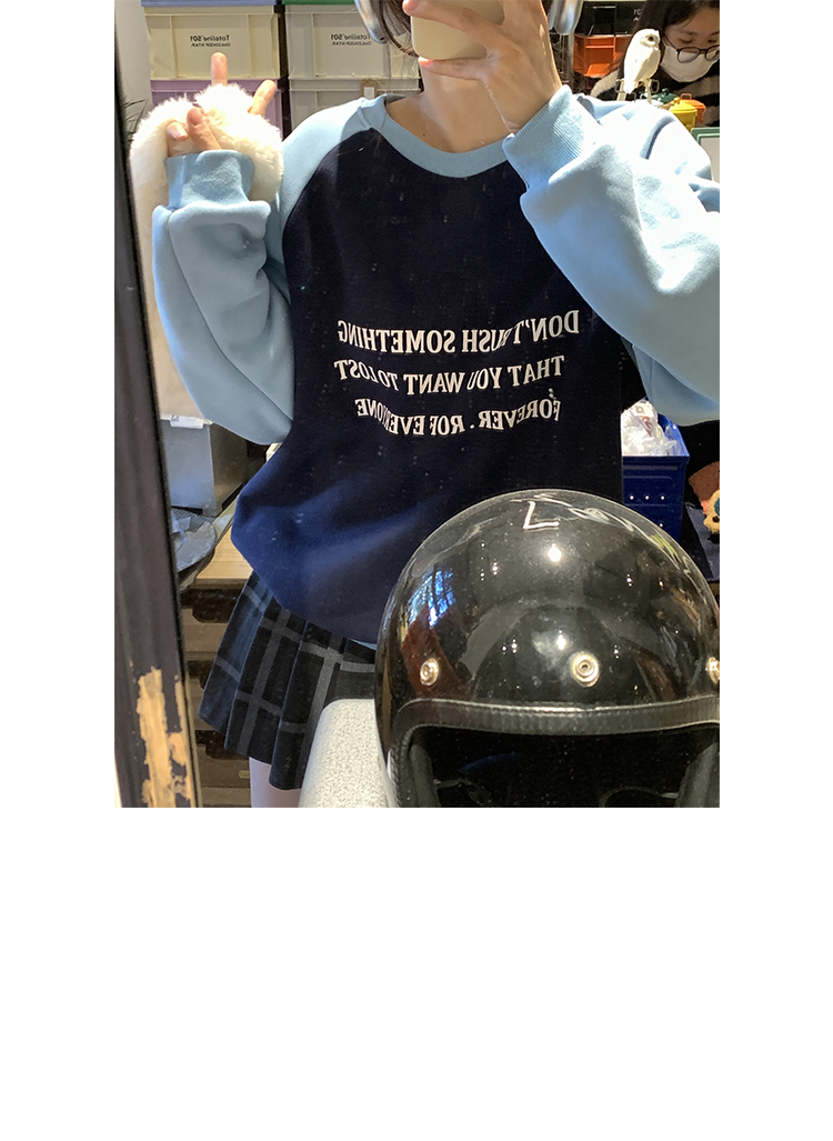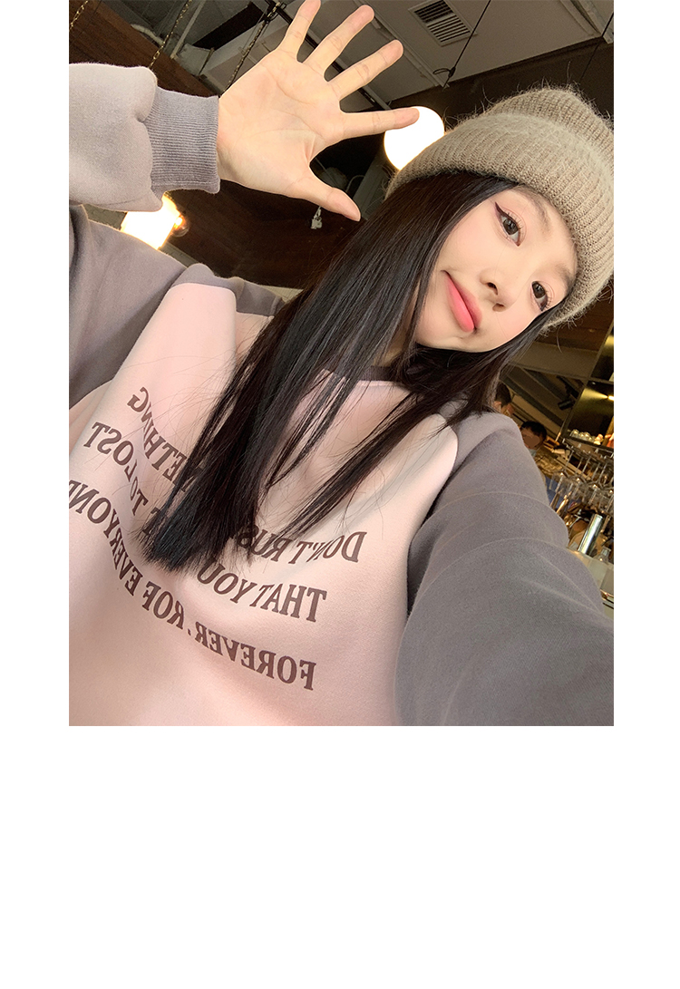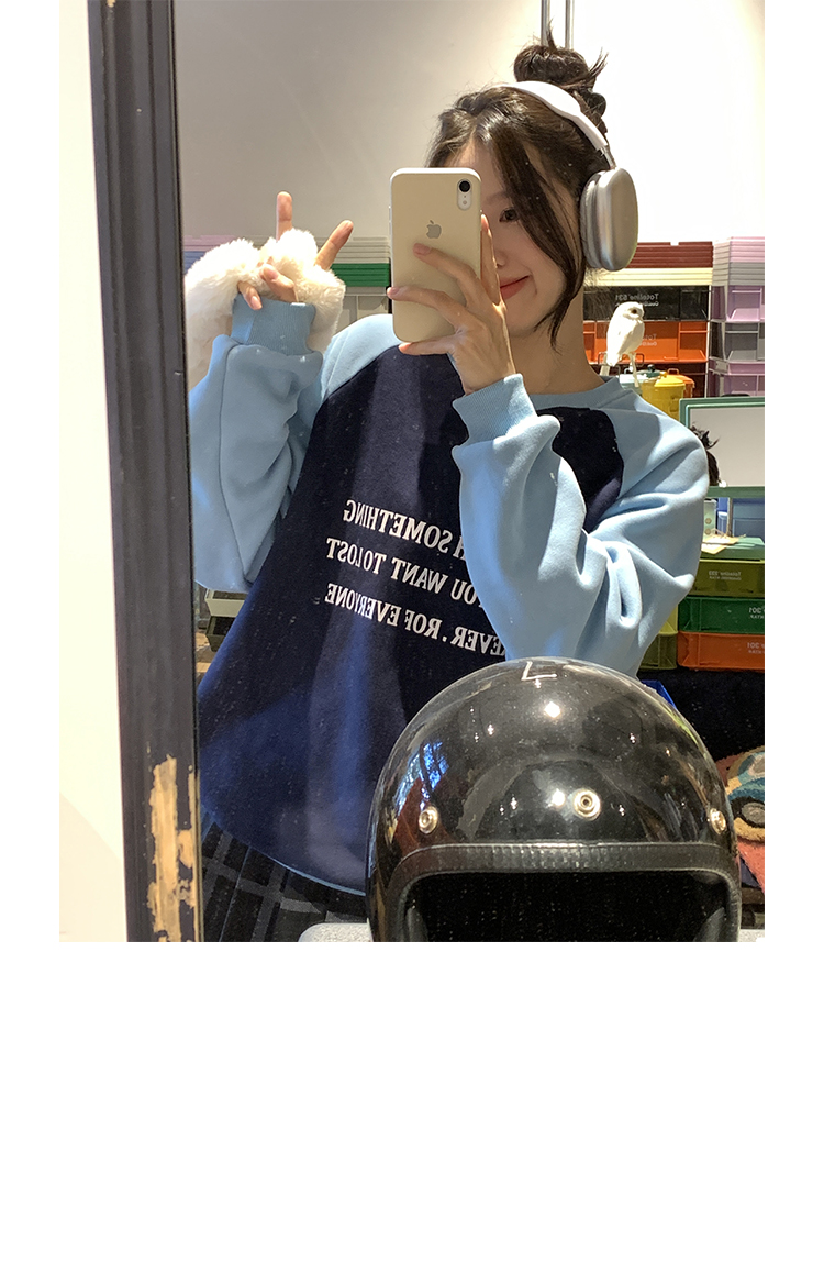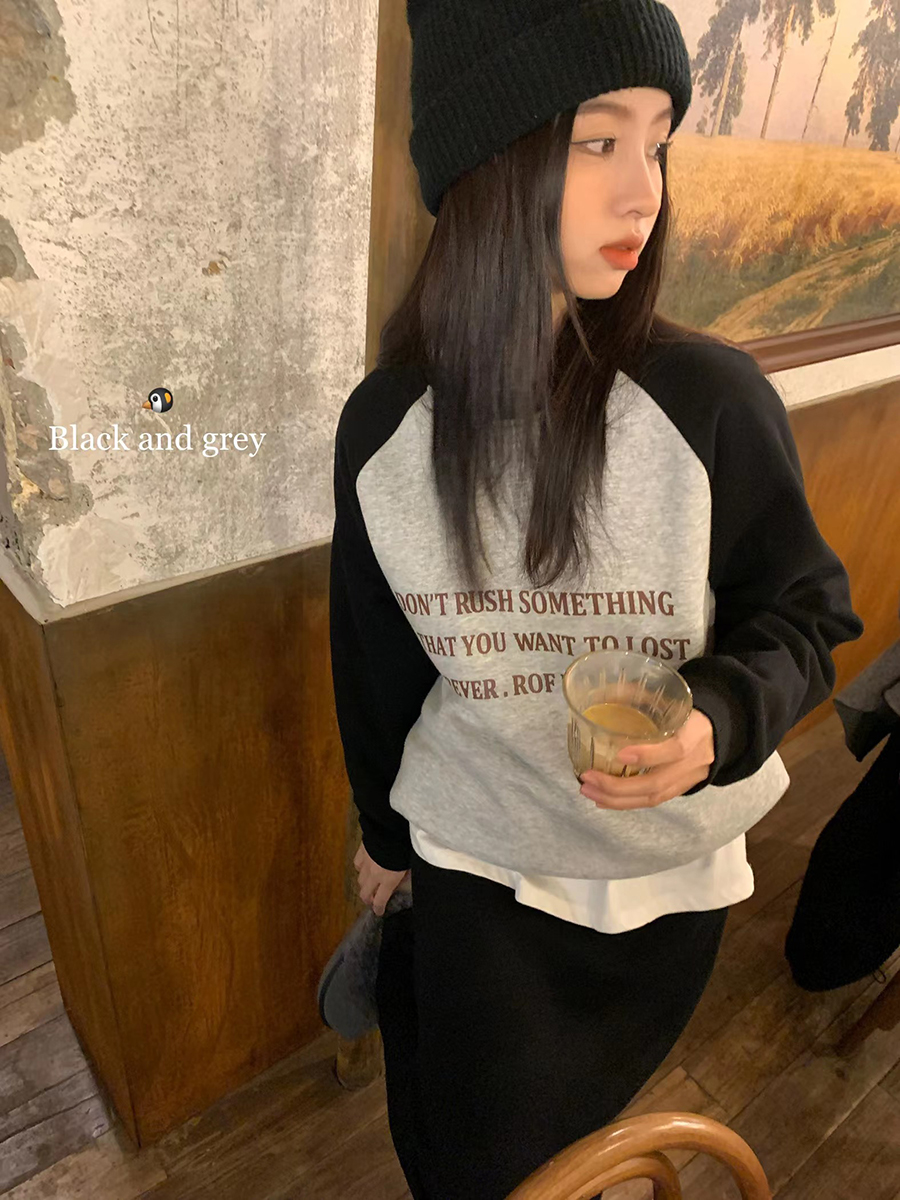馨幫幫 自制韓版撞色字母印花插肩袖衛衣女2023秋冬新款休閒顯瘦
