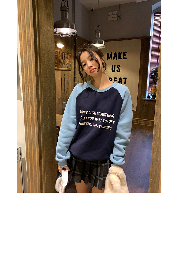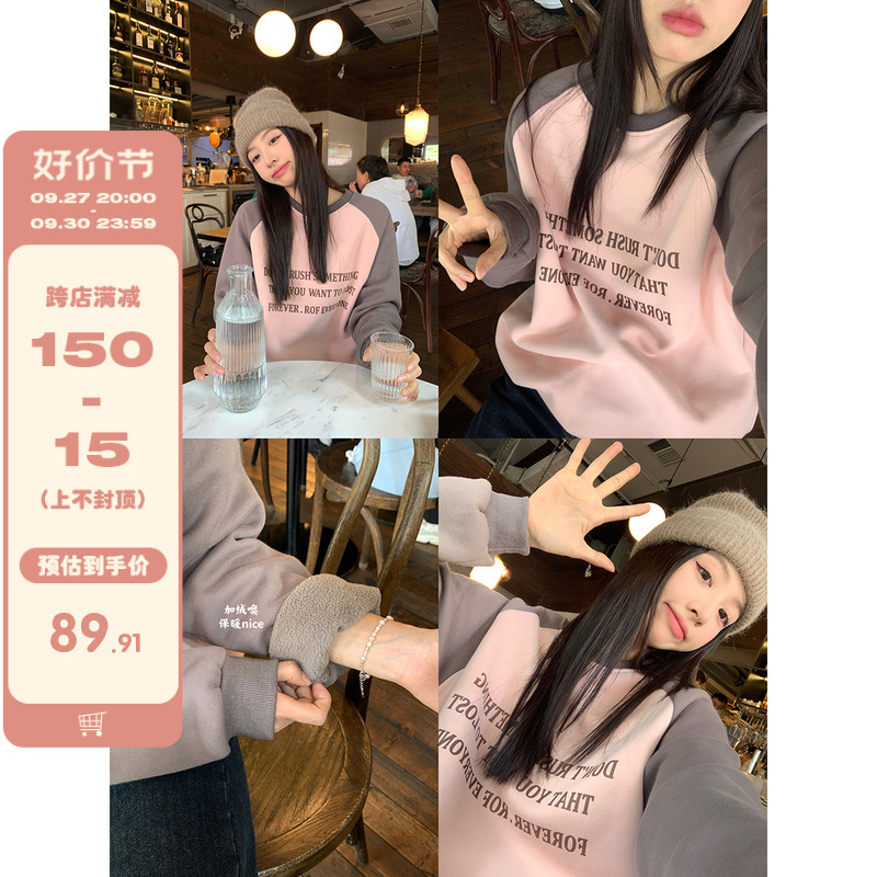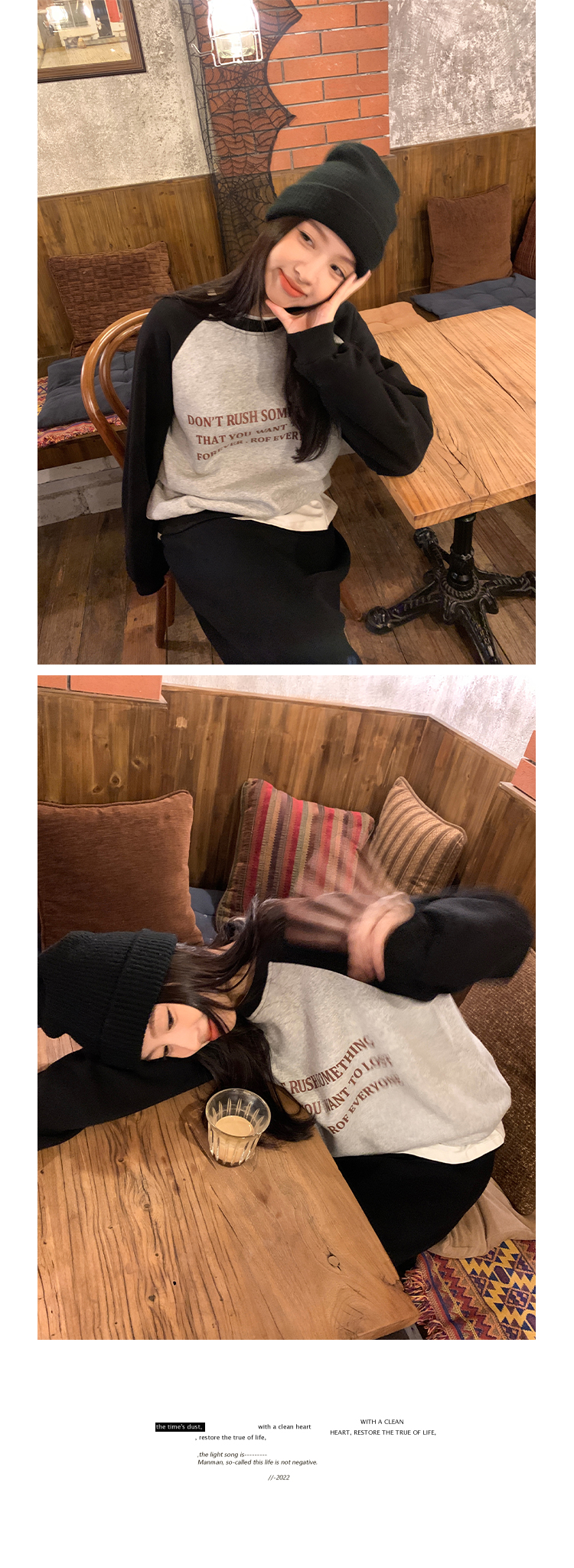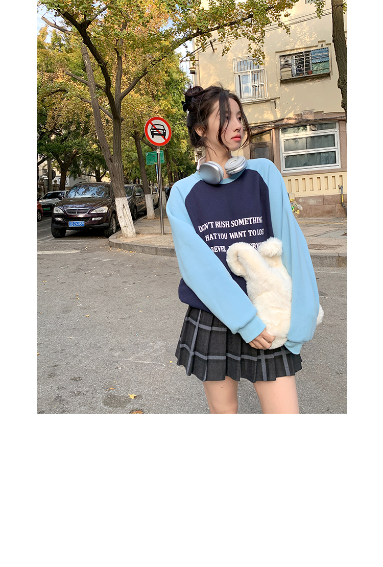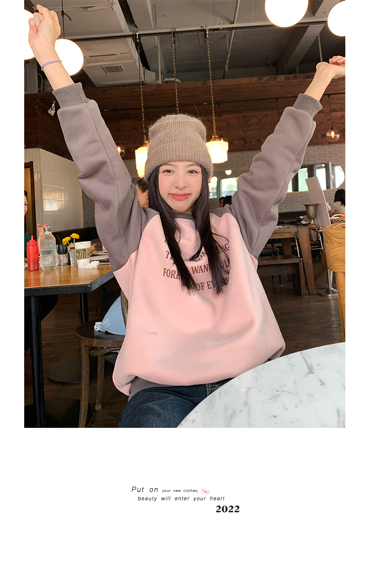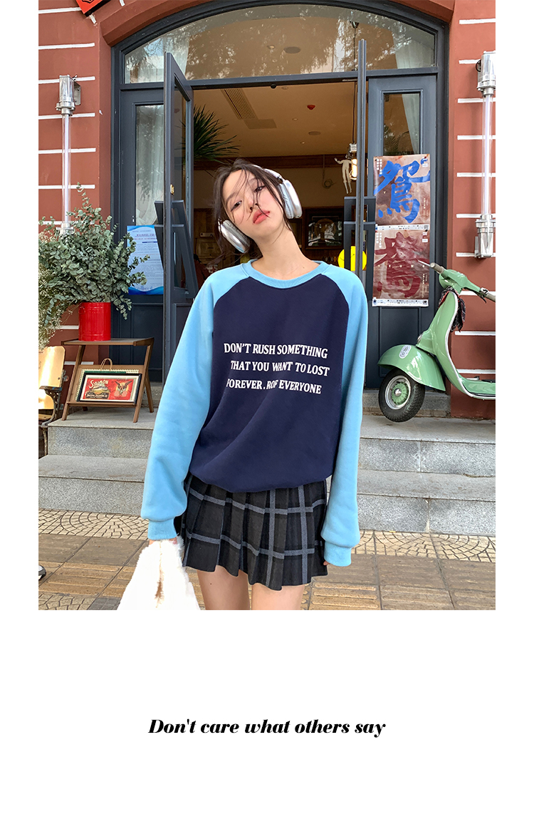 馨幫幫 自制韓版撞色字母印花插肩袖衛衣女2023秋冬新款休閒顯瘦