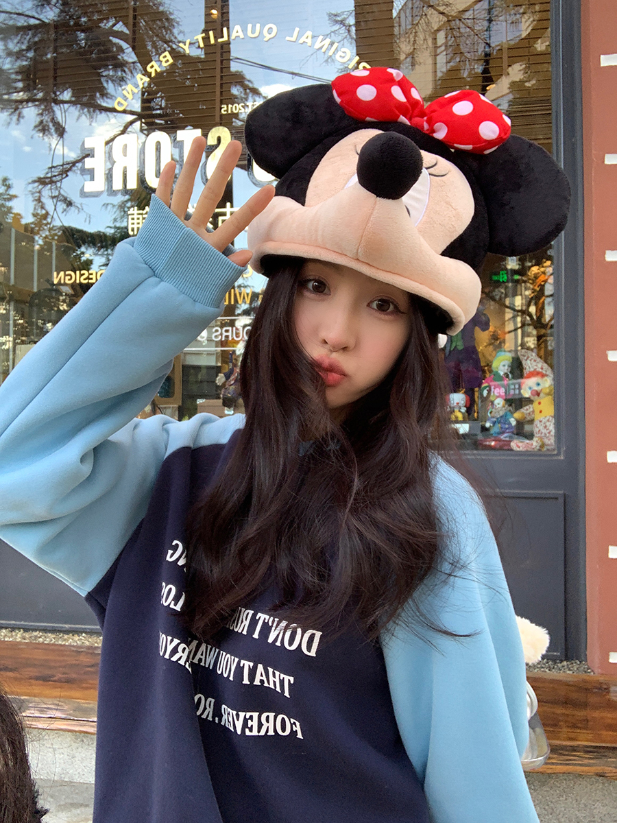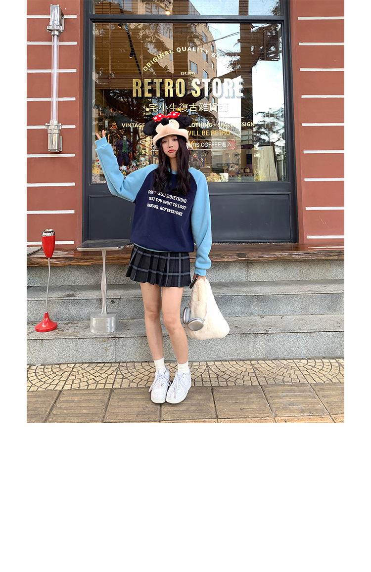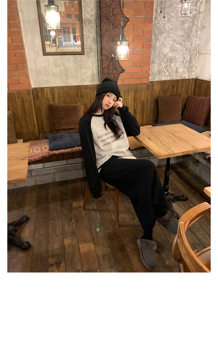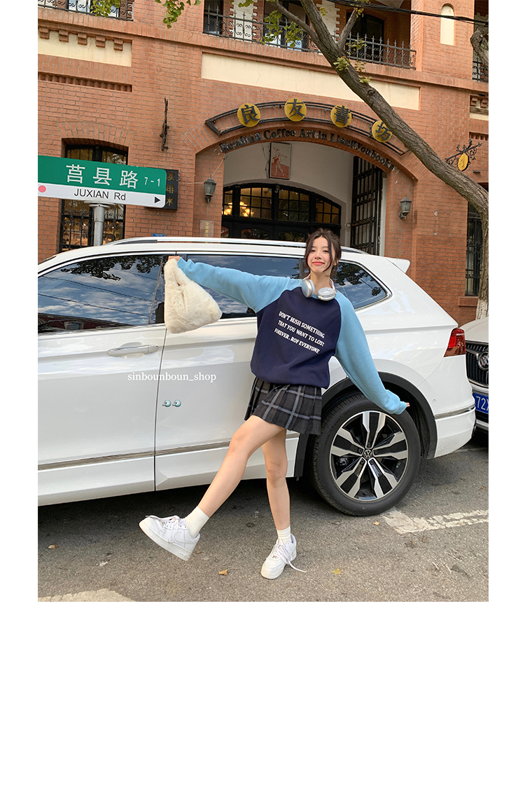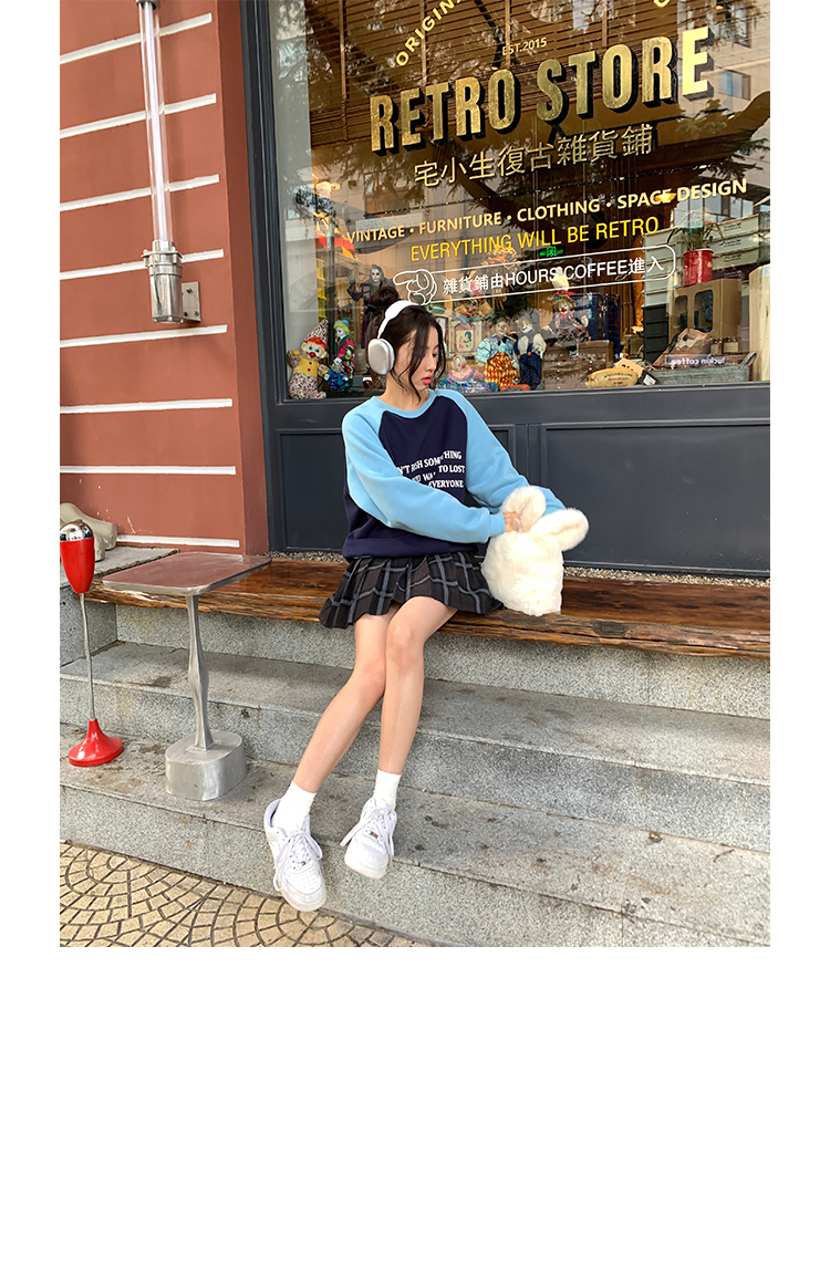 馨幫幫 自制韓版撞色字母印花插肩袖衛衣女2023秋冬新款休閒顯瘦