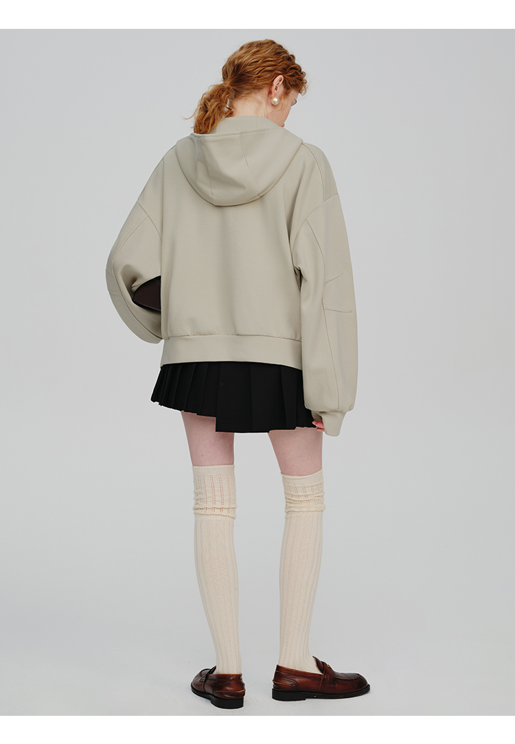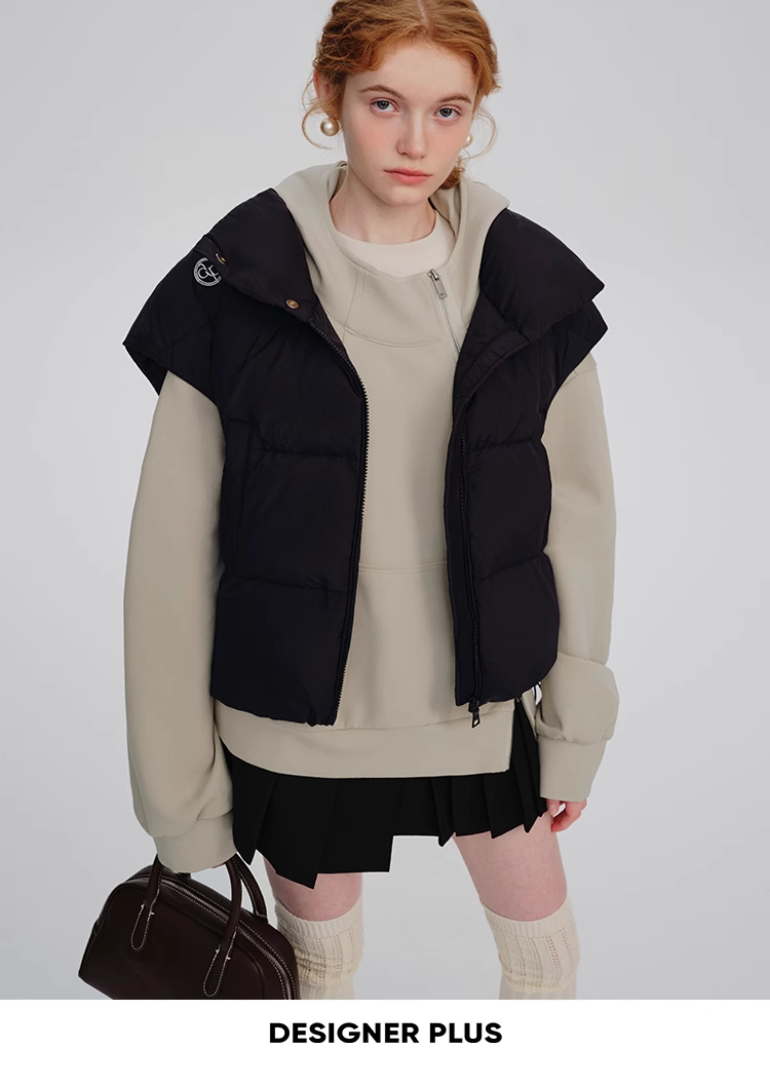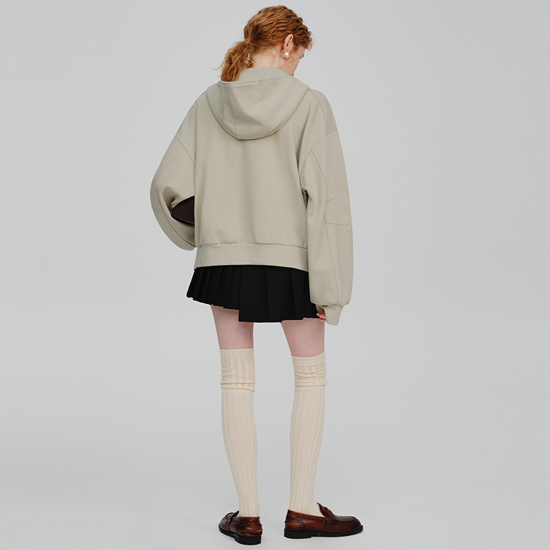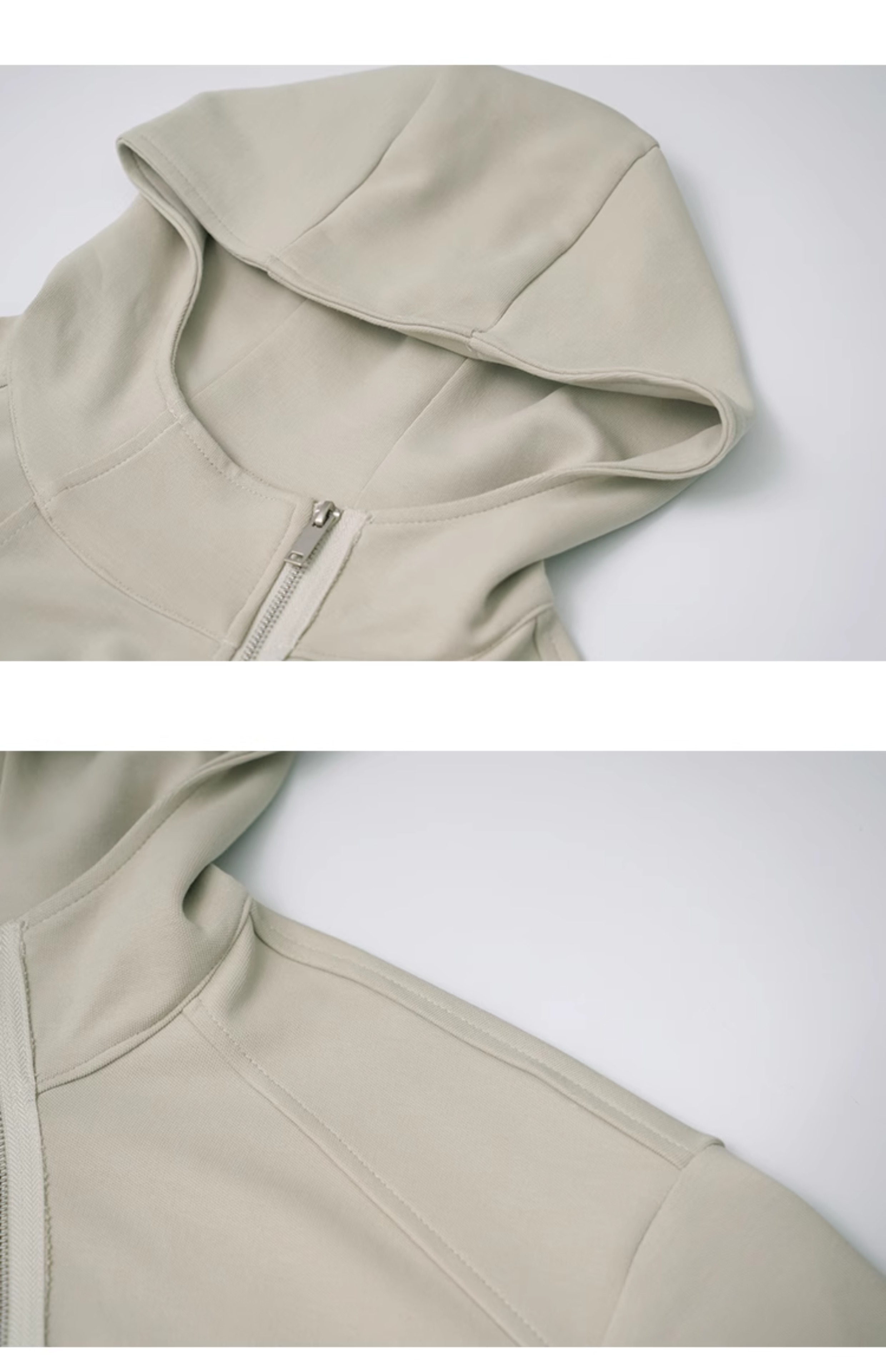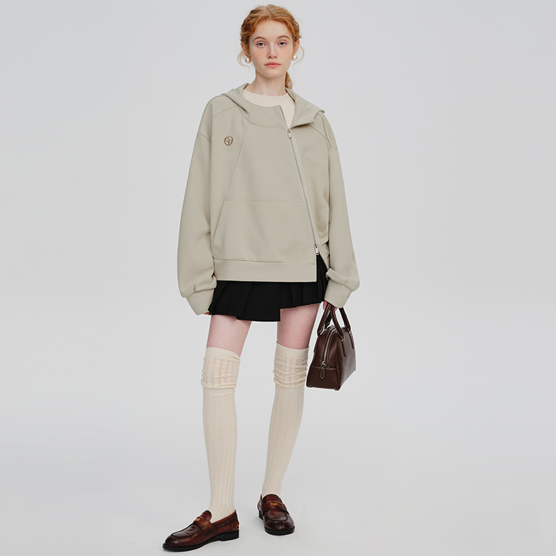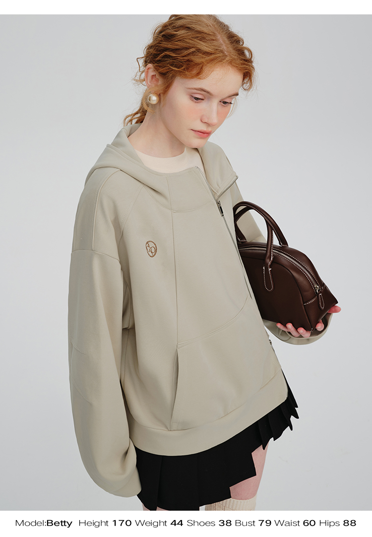 DESIGNER PLUS連帽加絨衛衣女設計感寬鬆斜拉鍊短開衫小個子外套