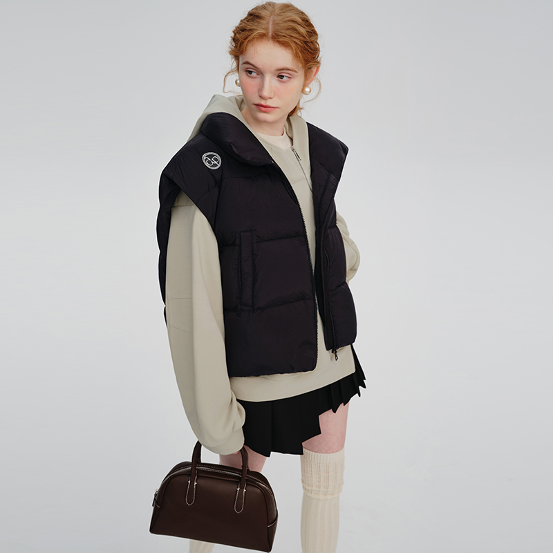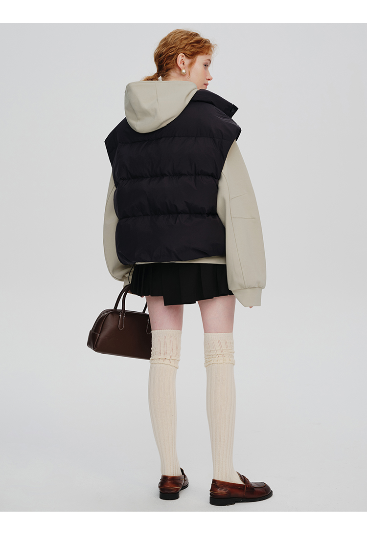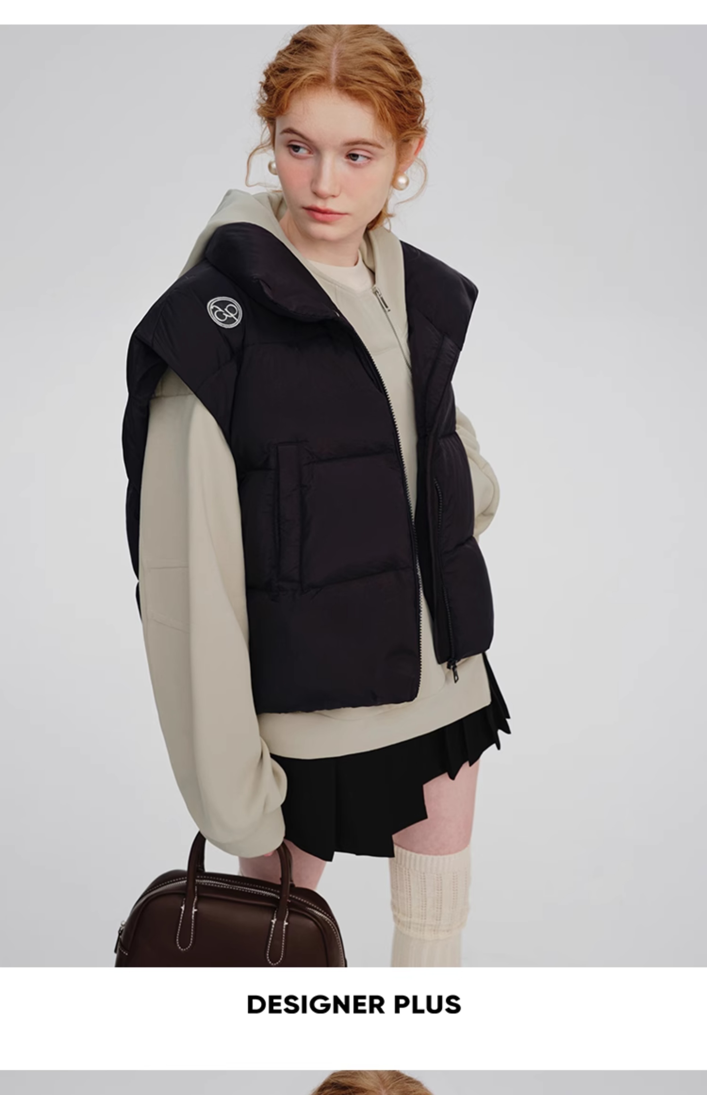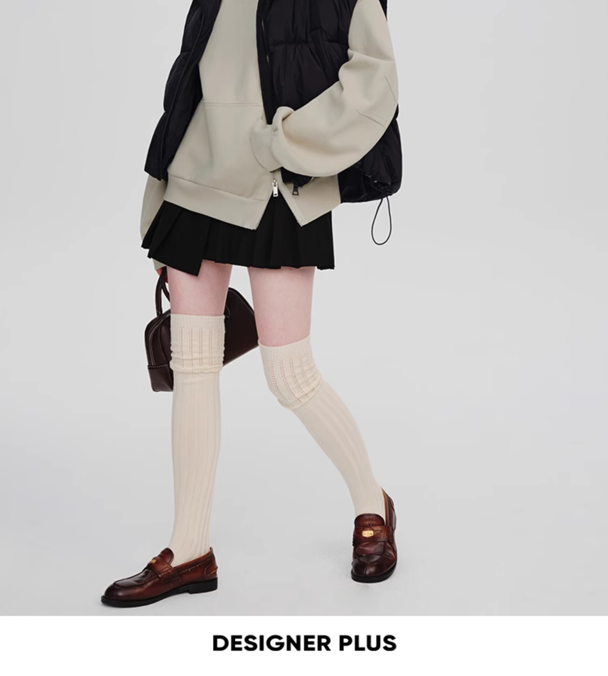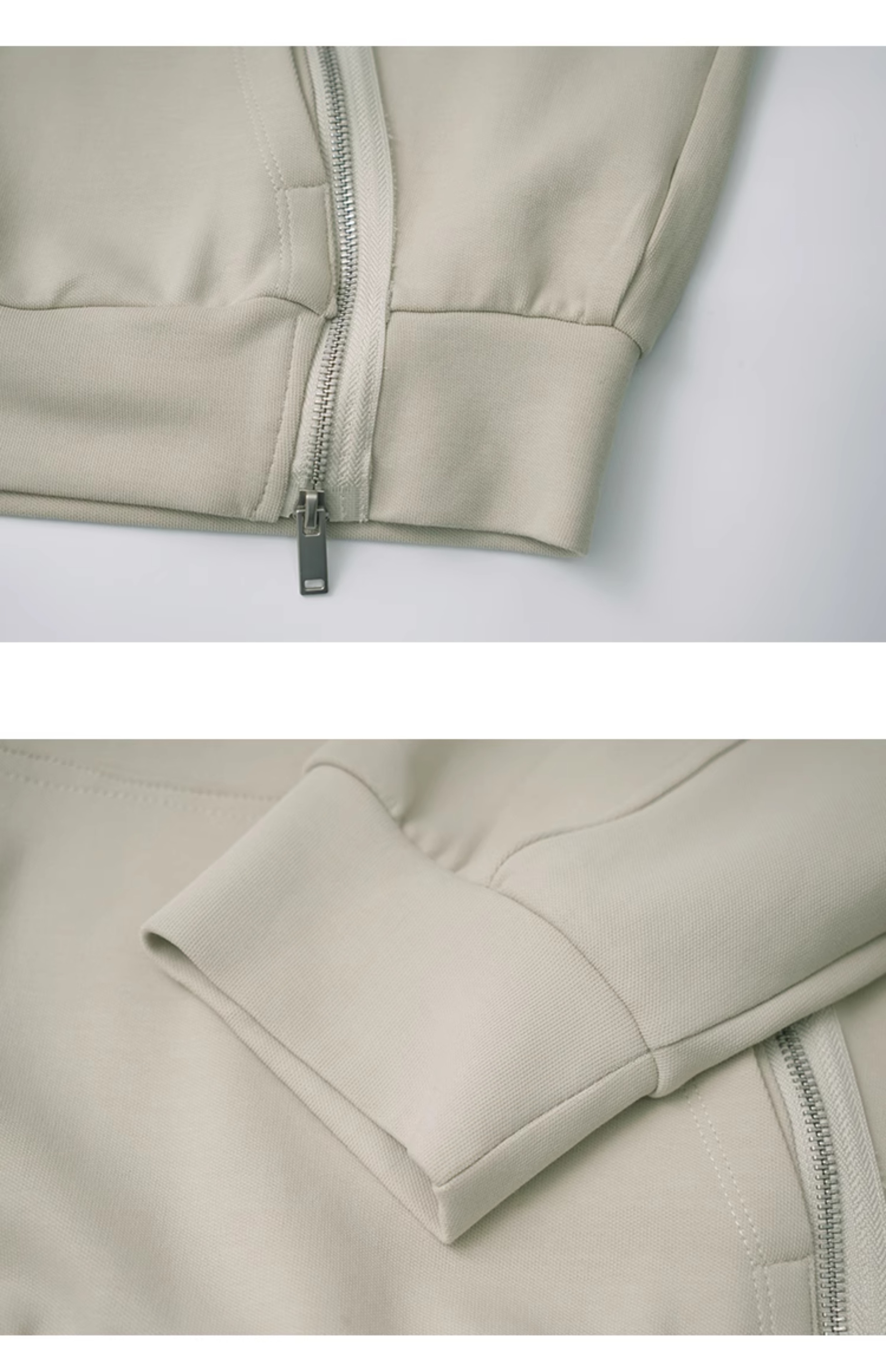 DESIGNER PLUS連帽加絨衛衣女設計感寬鬆斜拉鍊短開衫小個子外套