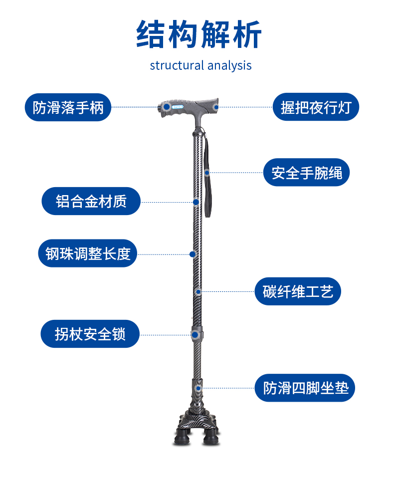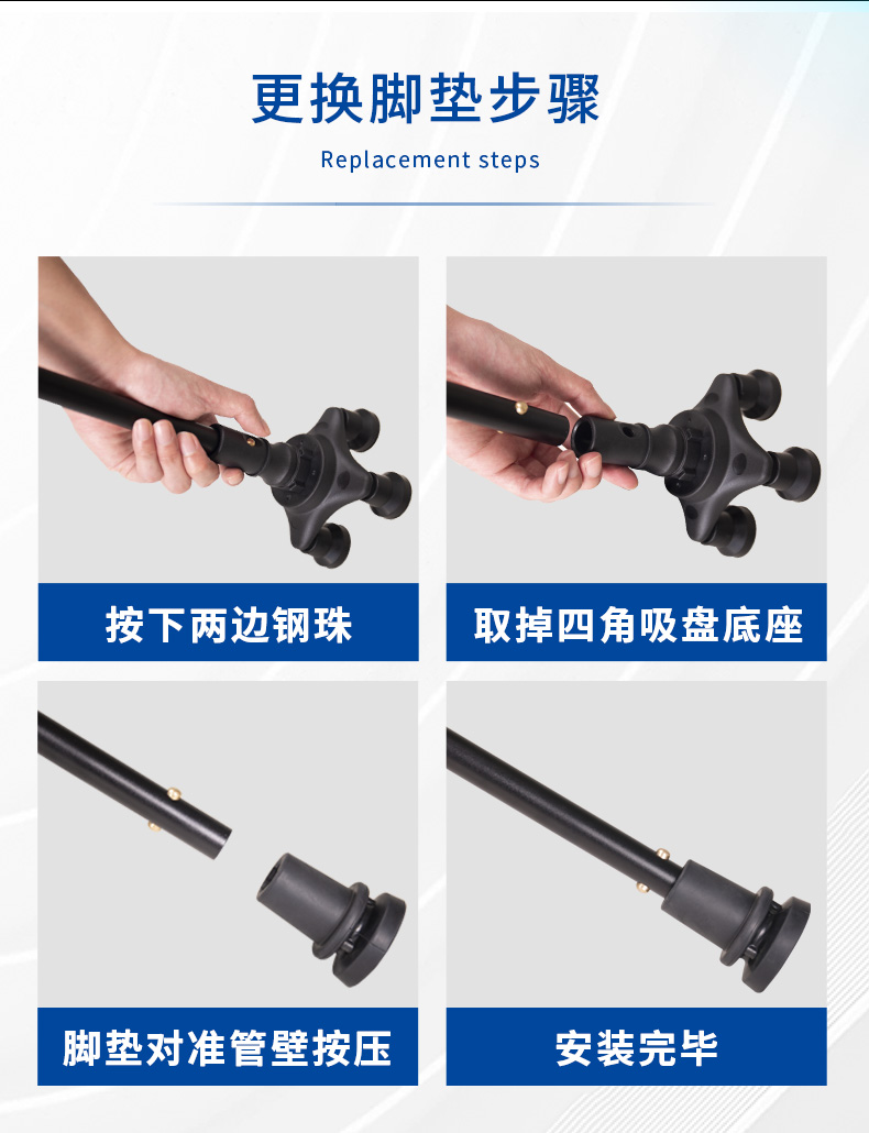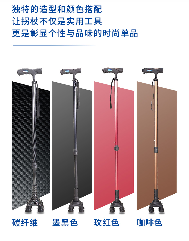 柺杖老人防滑輕便伸縮四腳萬向底部橡膠頭手杖助步器四角柺棍拐扙