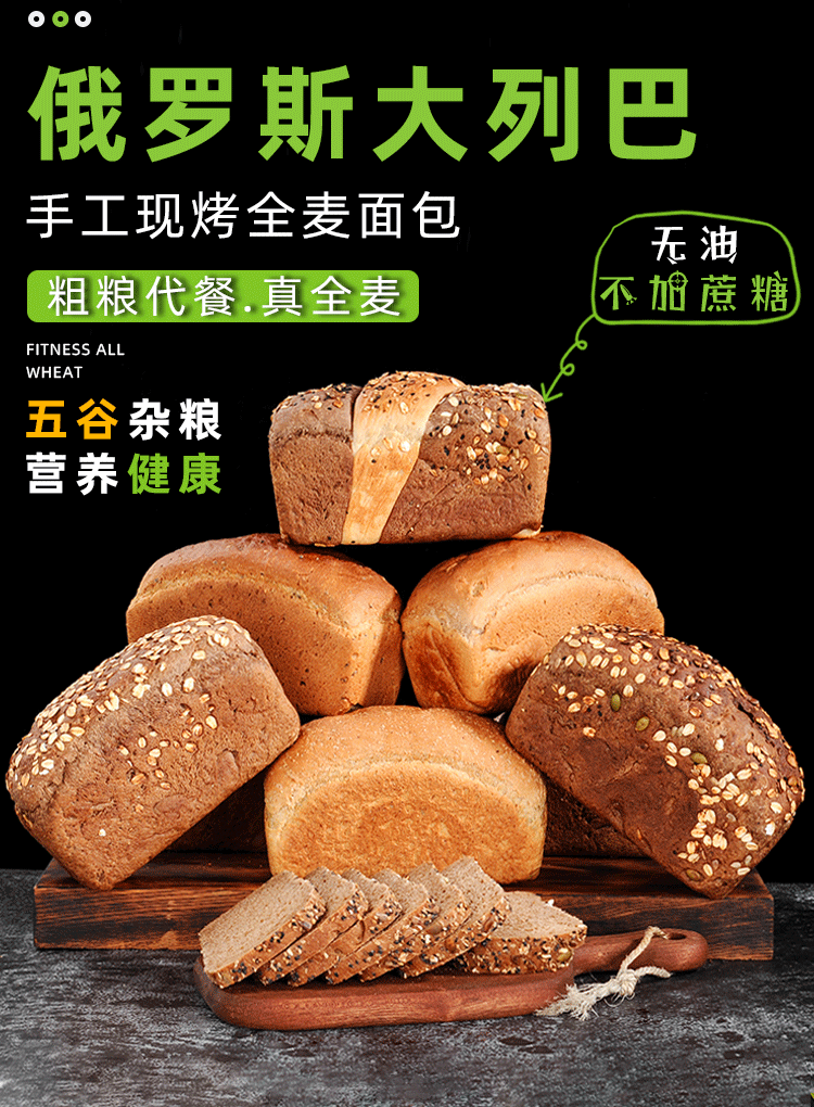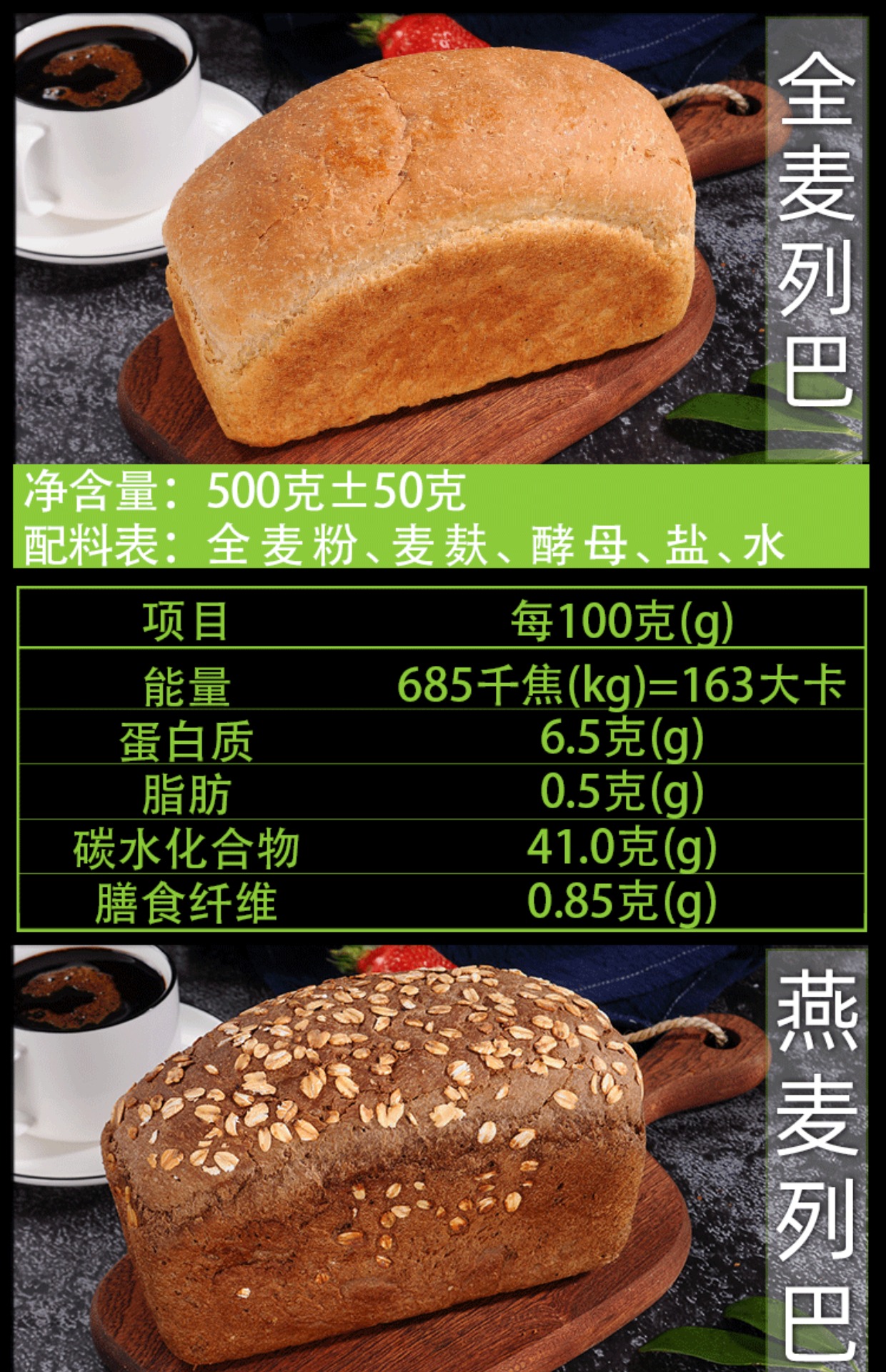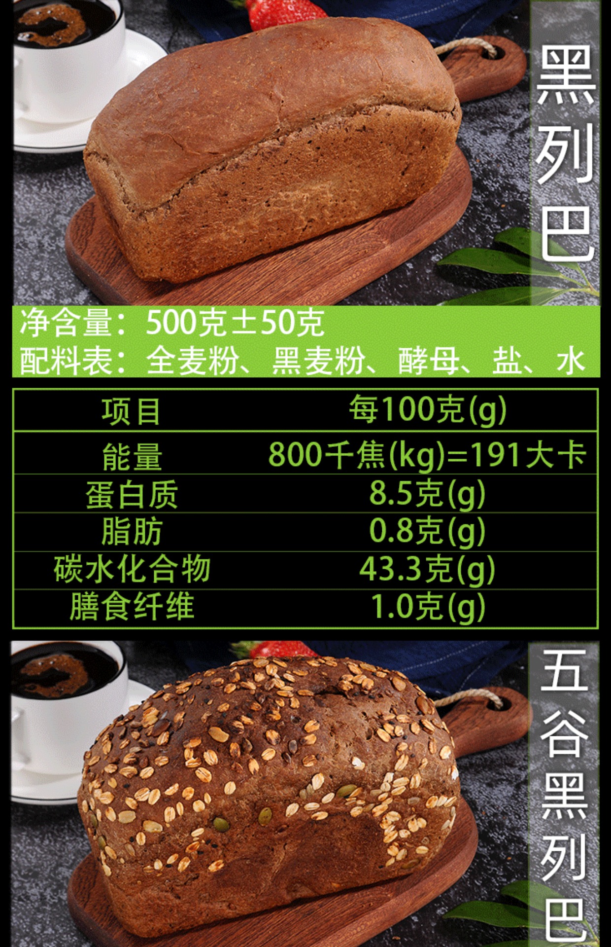 俄羅斯大列巴全麥麵包正宗低脂無蔗糖無油式黑麥代餐早餐營養食品