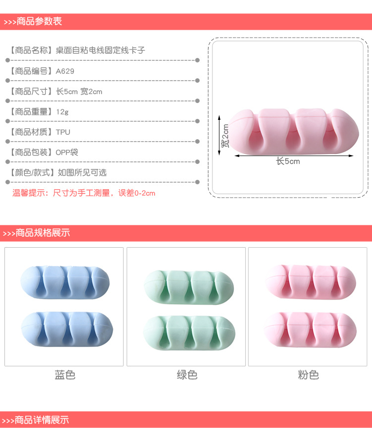 产品名称:A629桌面自粘电线固定线