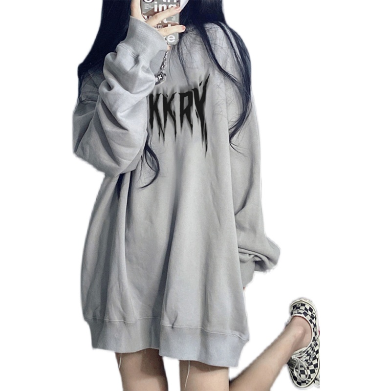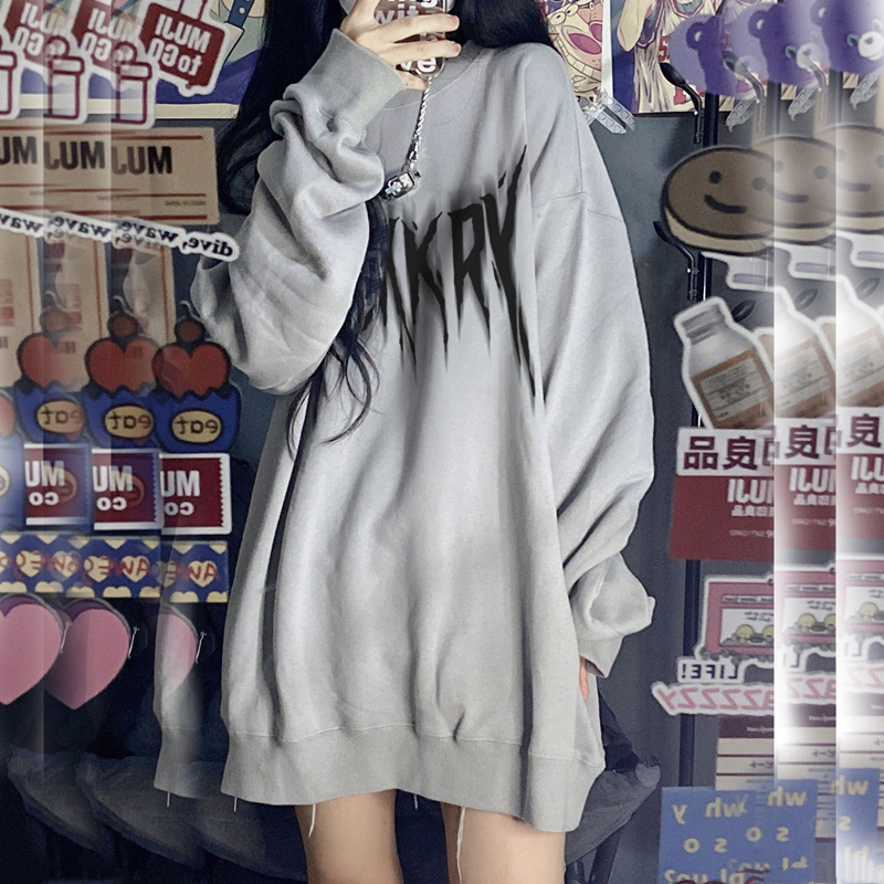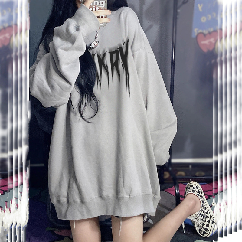 春秋冬2023新款中長版圓領厚棉T女寬鬆慵懶風美式加絨加厚無帽上衣