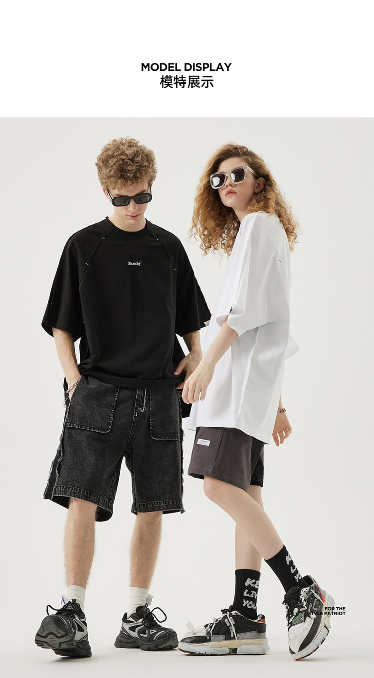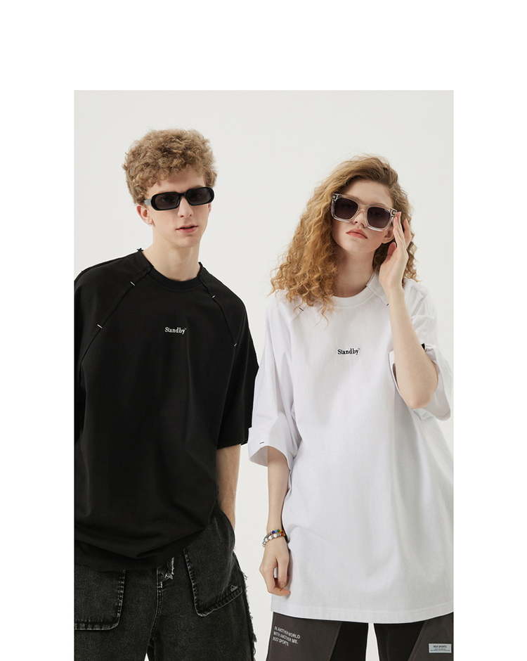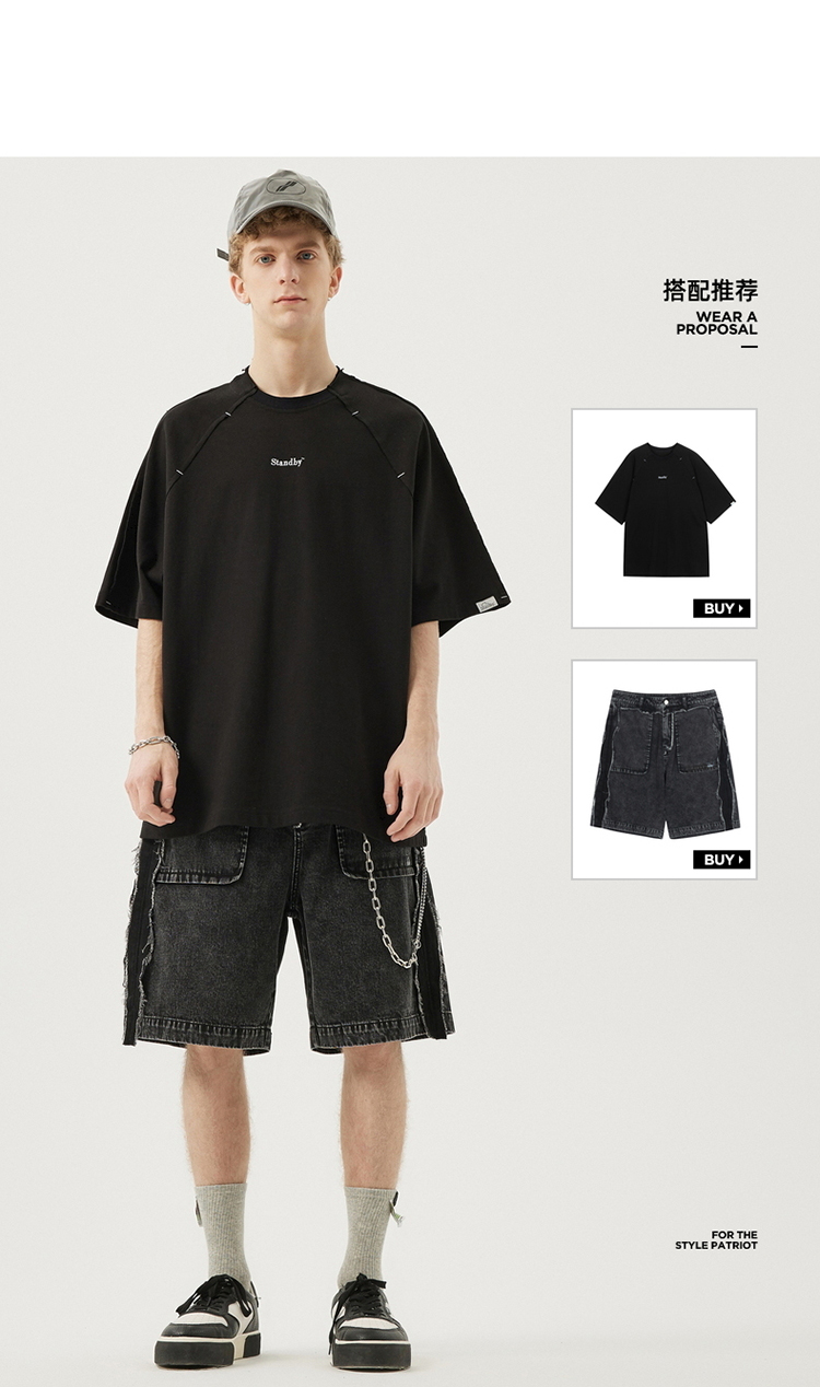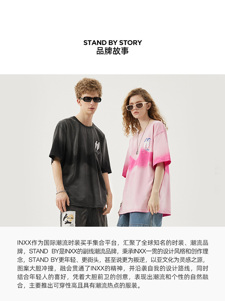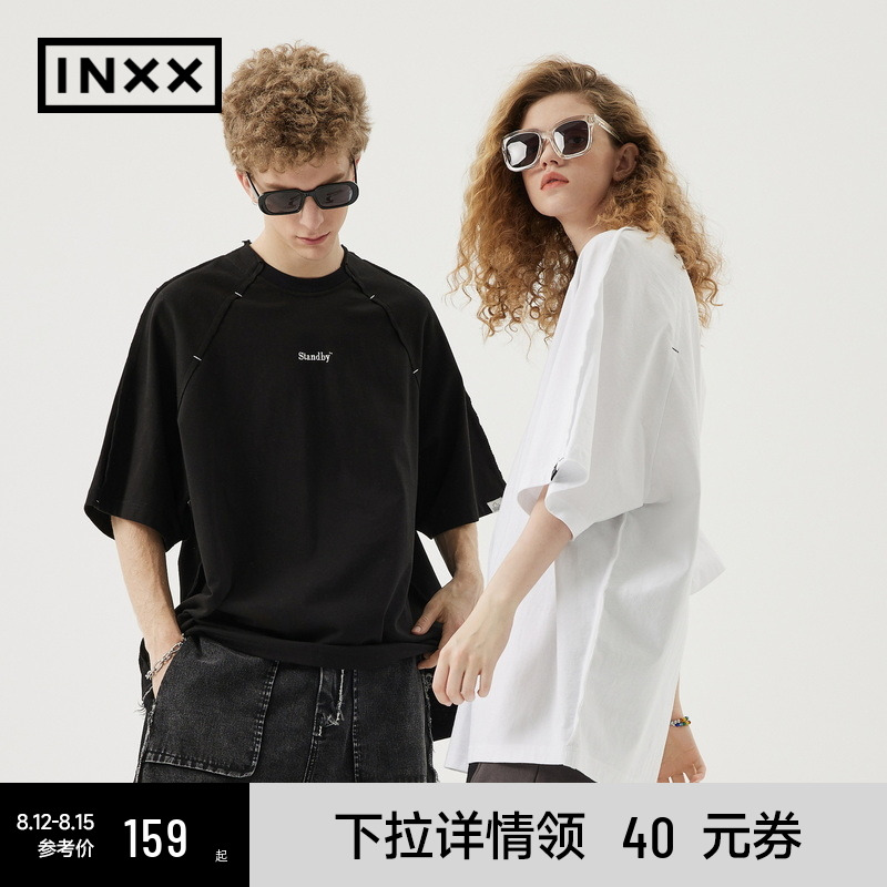 【INXX】Standby明星同款黑白基礎LOGO簡約情侶插肩五分短袖T恤男