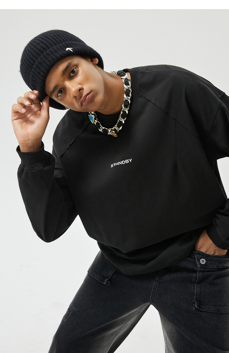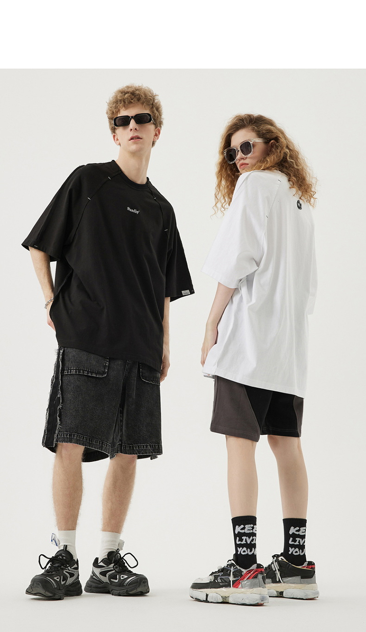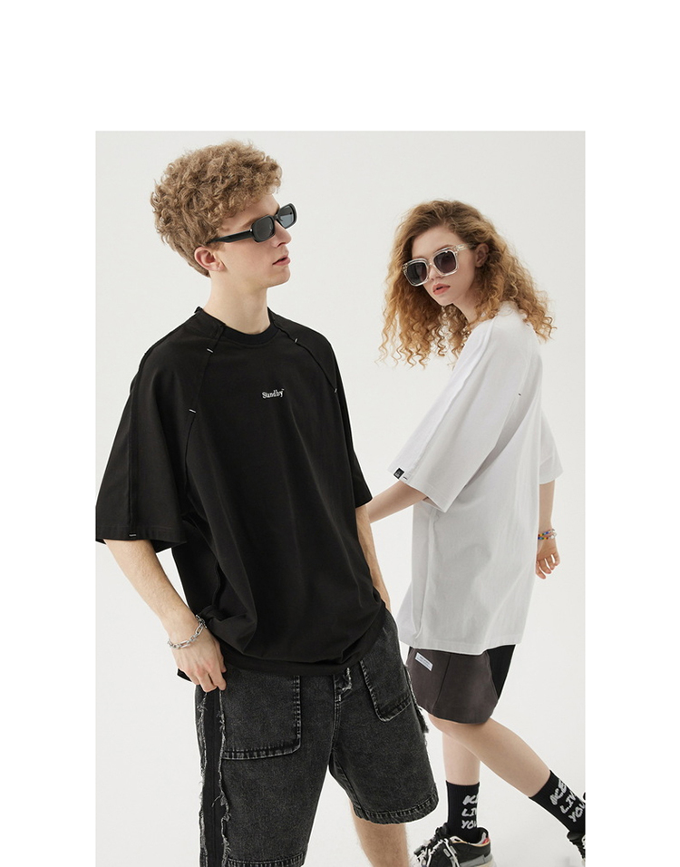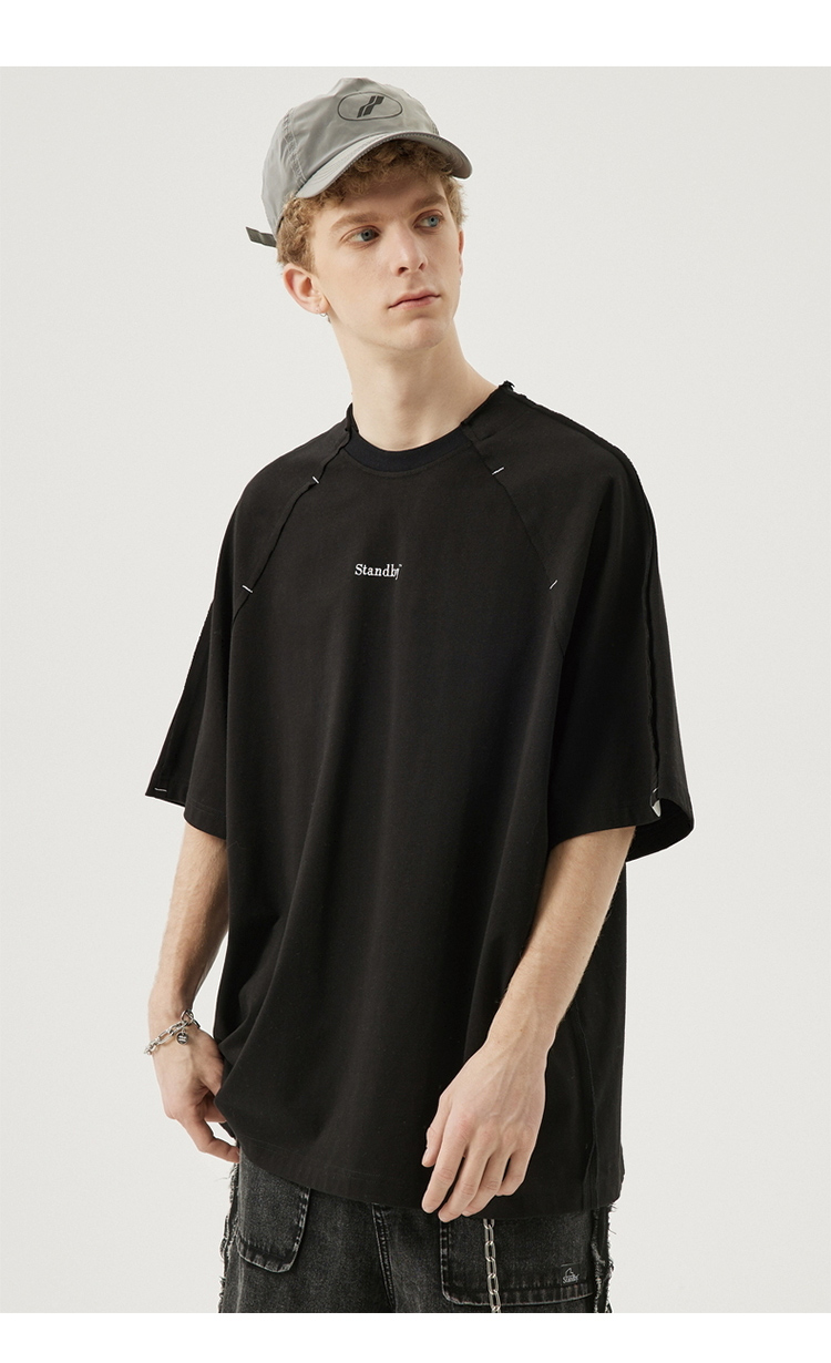 【INXX】Standby明星同款黑白基礎LOGO簡約情侶插肩五分短袖T恤男