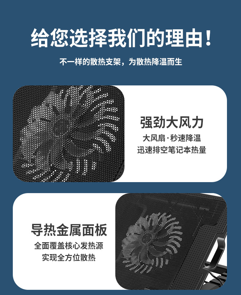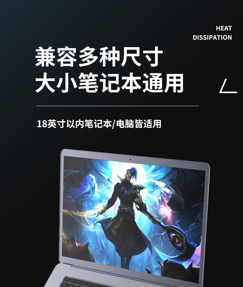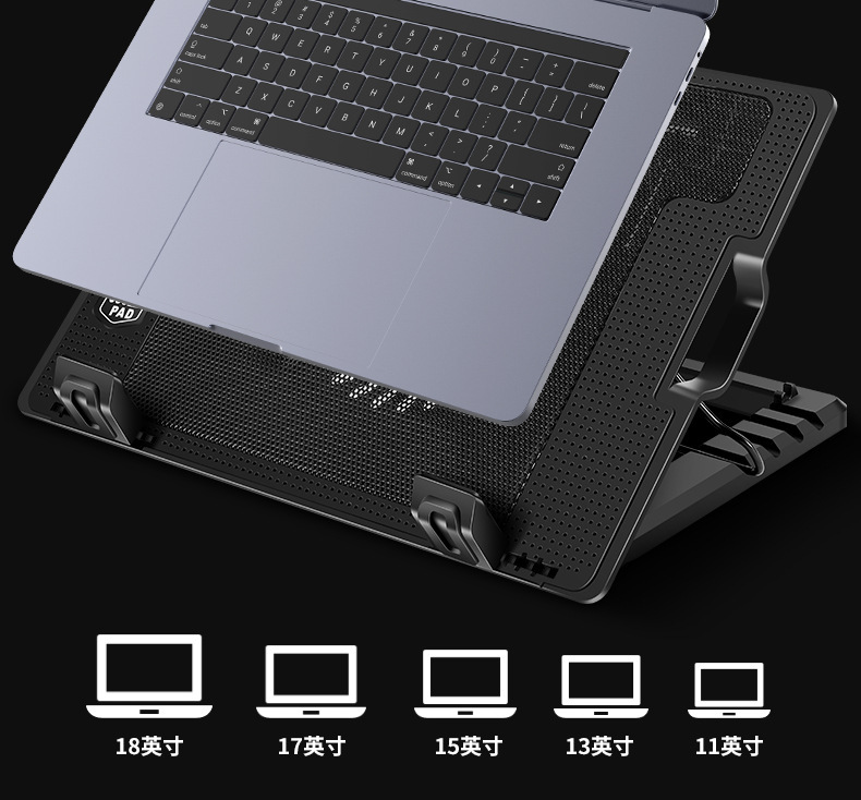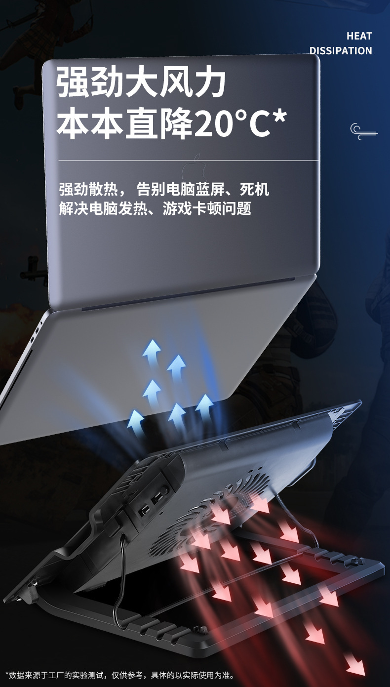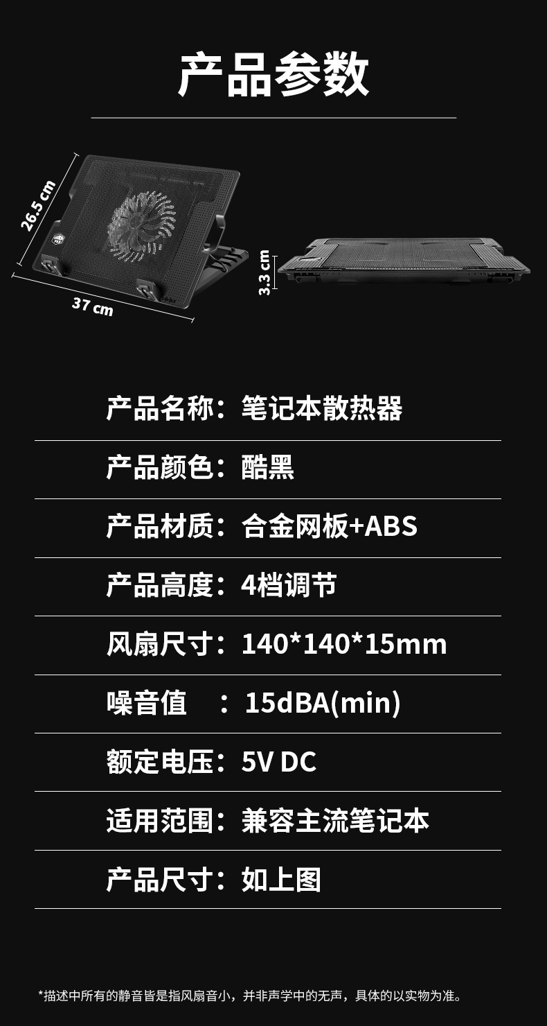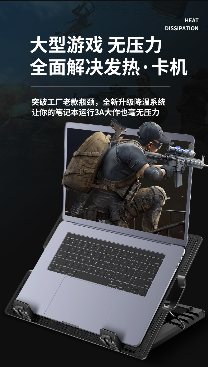 笔记本电脑散热底座旋翼档风扇14-17寸可调节高度散热垫散热支架