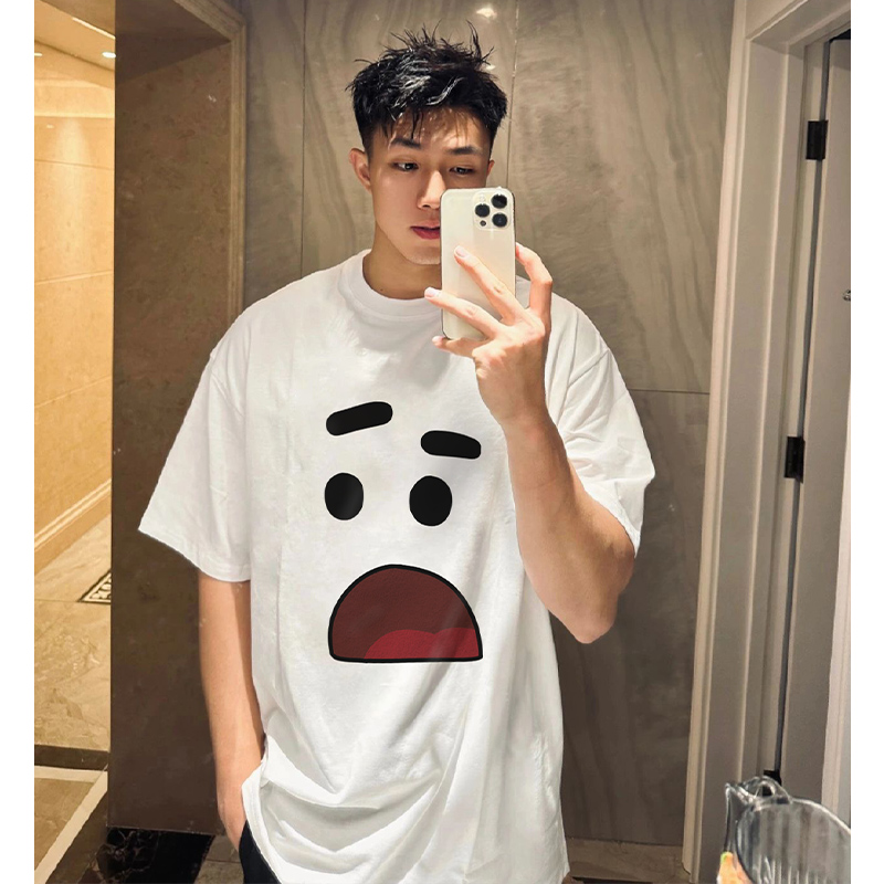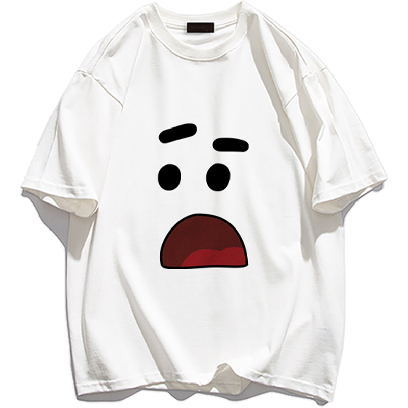 趣味塗鴉印花純棉短袖T恤男潮牌夏季ins街頭日系復古寬鬆圓領上衣