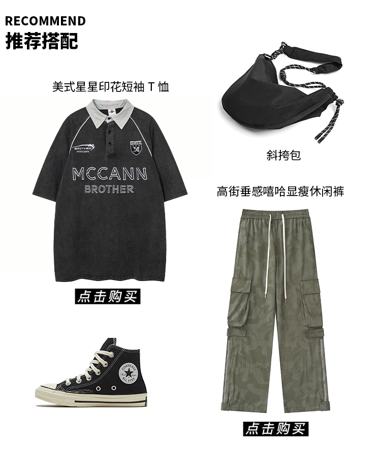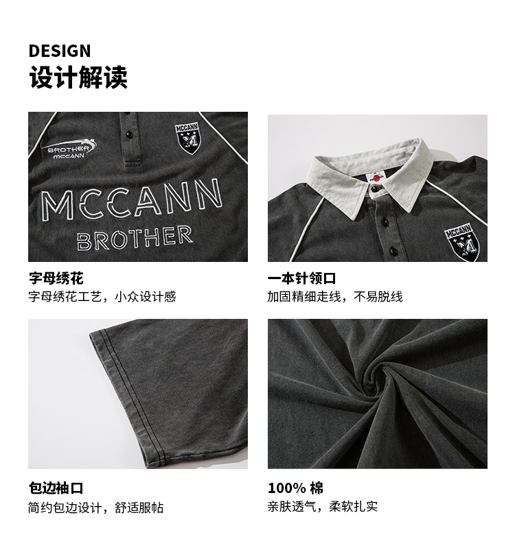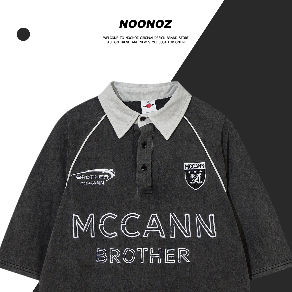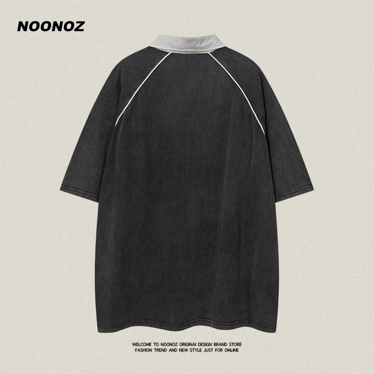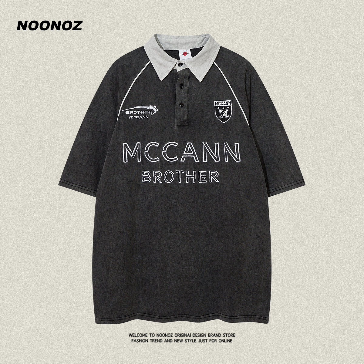 NOONOZ美式復古刺繡短袖Polo衫男寬鬆夏季潮牌港風重磅百搭T恤