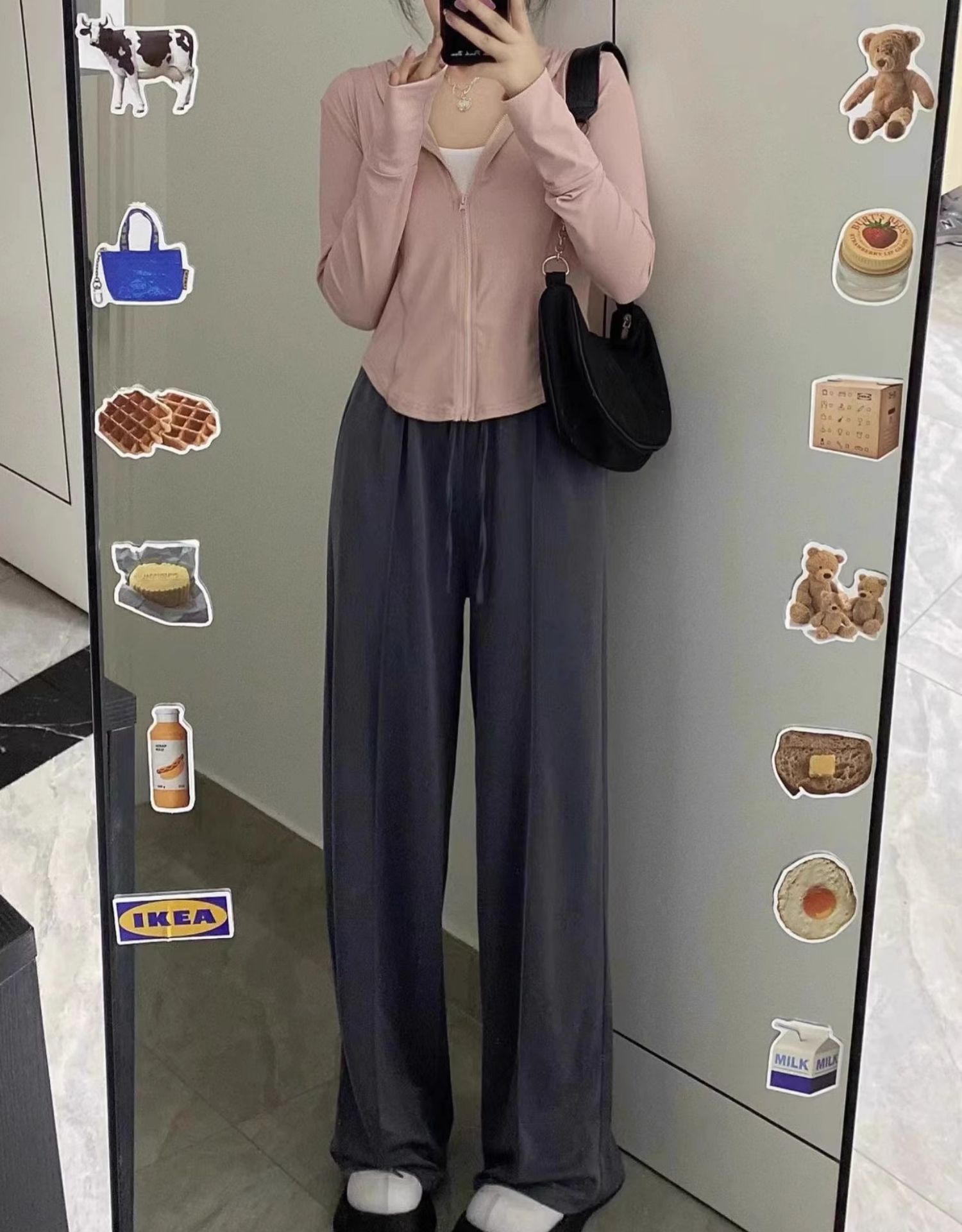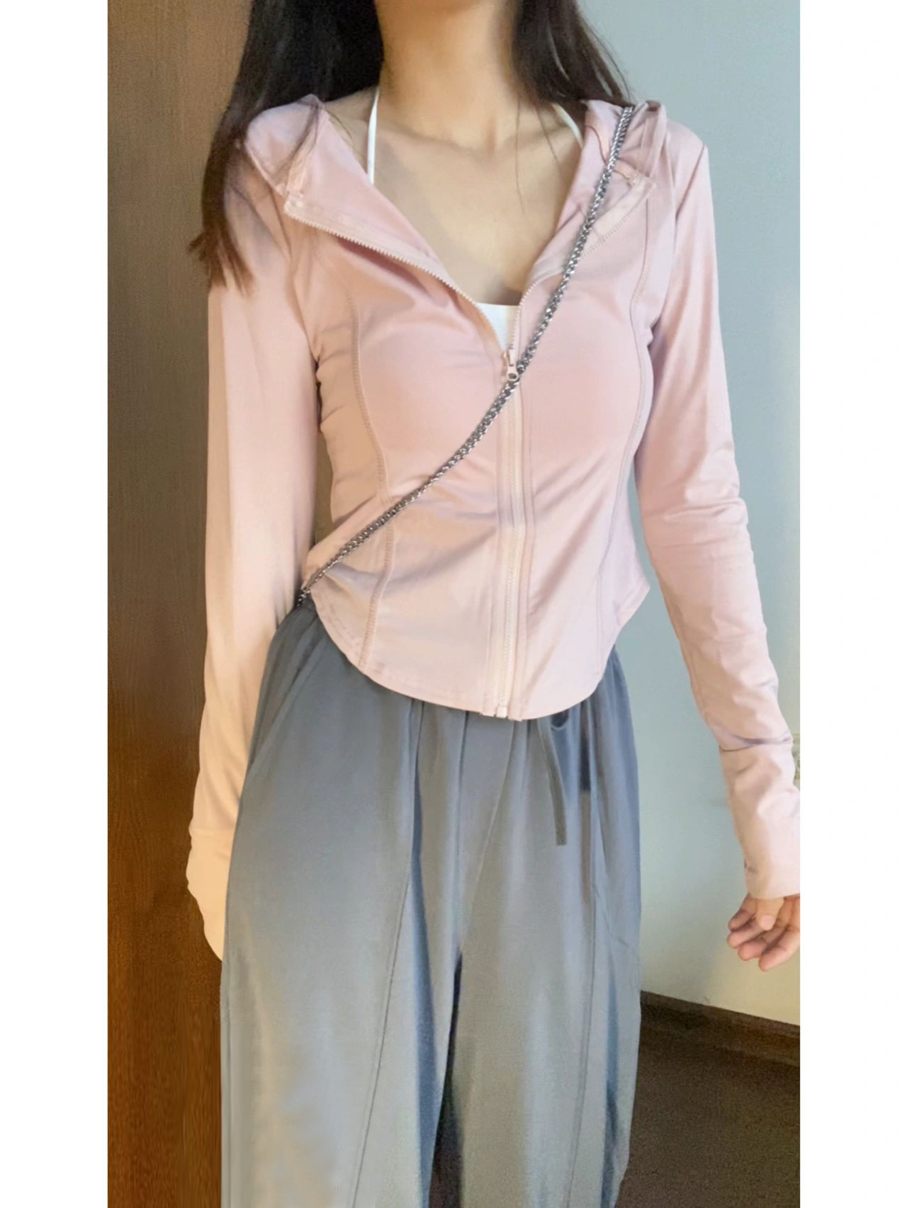 粉色冰絲防曬衣女款夏季修身運動瑜伽服外套緊身上衣女夏2023新款