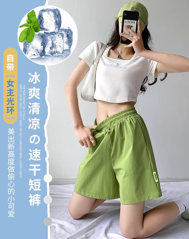 森馬集團棉致冰絲速乾運動短褲女夏薄款健身外穿跑步寬鬆闊腿五分