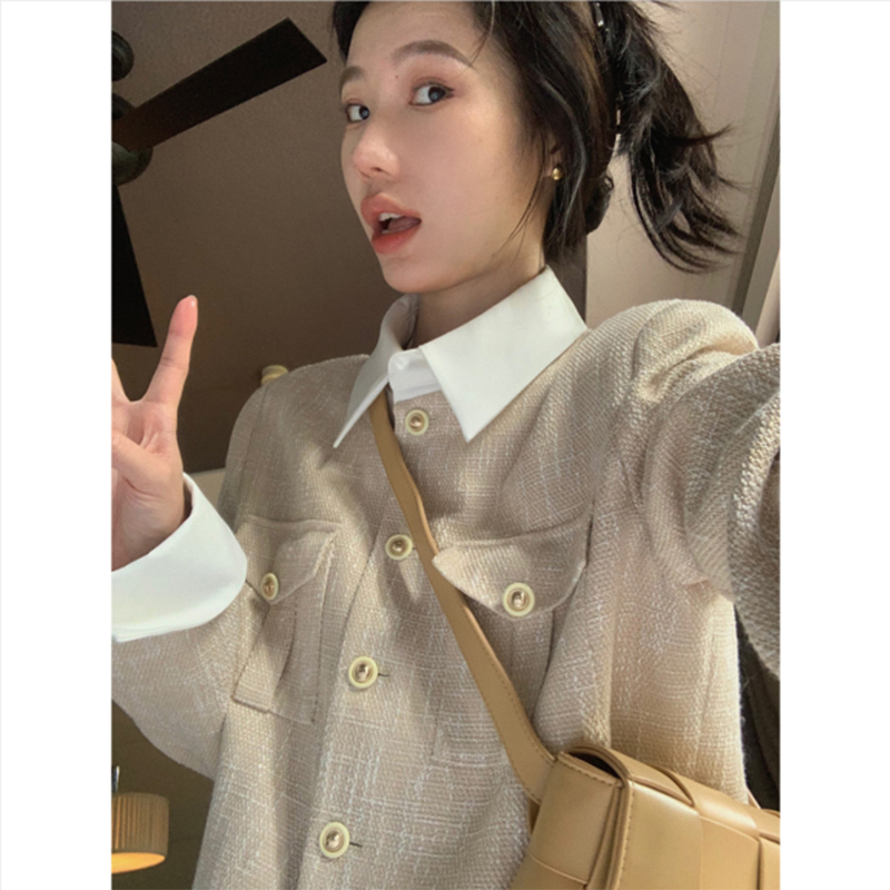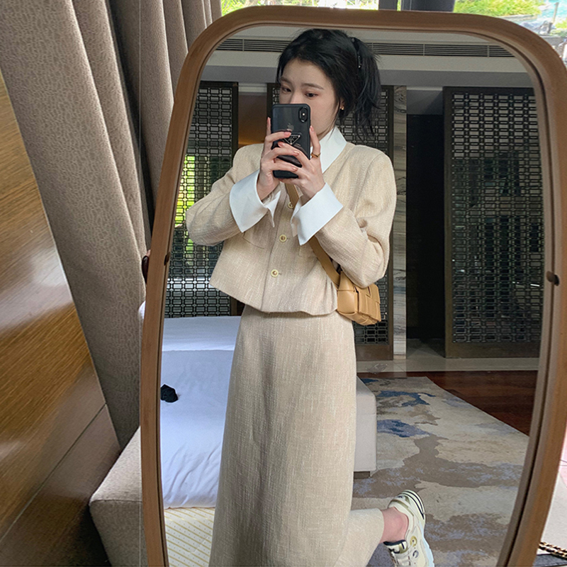 高級感法式襯衫式洋裝子春秋2023新款女裝長裙早秋季鹽系穿搭套裝