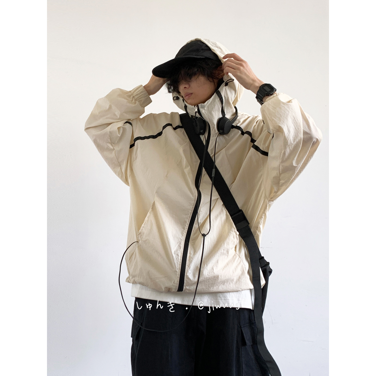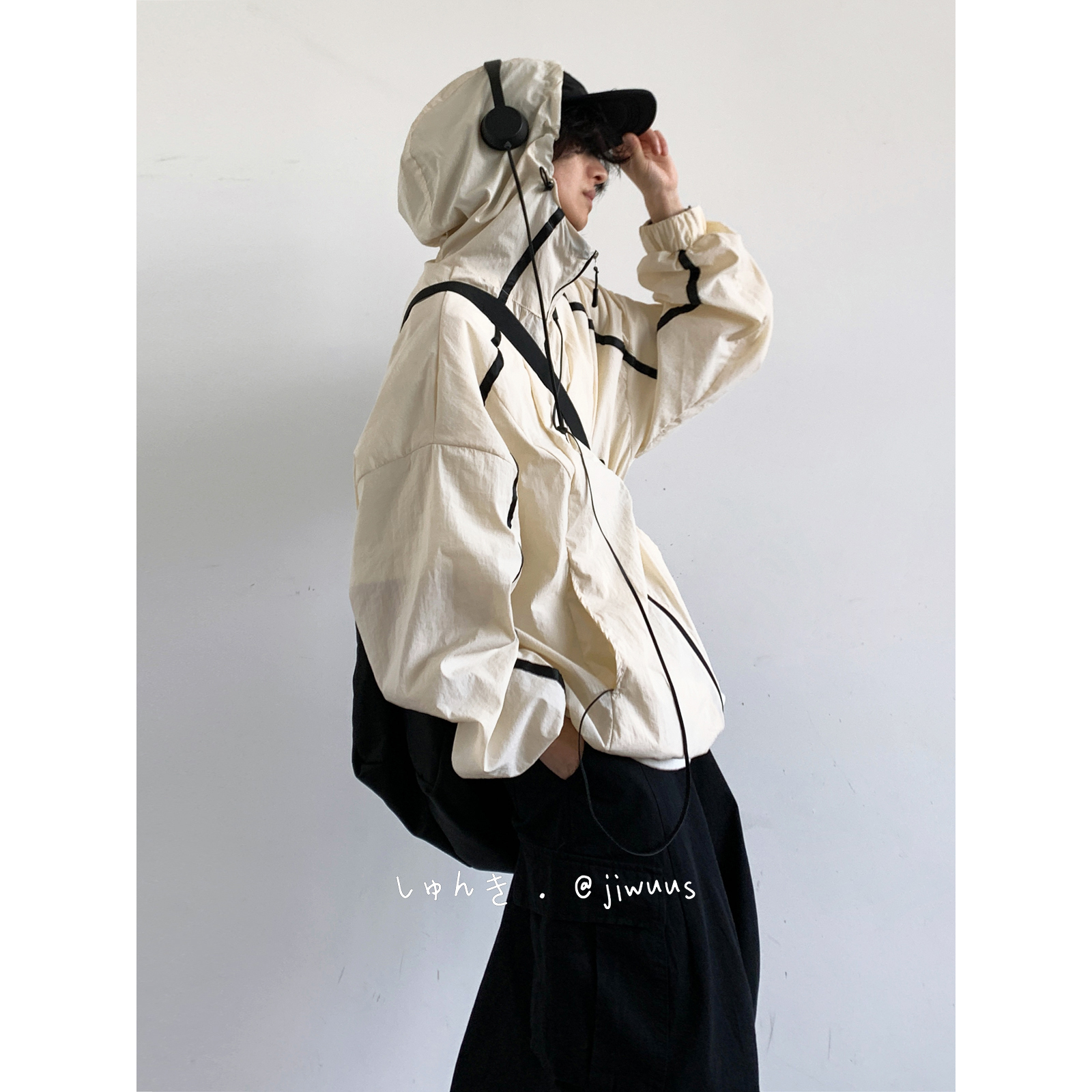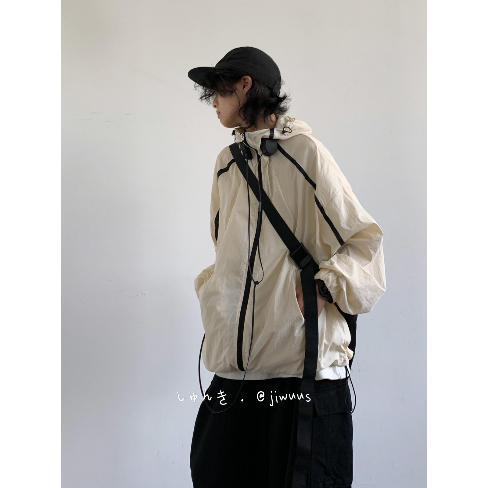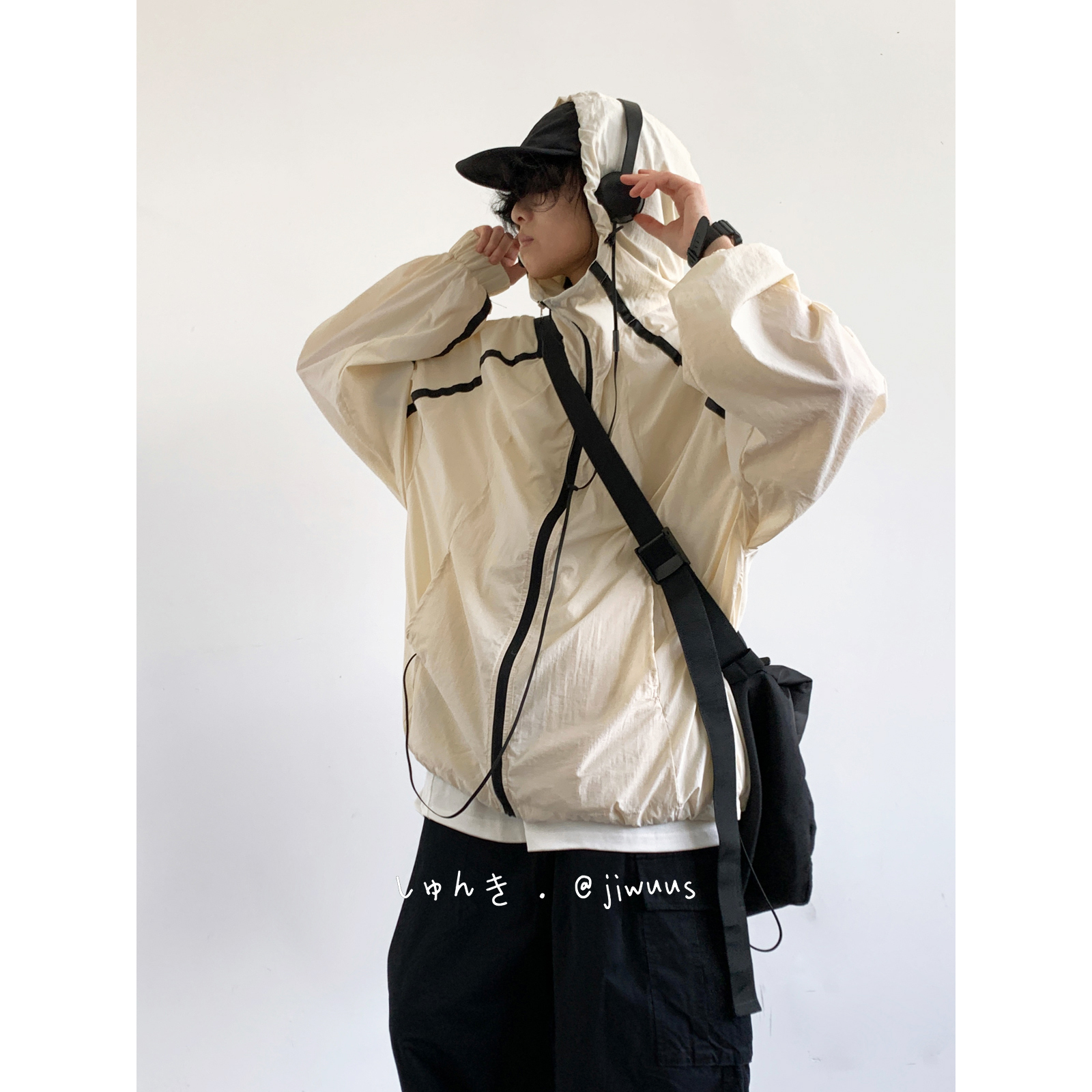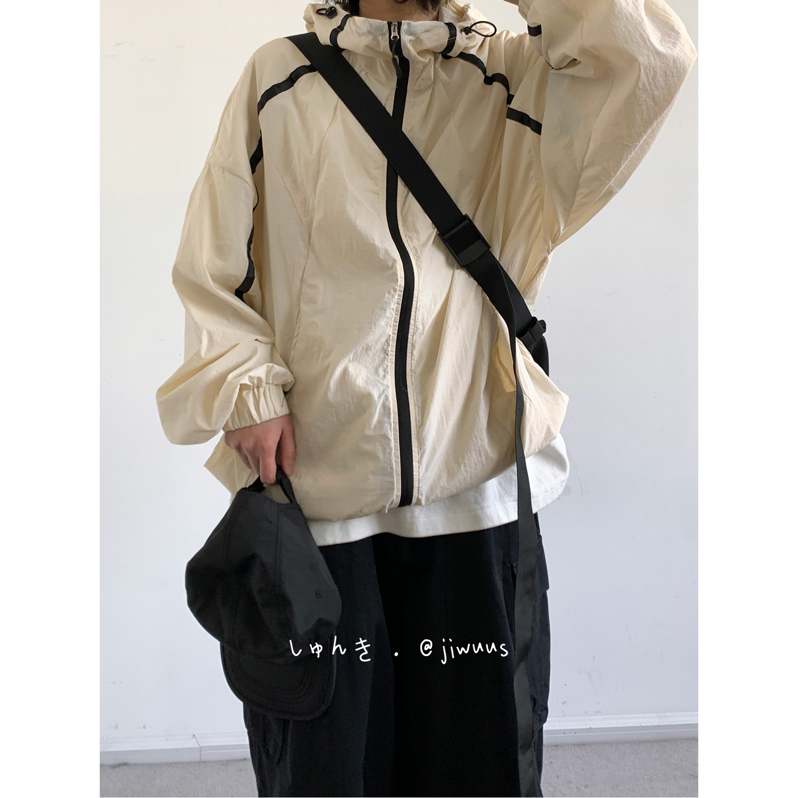 Jiwuuss 夏日系復古米白防曬服男女學生戶外登山輕薄涼感寬鬆外套