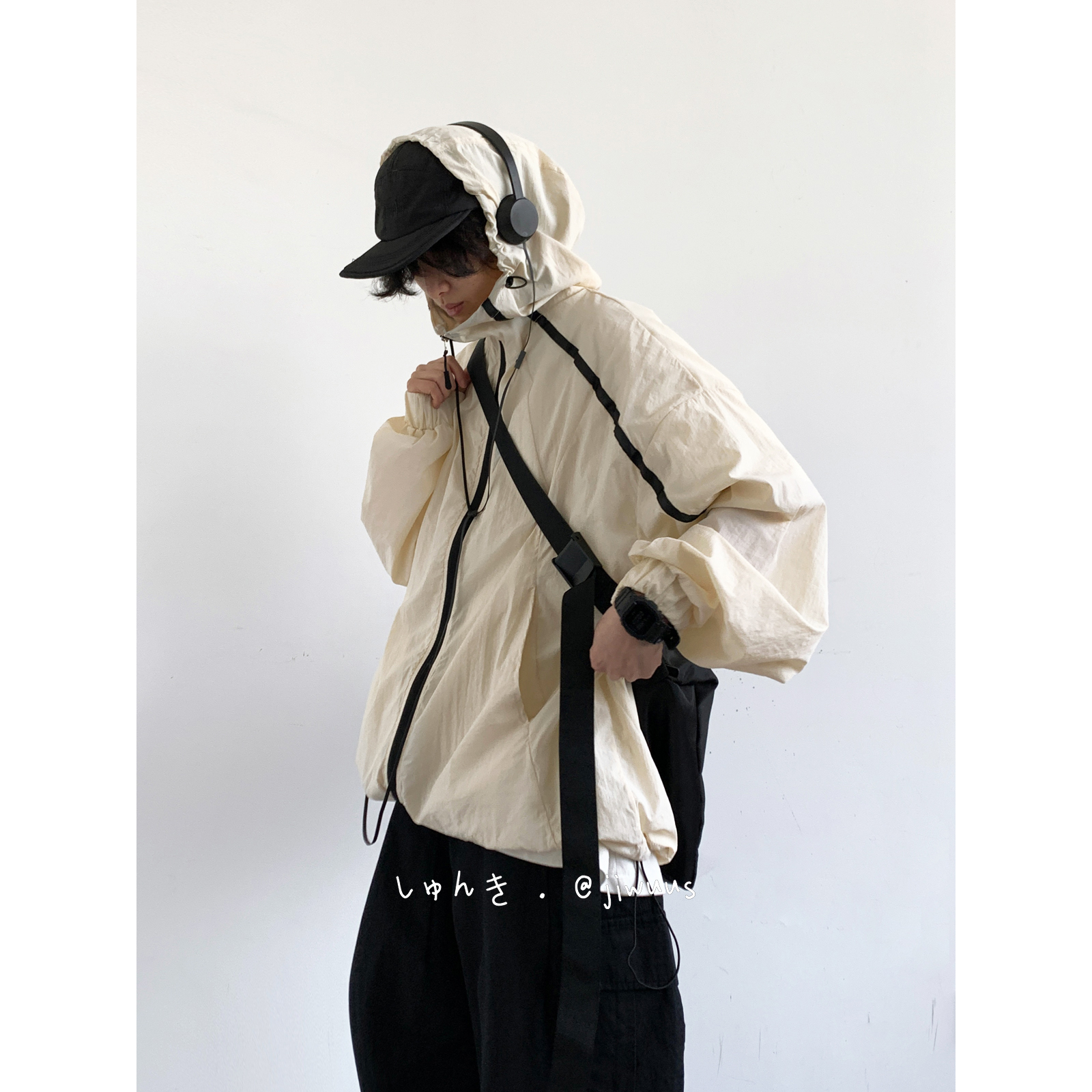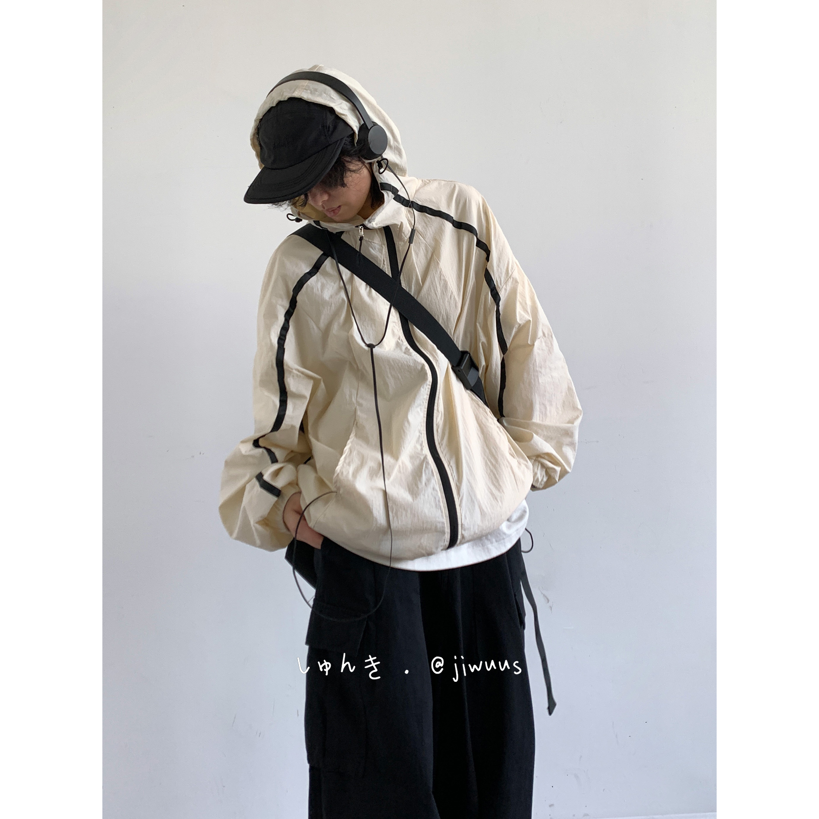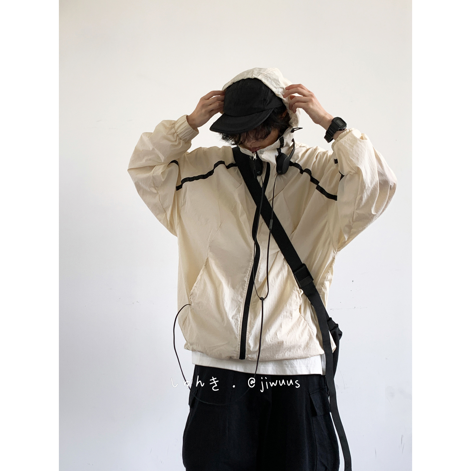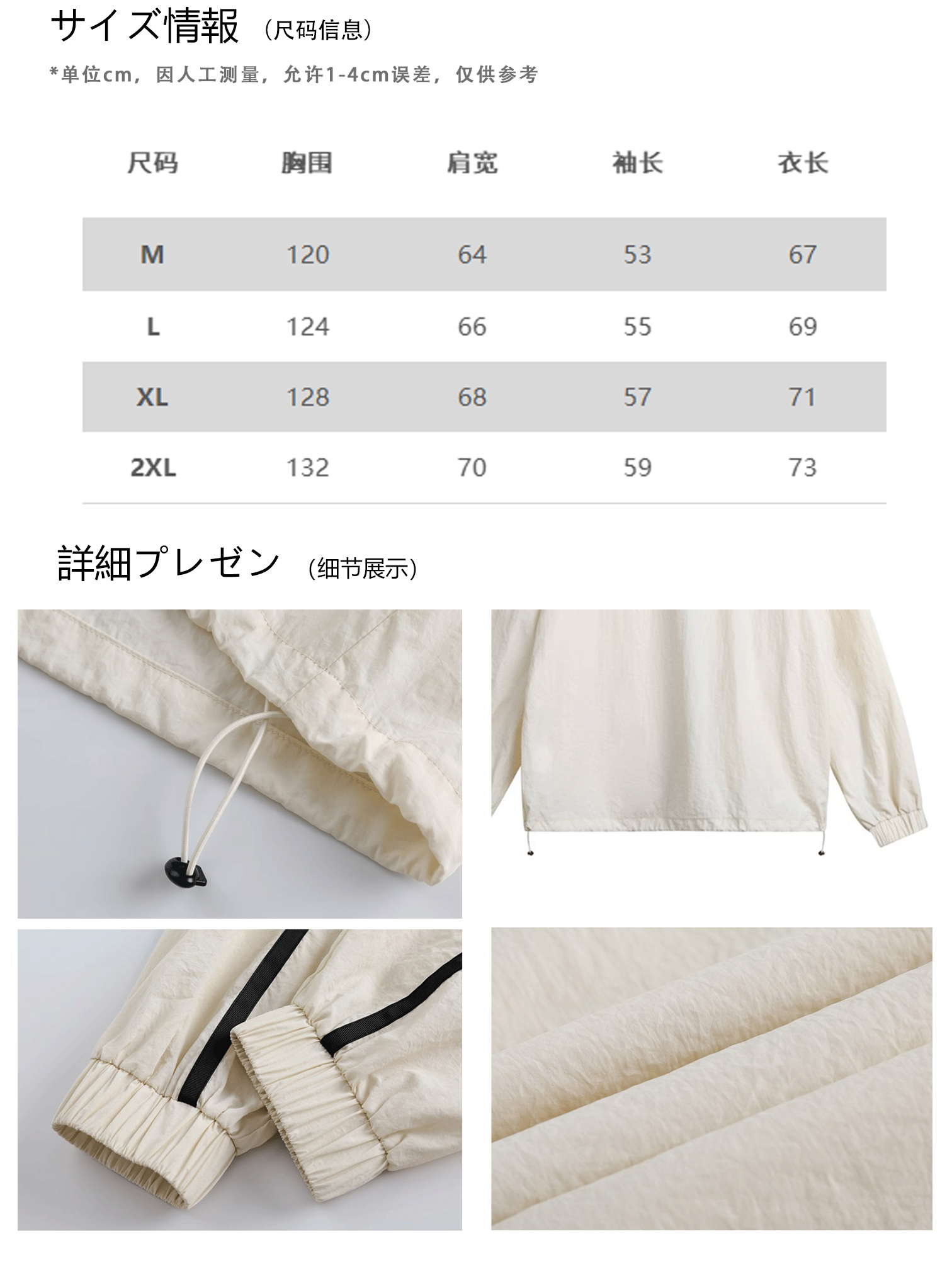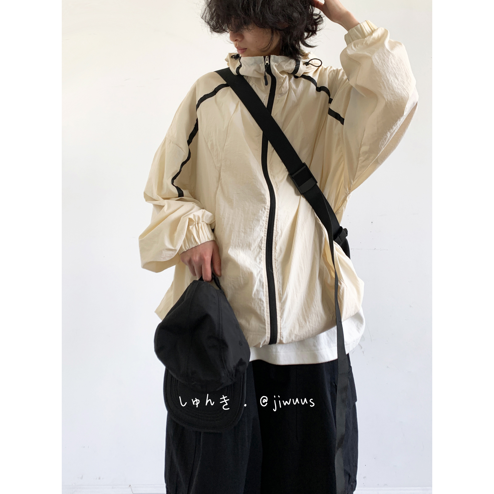 Jiwuuss 夏日系復古米白防曬服男女學生戶外登山輕薄涼感寬鬆外套