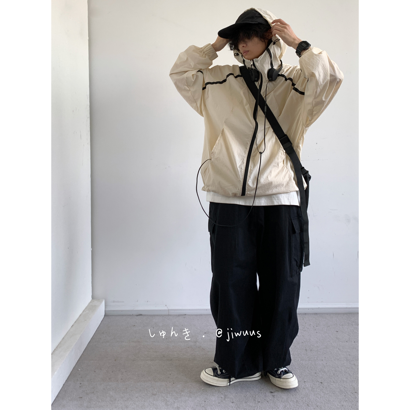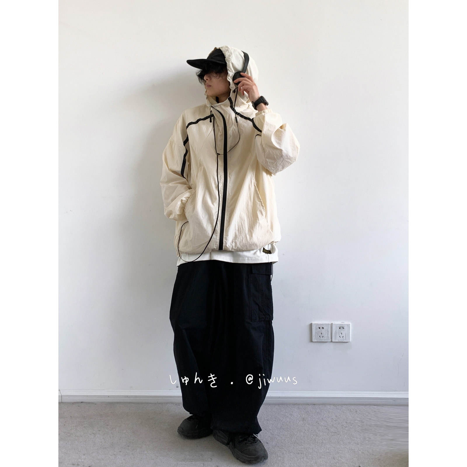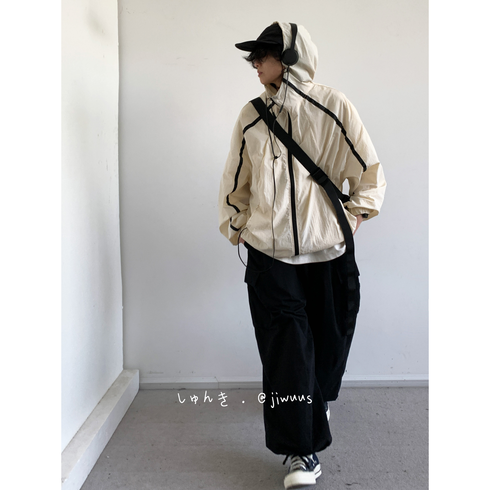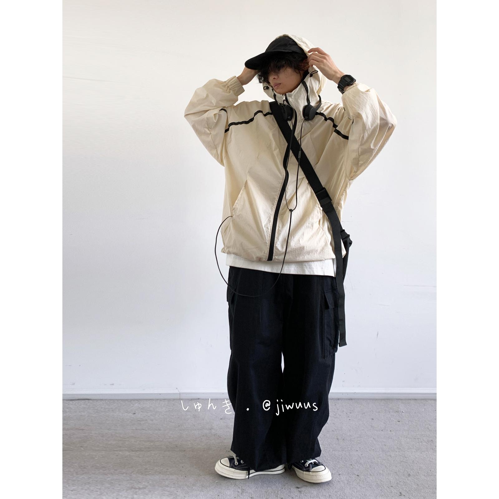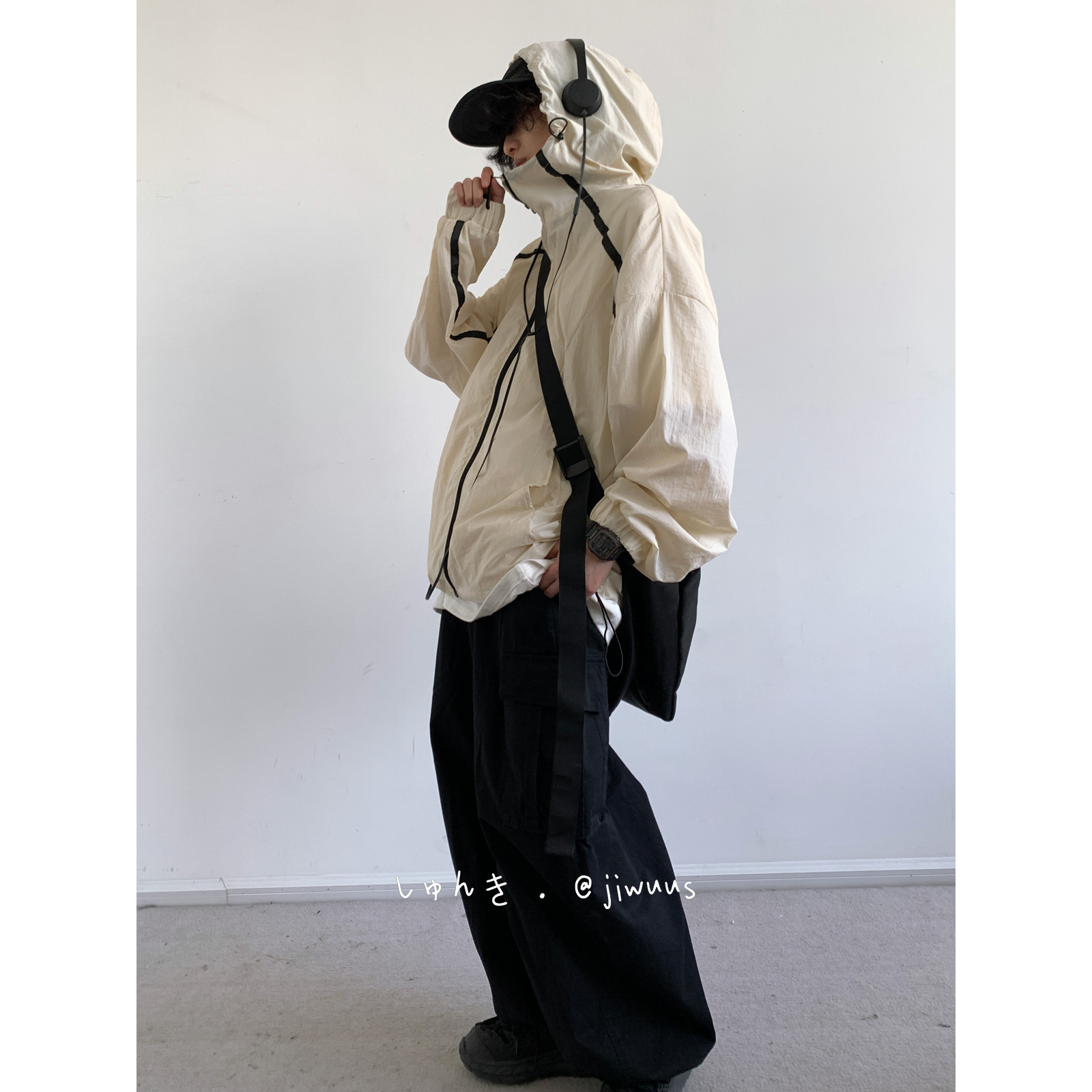 Jiwuuss 夏日系復古米白防曬服男女學生戶外登山輕薄涼感寬鬆外套