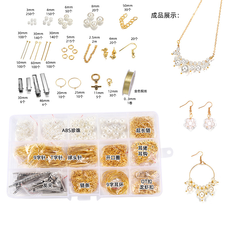 手工制作饰品配件首饰耳环耳钩手链项链制作材料串珠工具套装