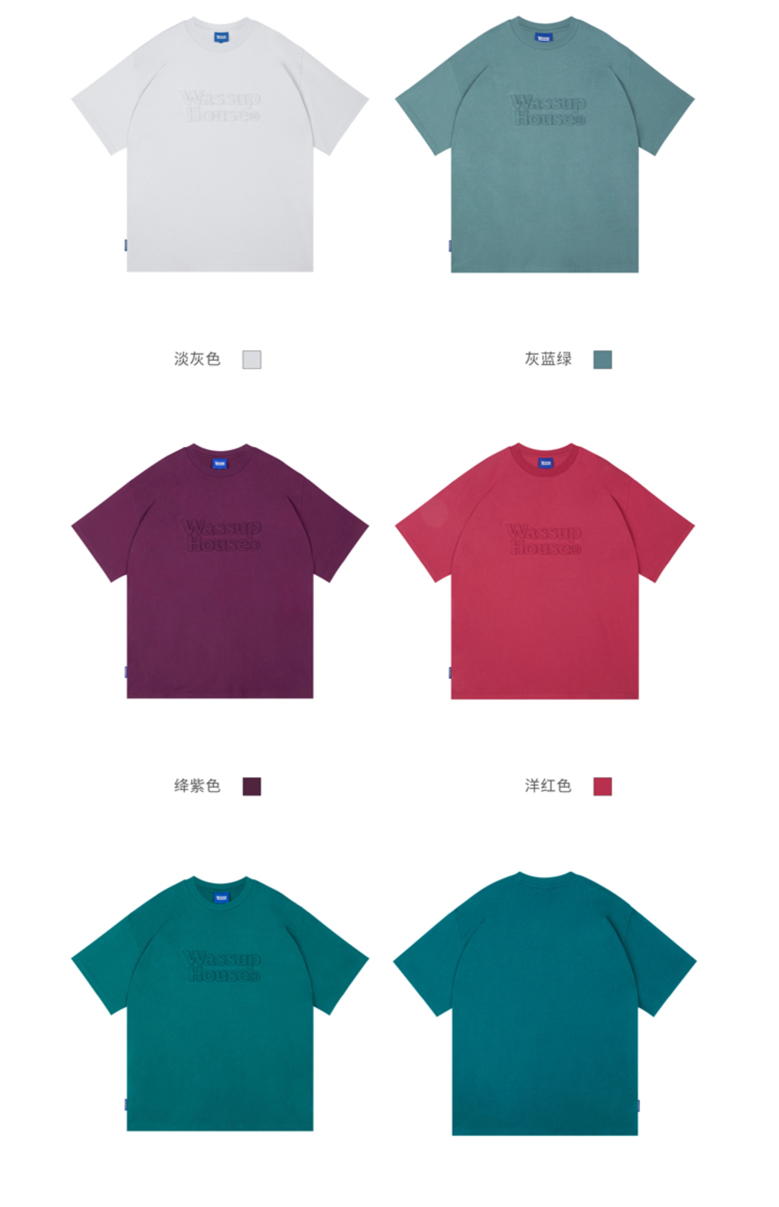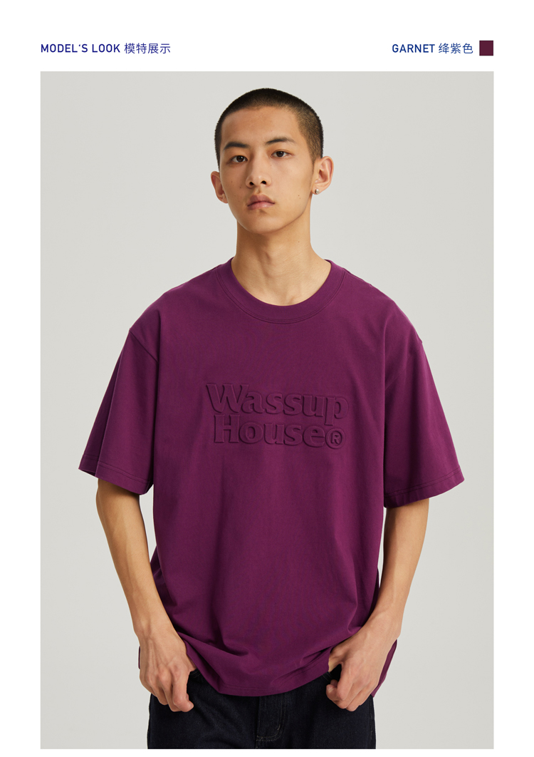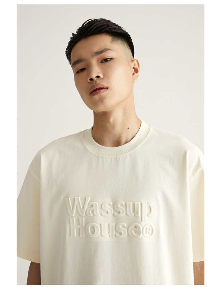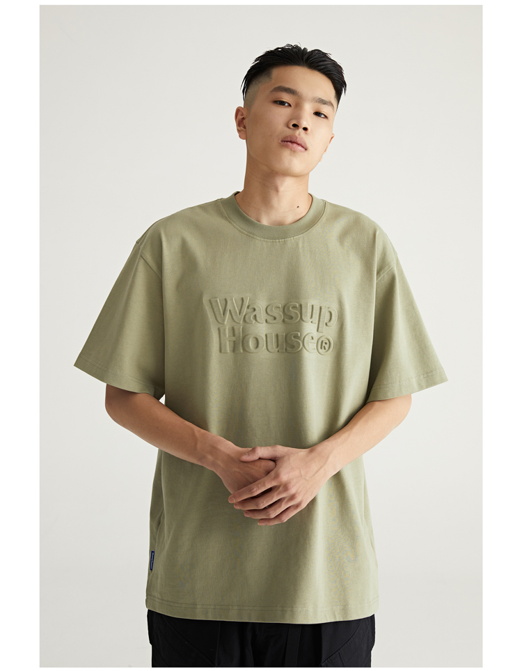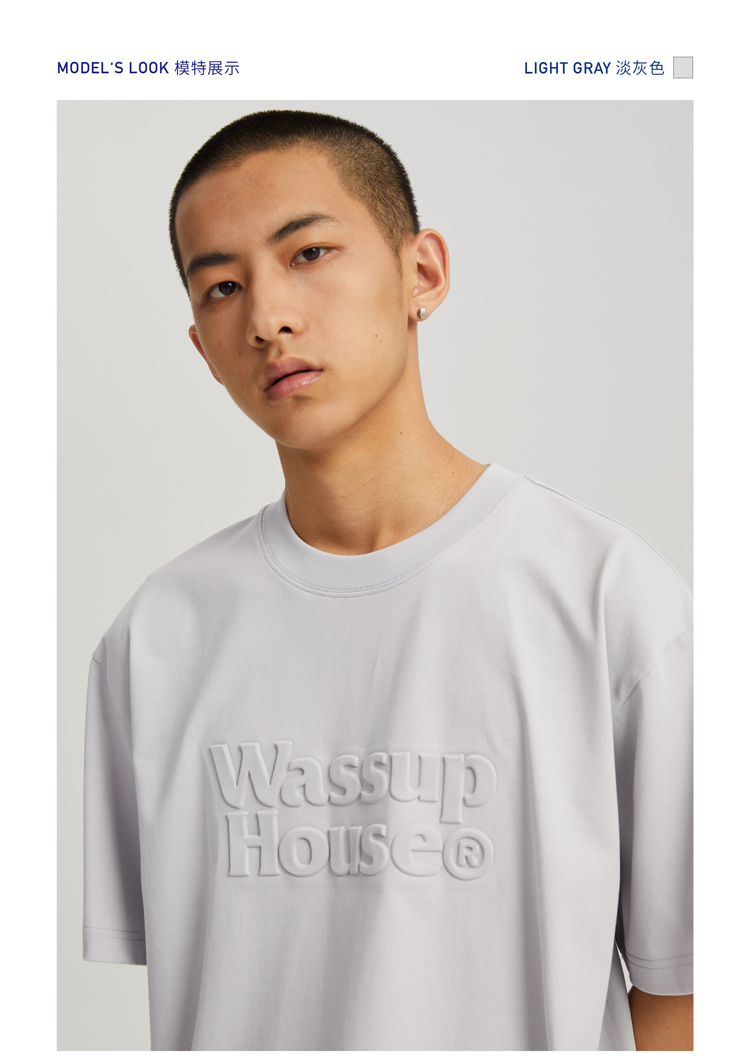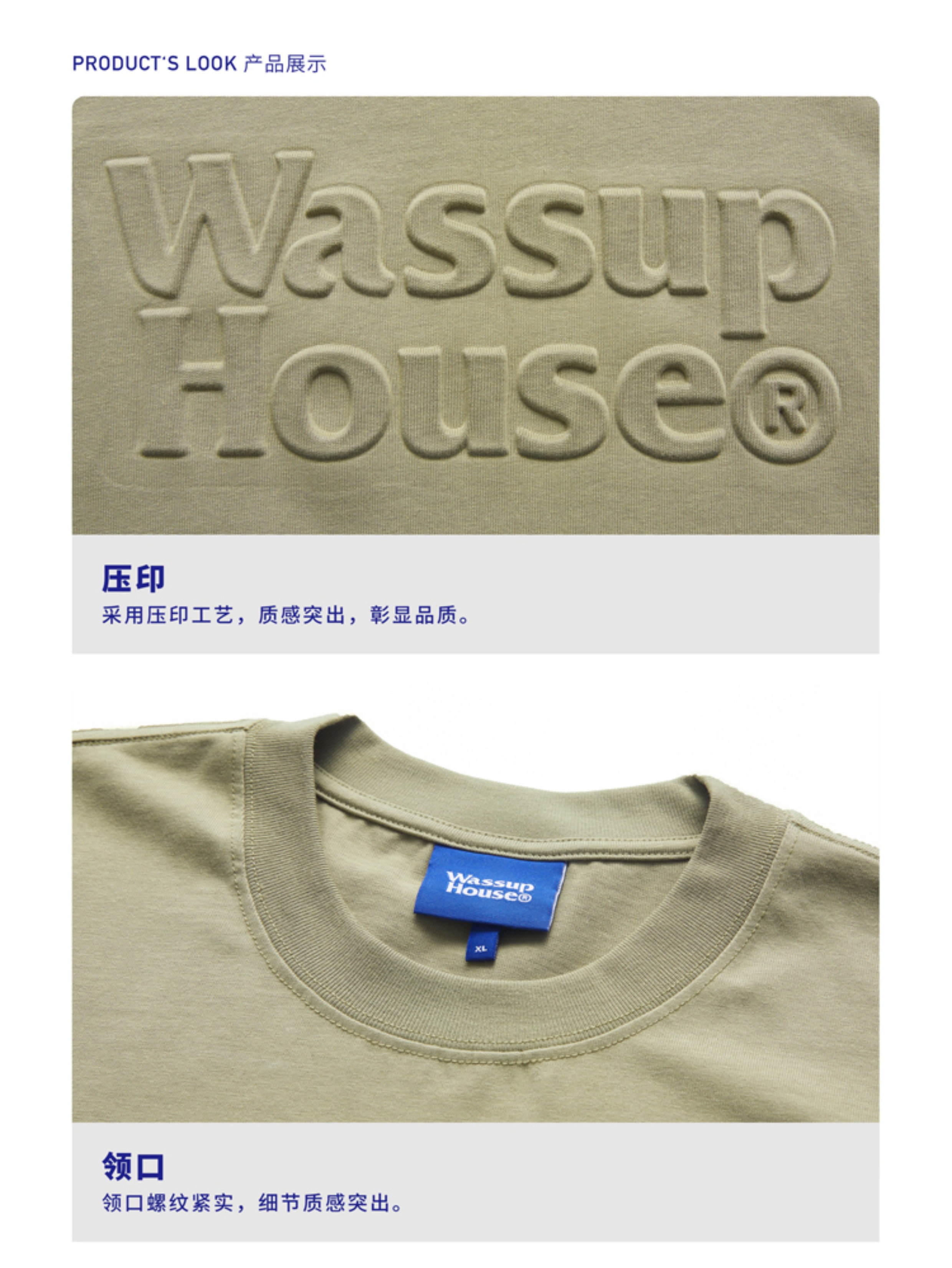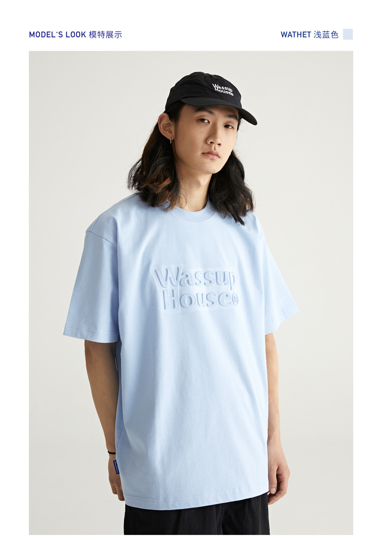 WASSUP壓印短袖t恤男女夏季國潮牌流純棉圓領簡約純色上衣情侶款