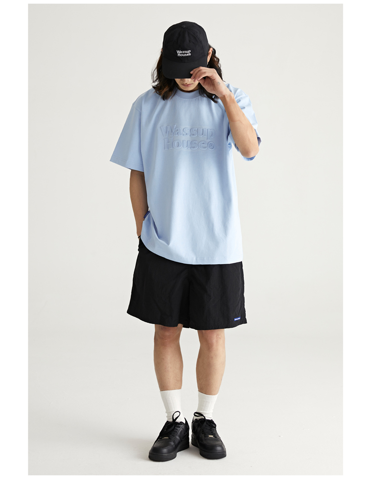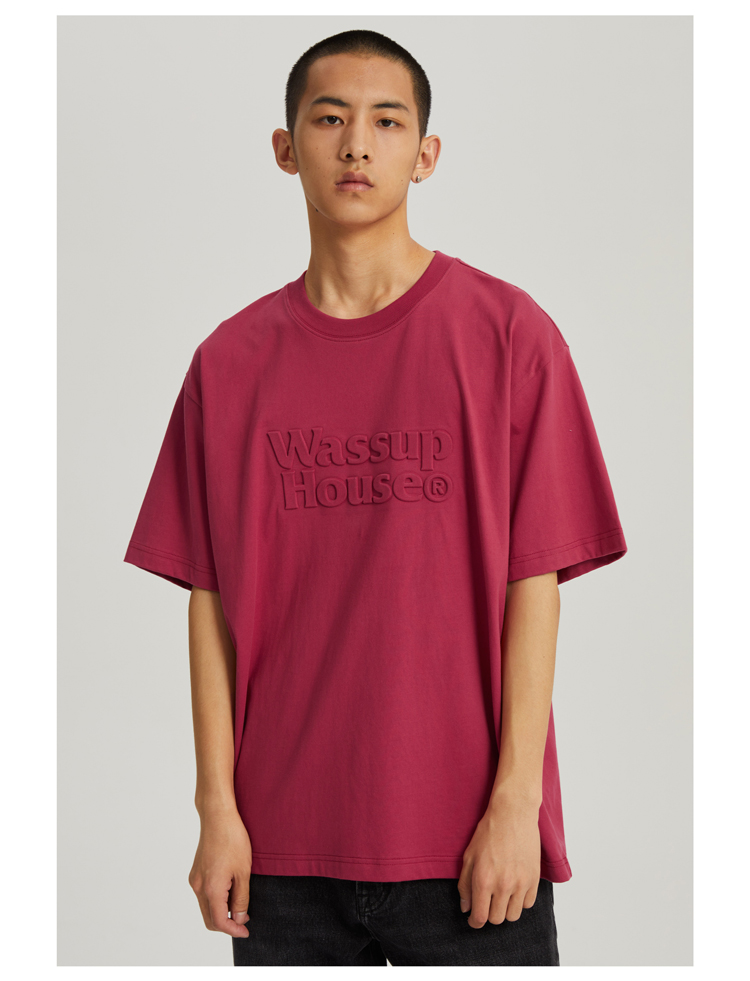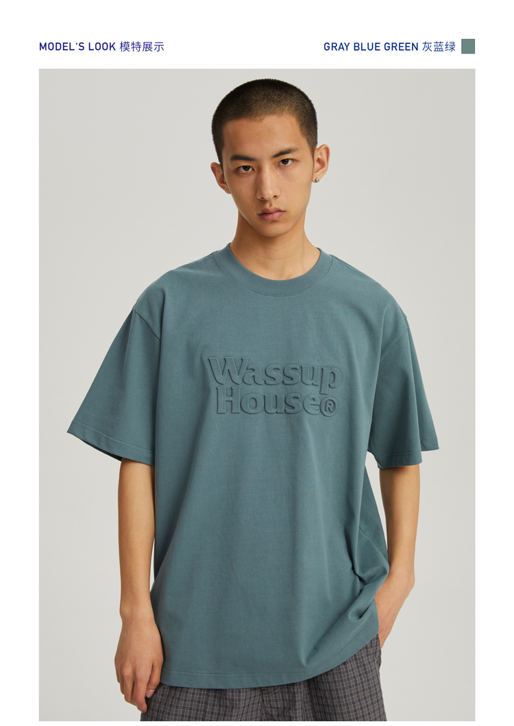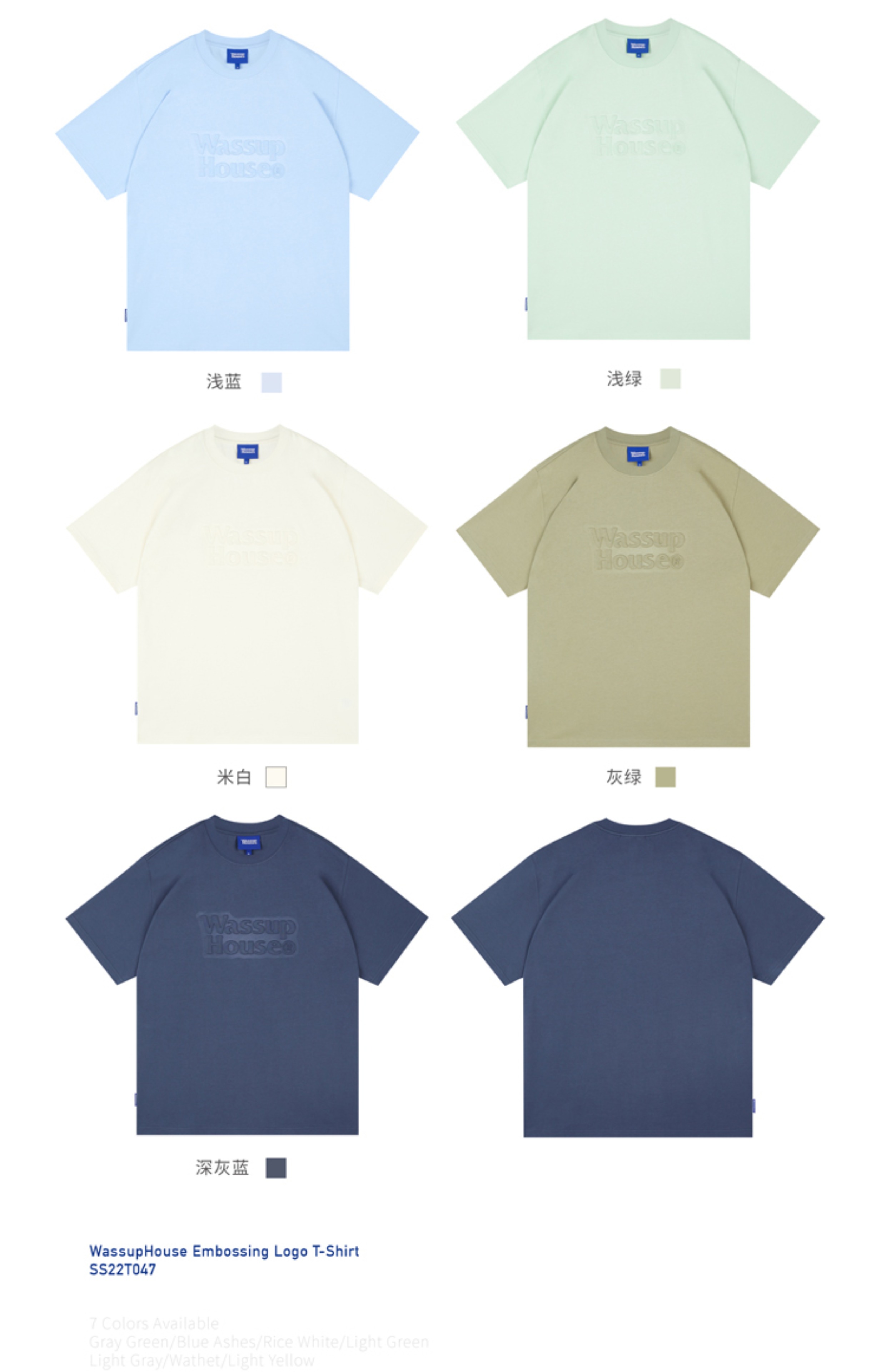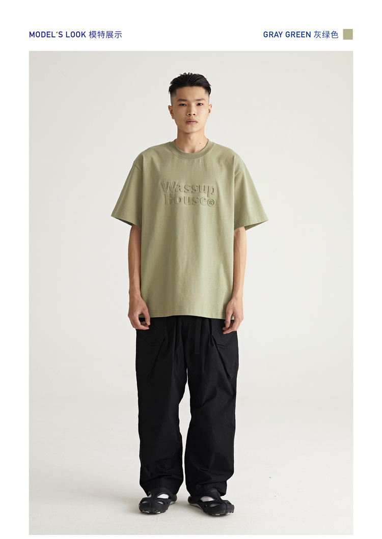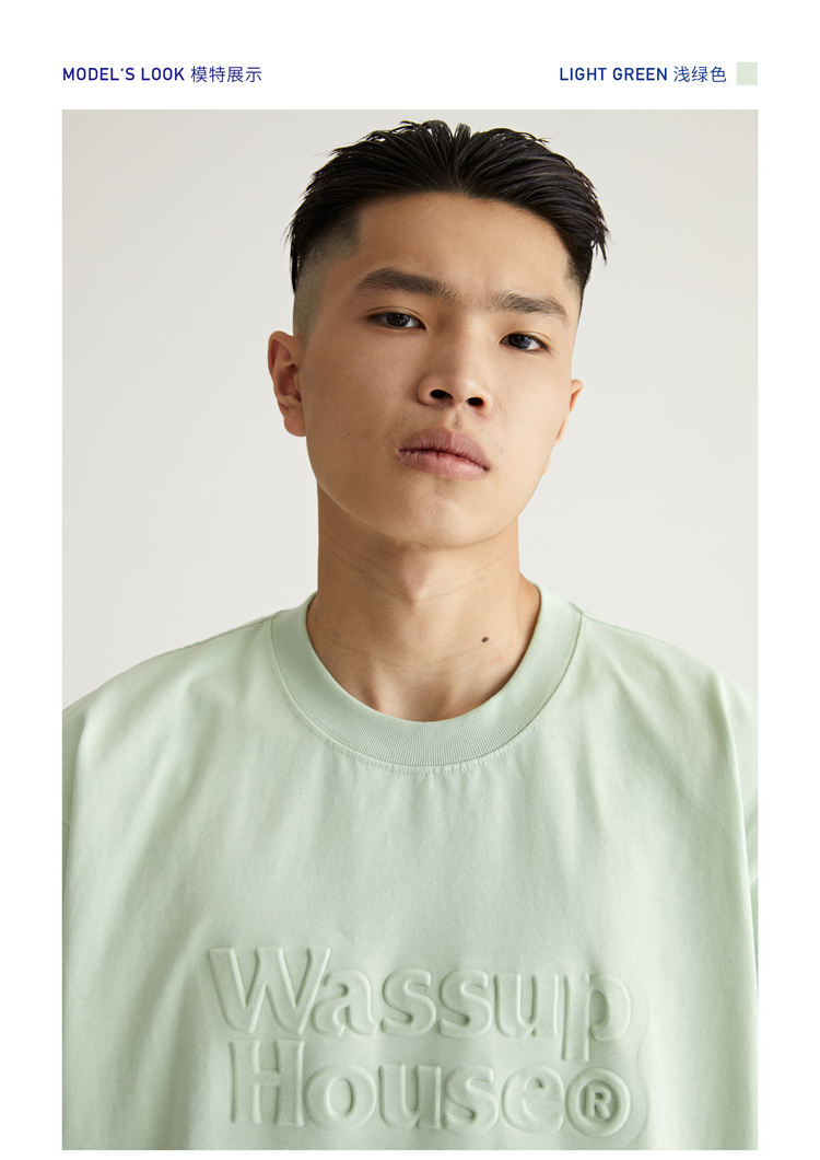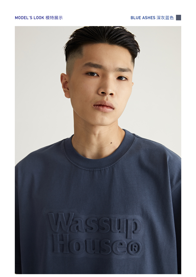 WASSUP壓印短袖t恤男女夏季國潮牌流純棉圓領簡約純色上衣情侶款