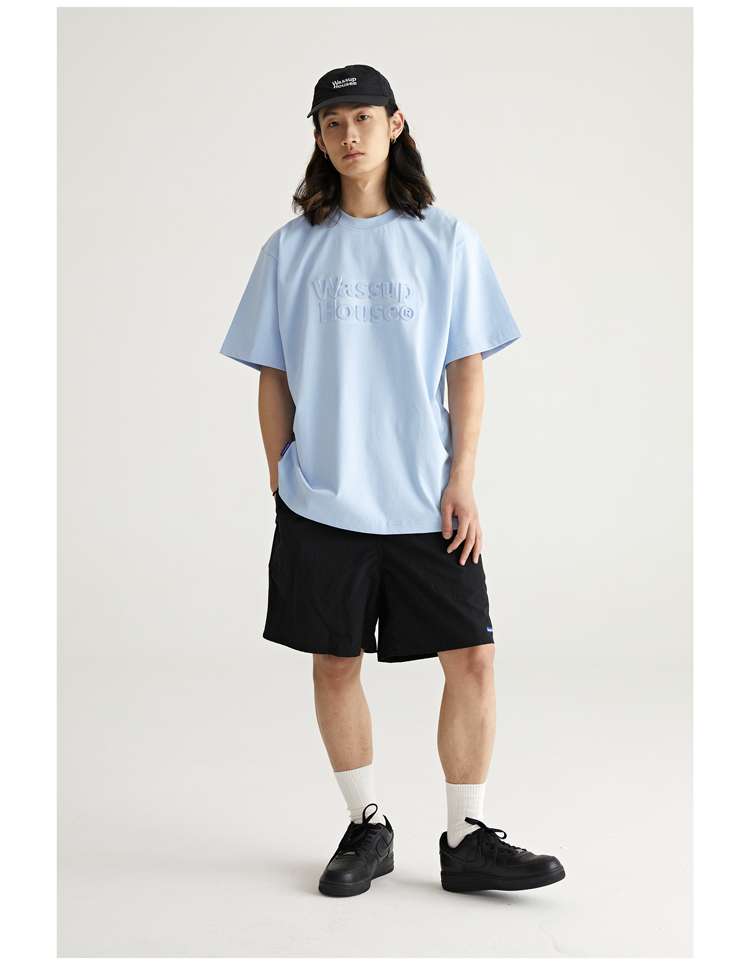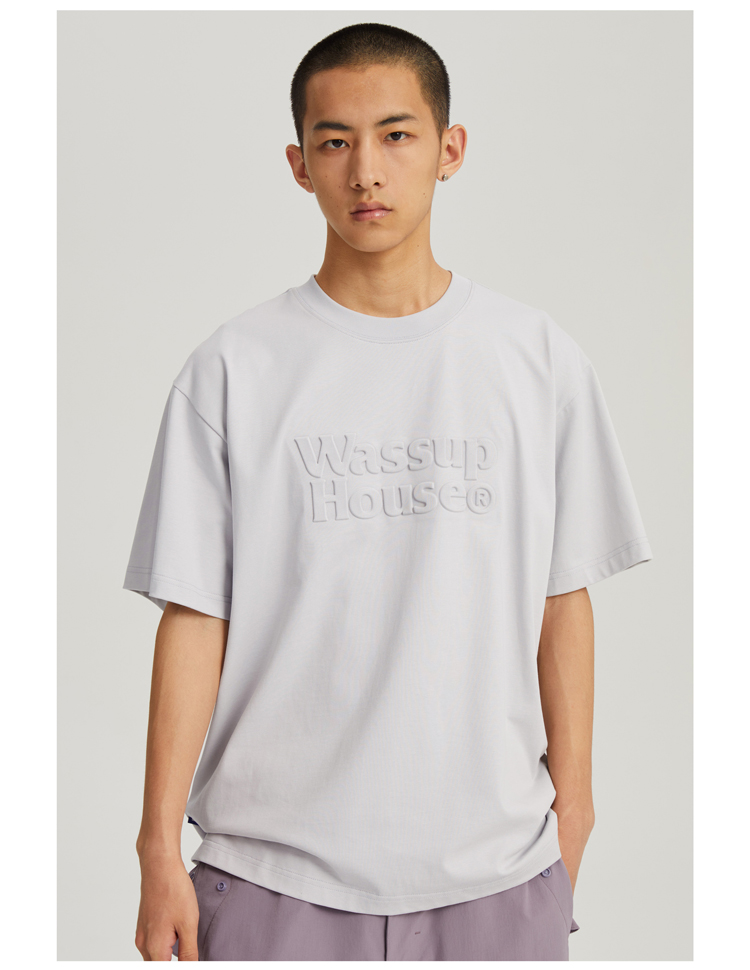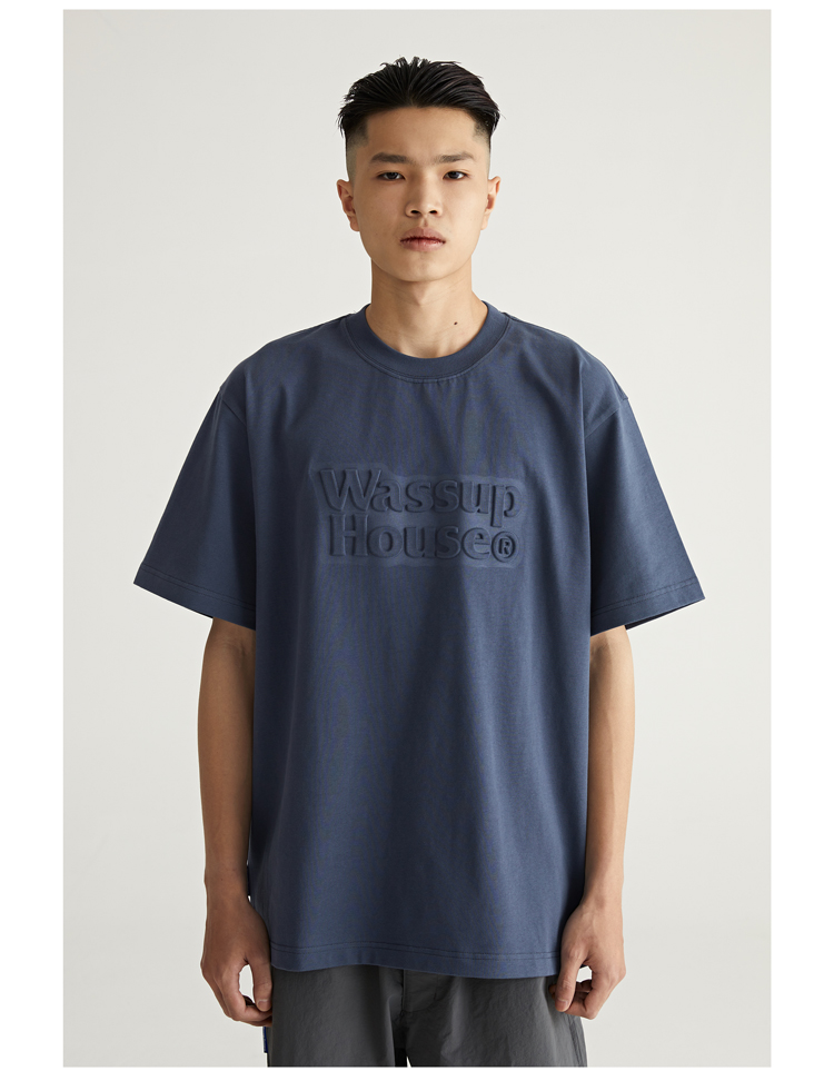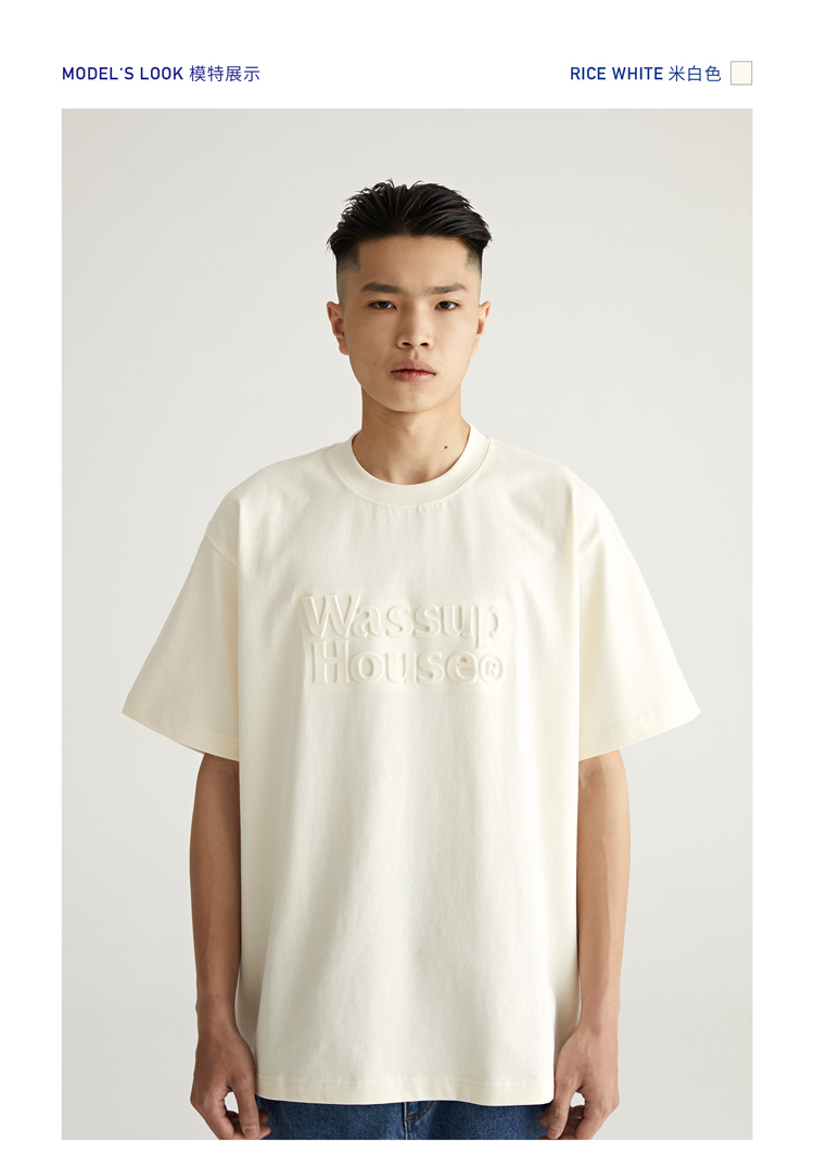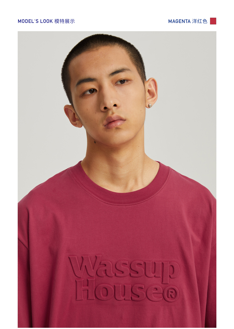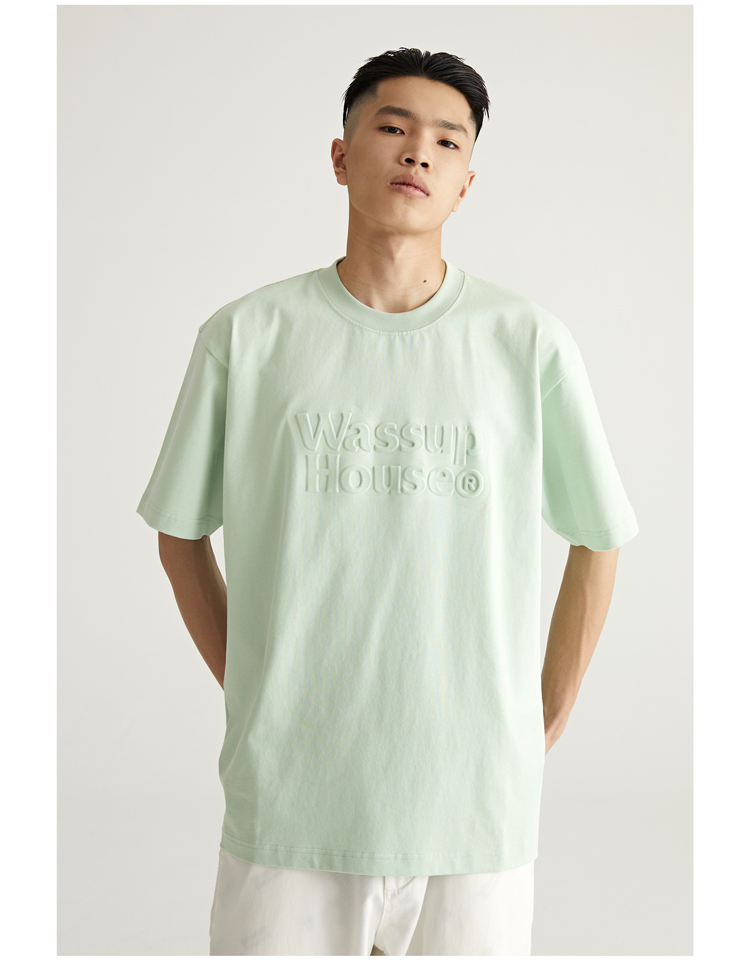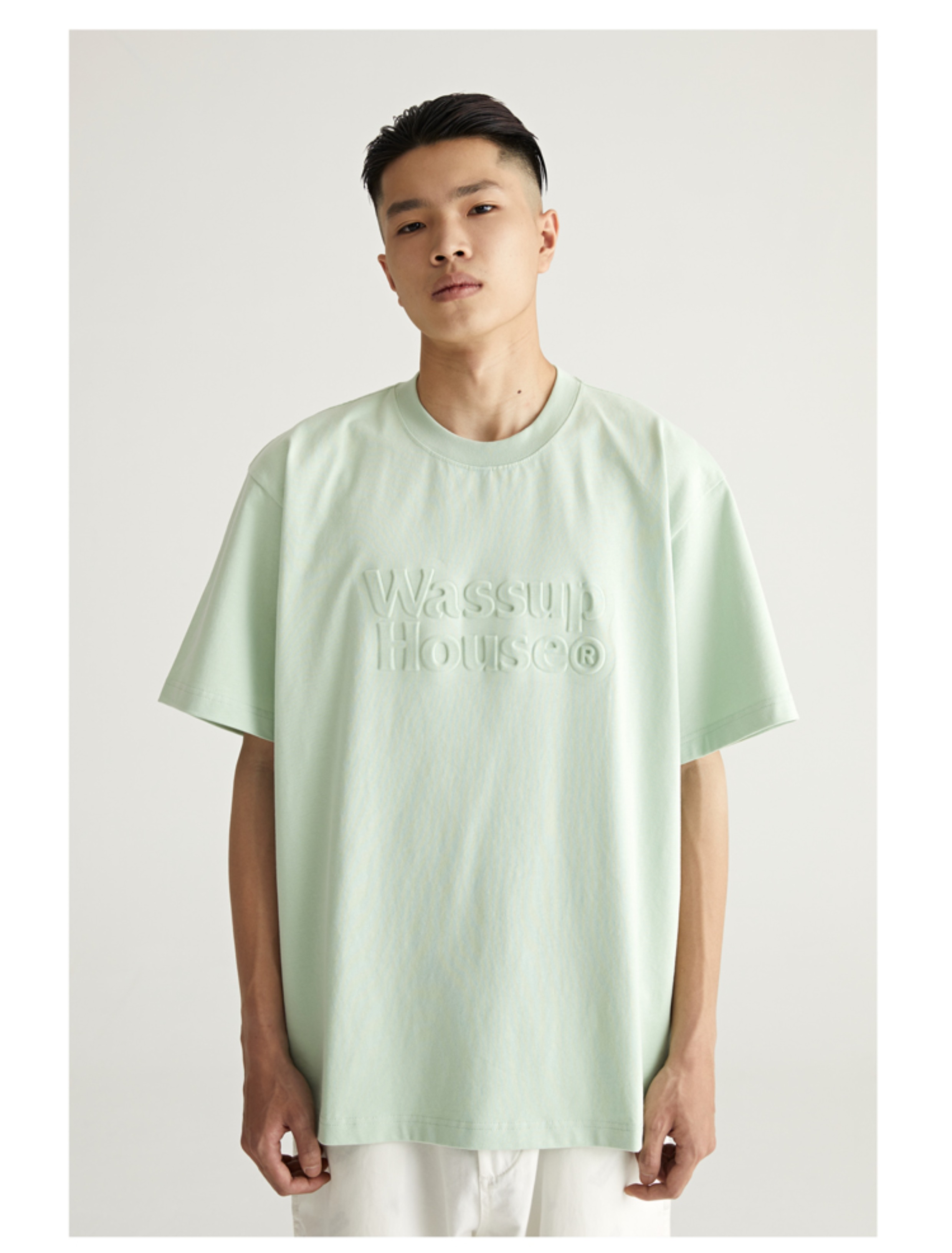 WASSUP壓印短袖t恤男女夏季國潮牌流純棉圓領簡約純色上衣情侶款