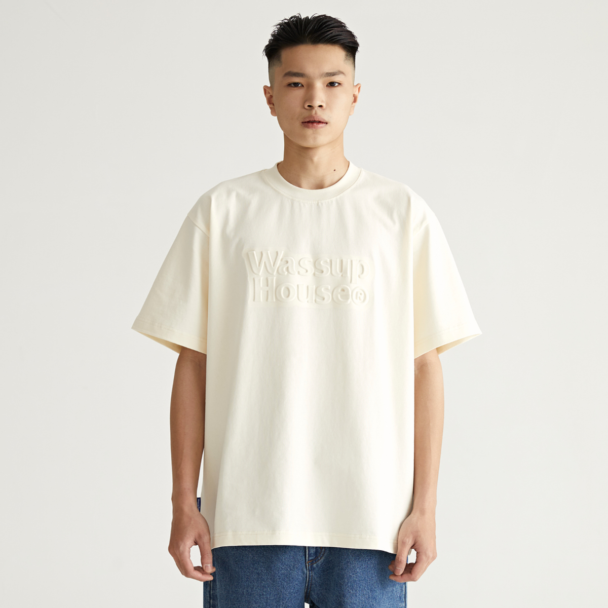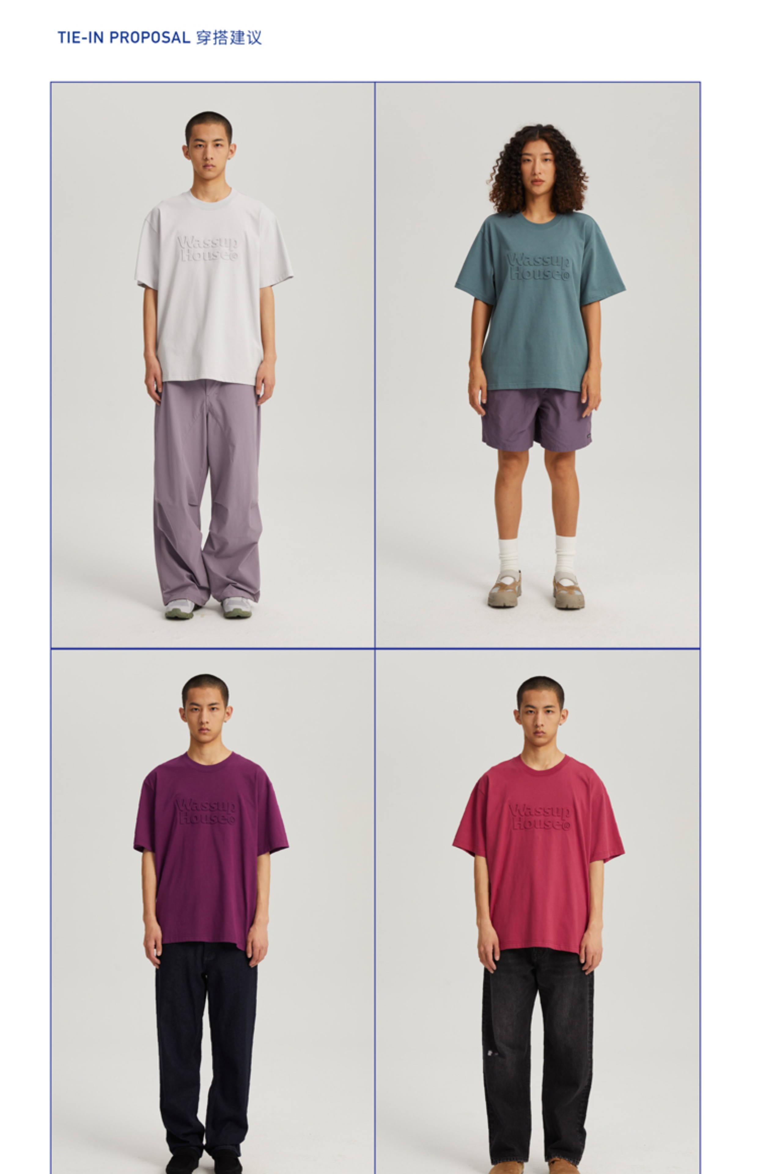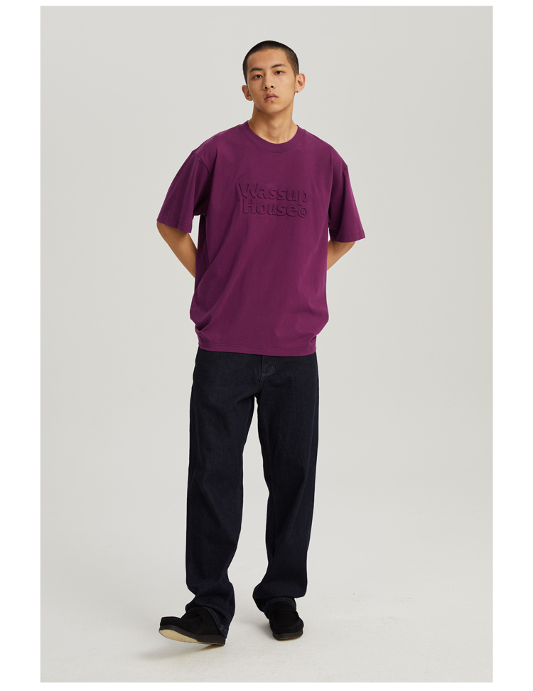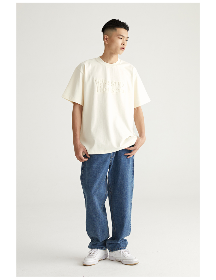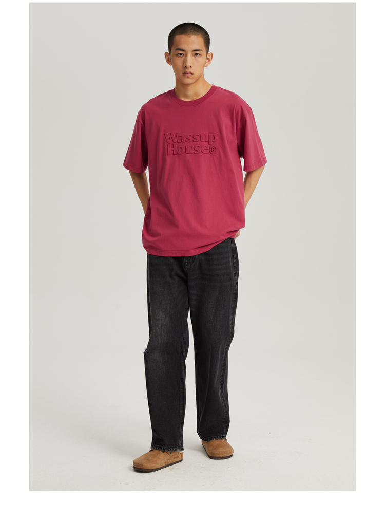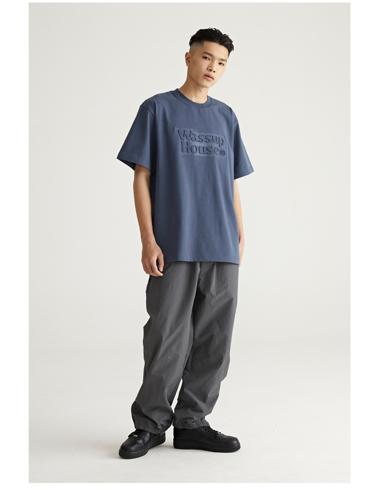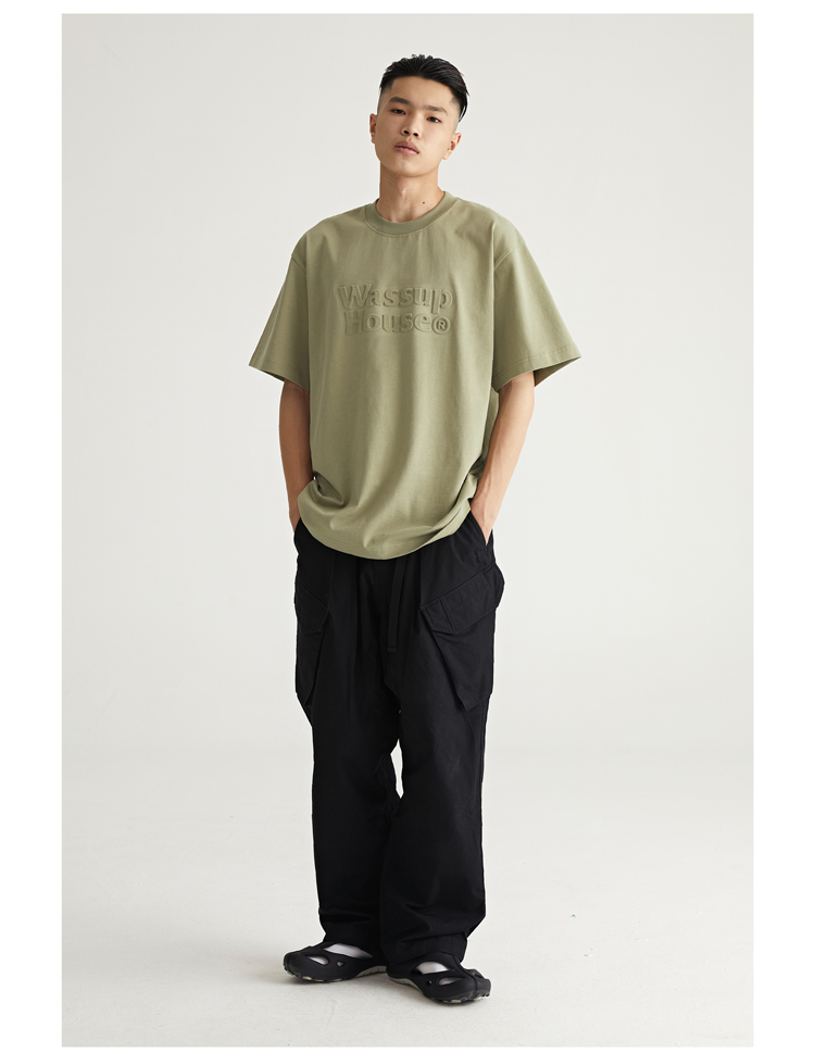 WASSUP壓印短袖t恤男女夏季國潮牌流純棉圓領簡約純色上衣情侶款