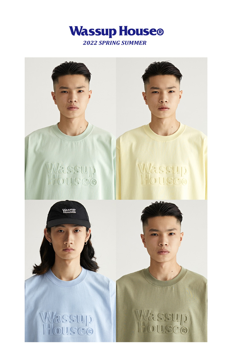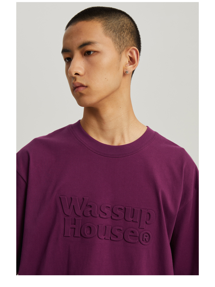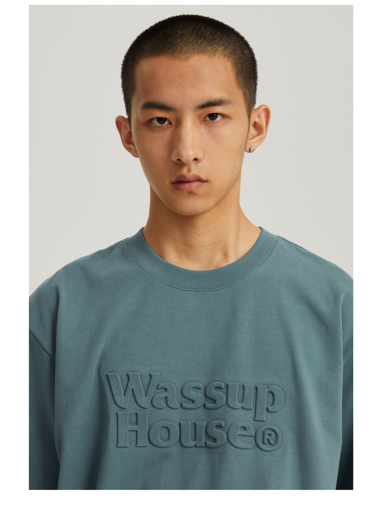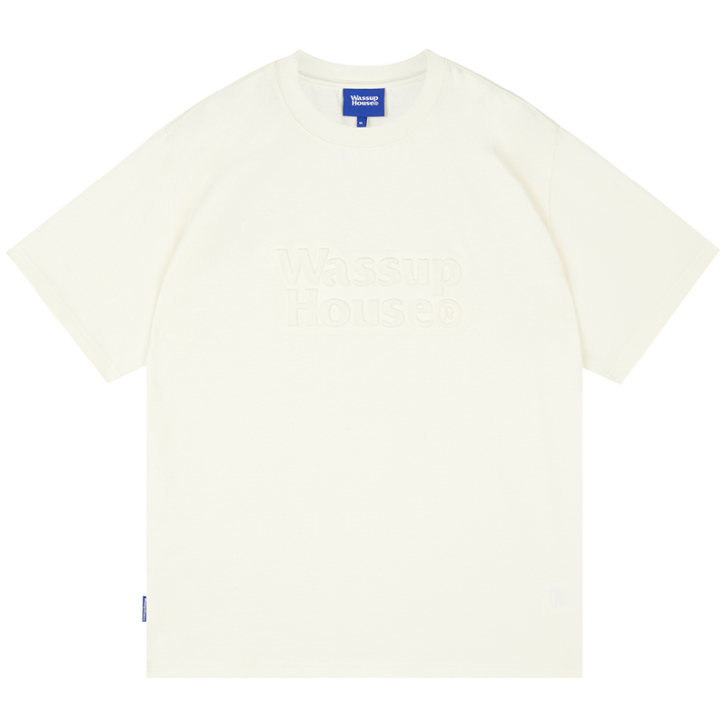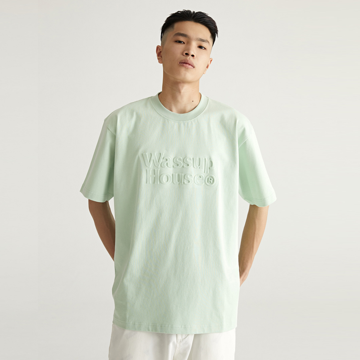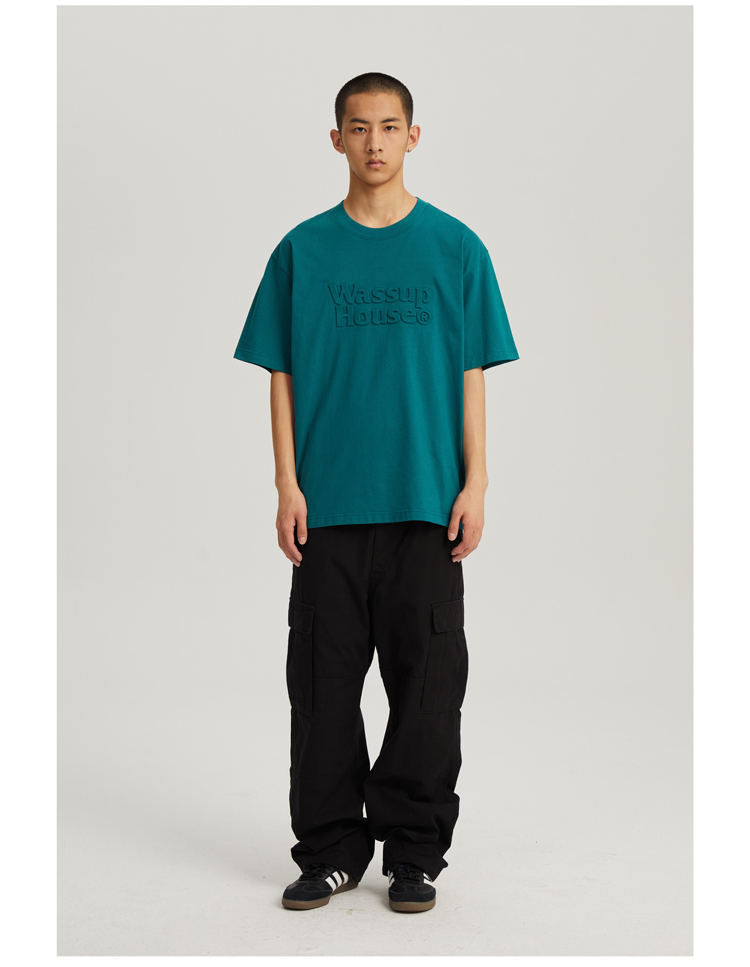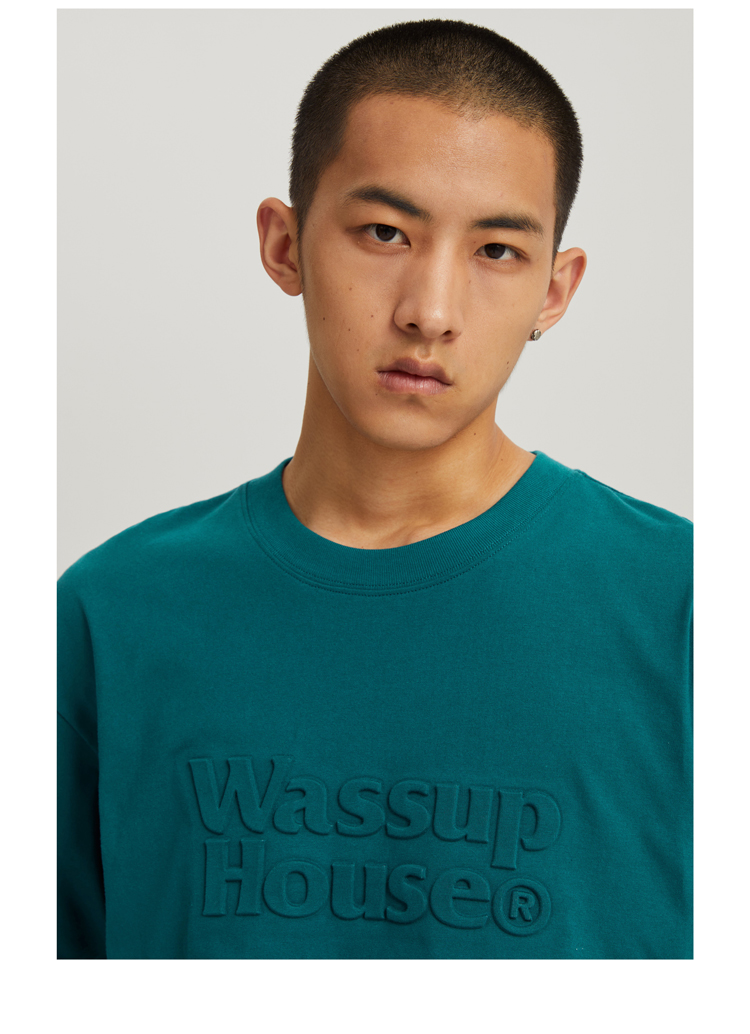 WASSUP壓印短袖t恤男女夏季國潮牌流純棉圓領簡約純色上衣情侶款