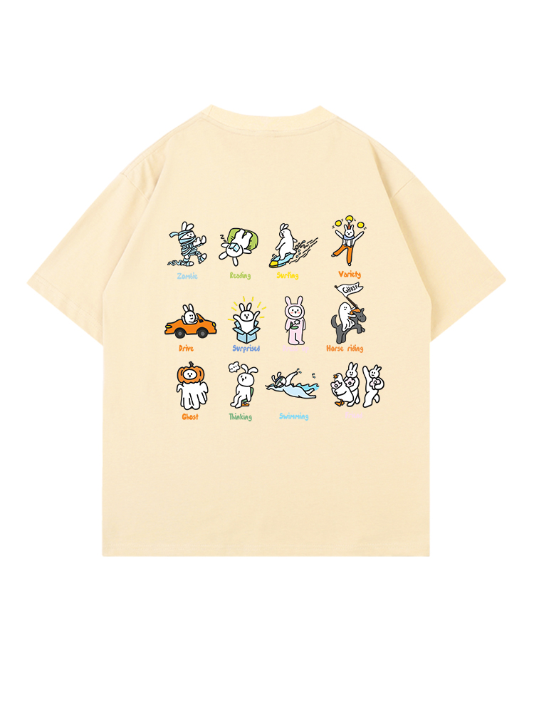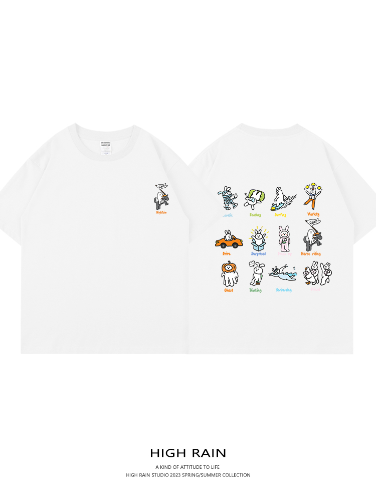 很潤工作室 夏季騎馬的小人落肩短袖男女設計感休閒T恤情侶上衣