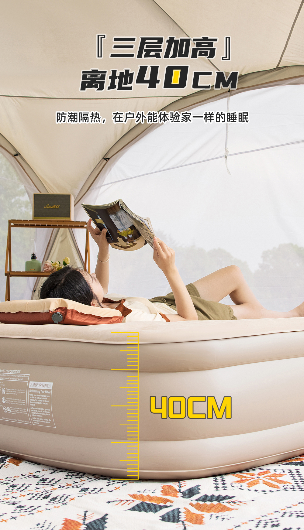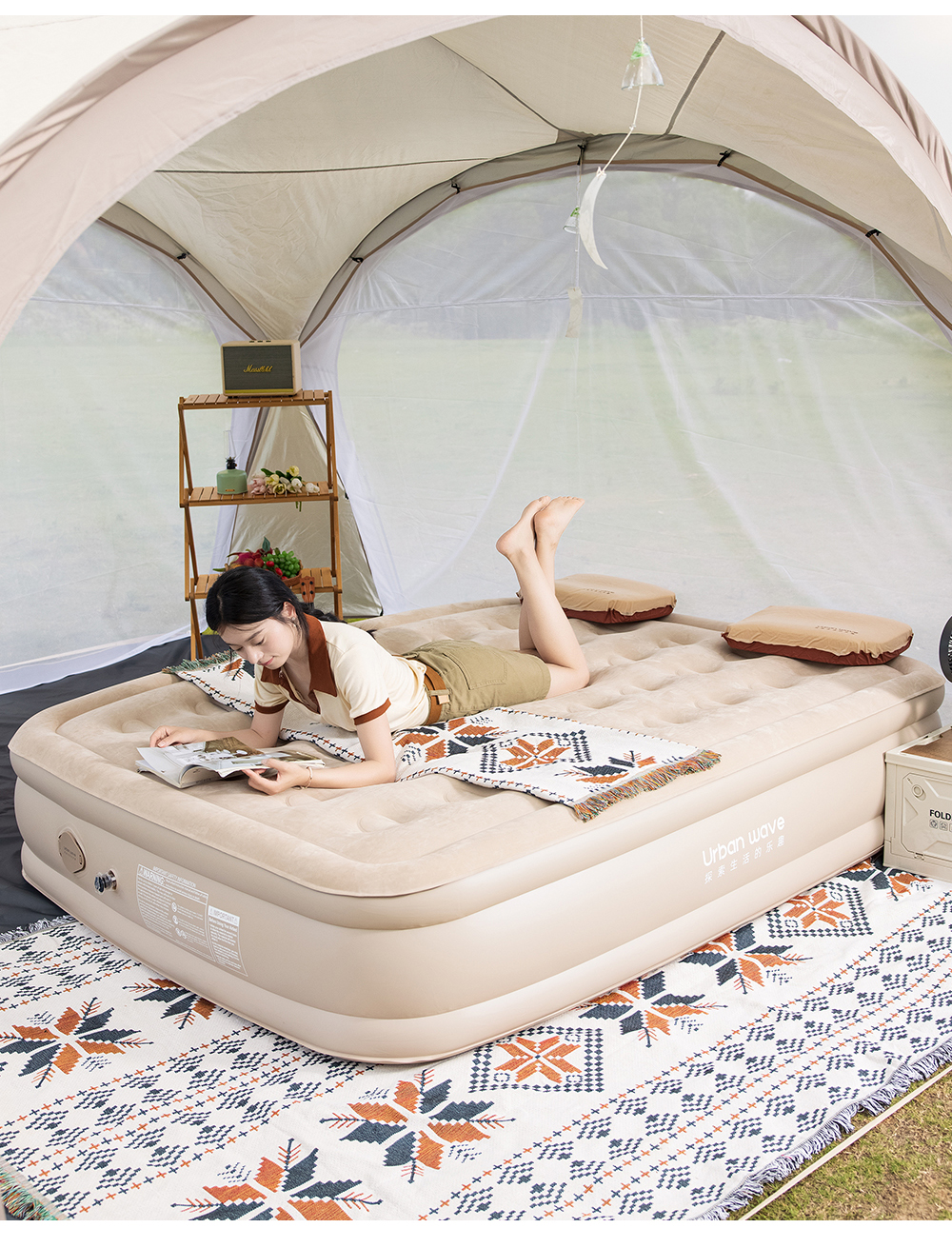 城市波浪自動充氣牀墊戶外帳篷加厚露營打地舖野營可攜式家用氣墊牀