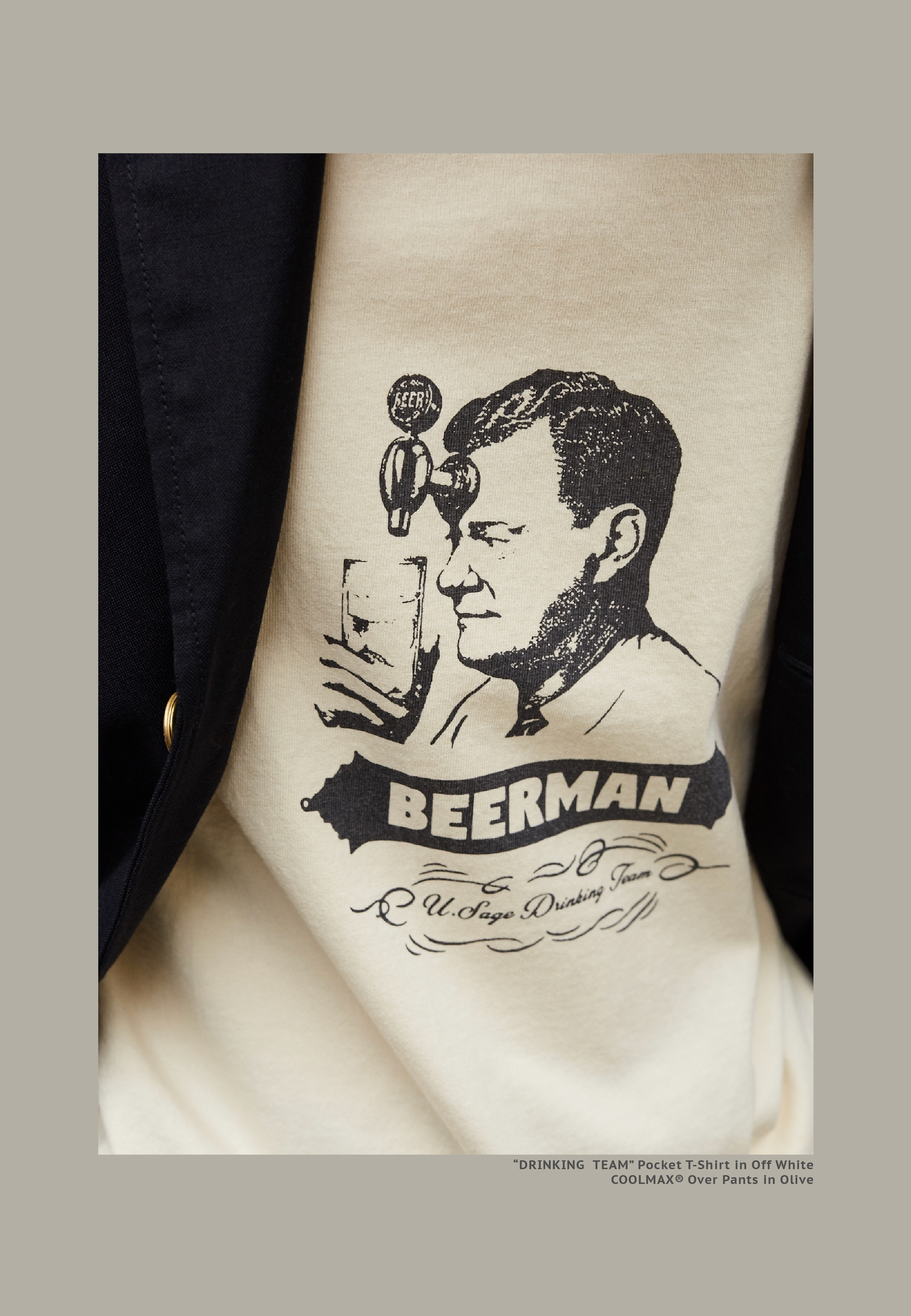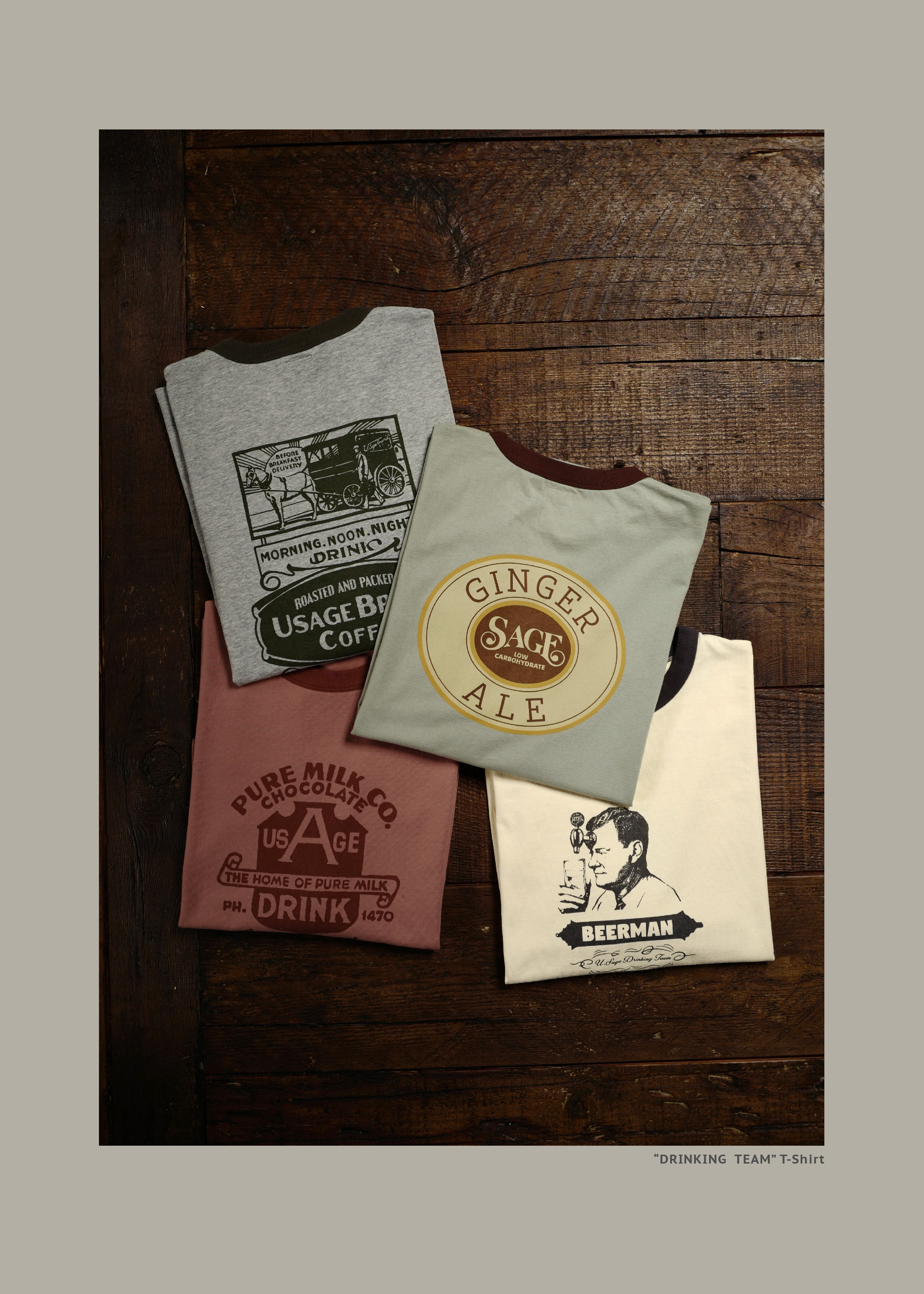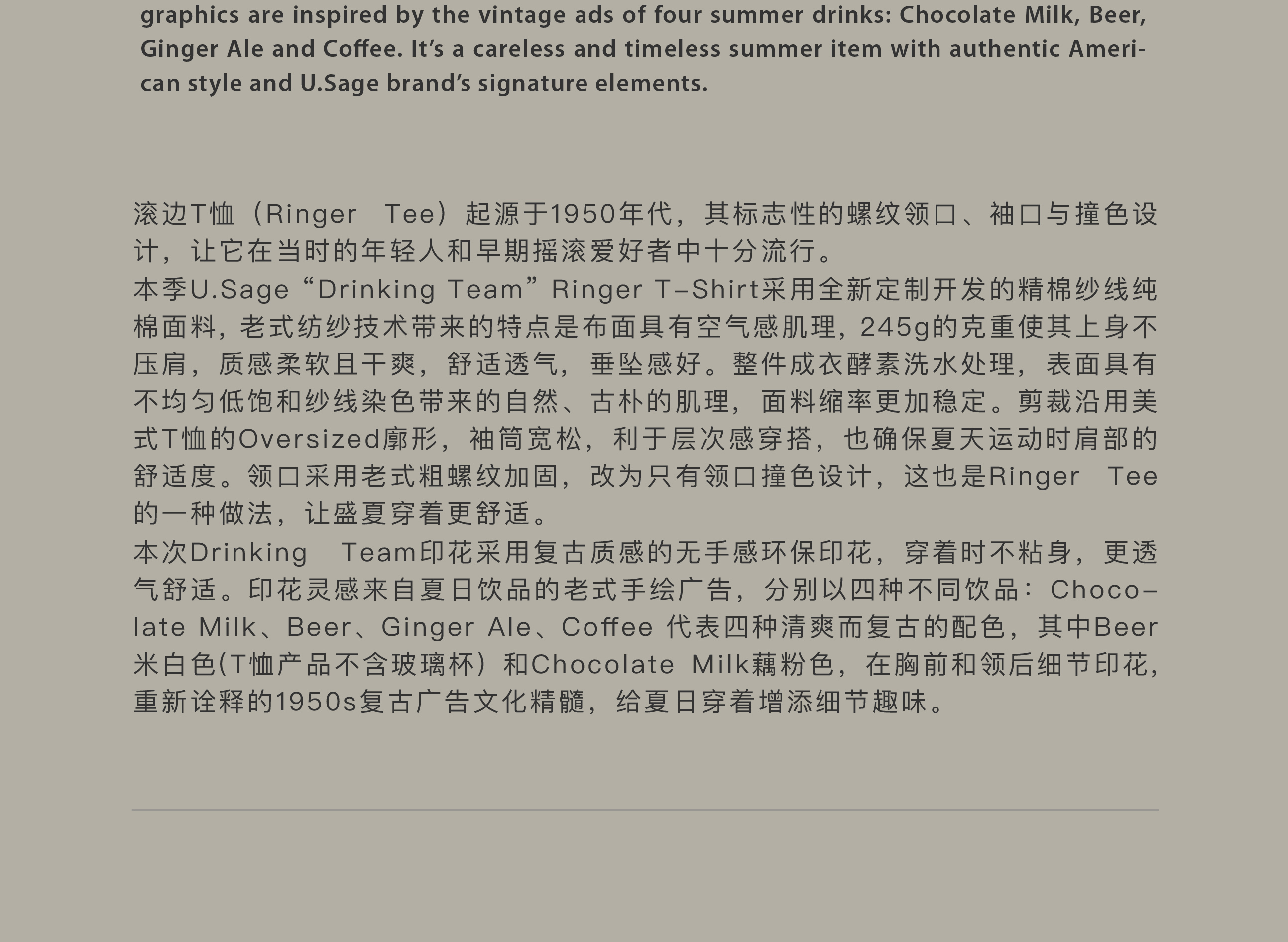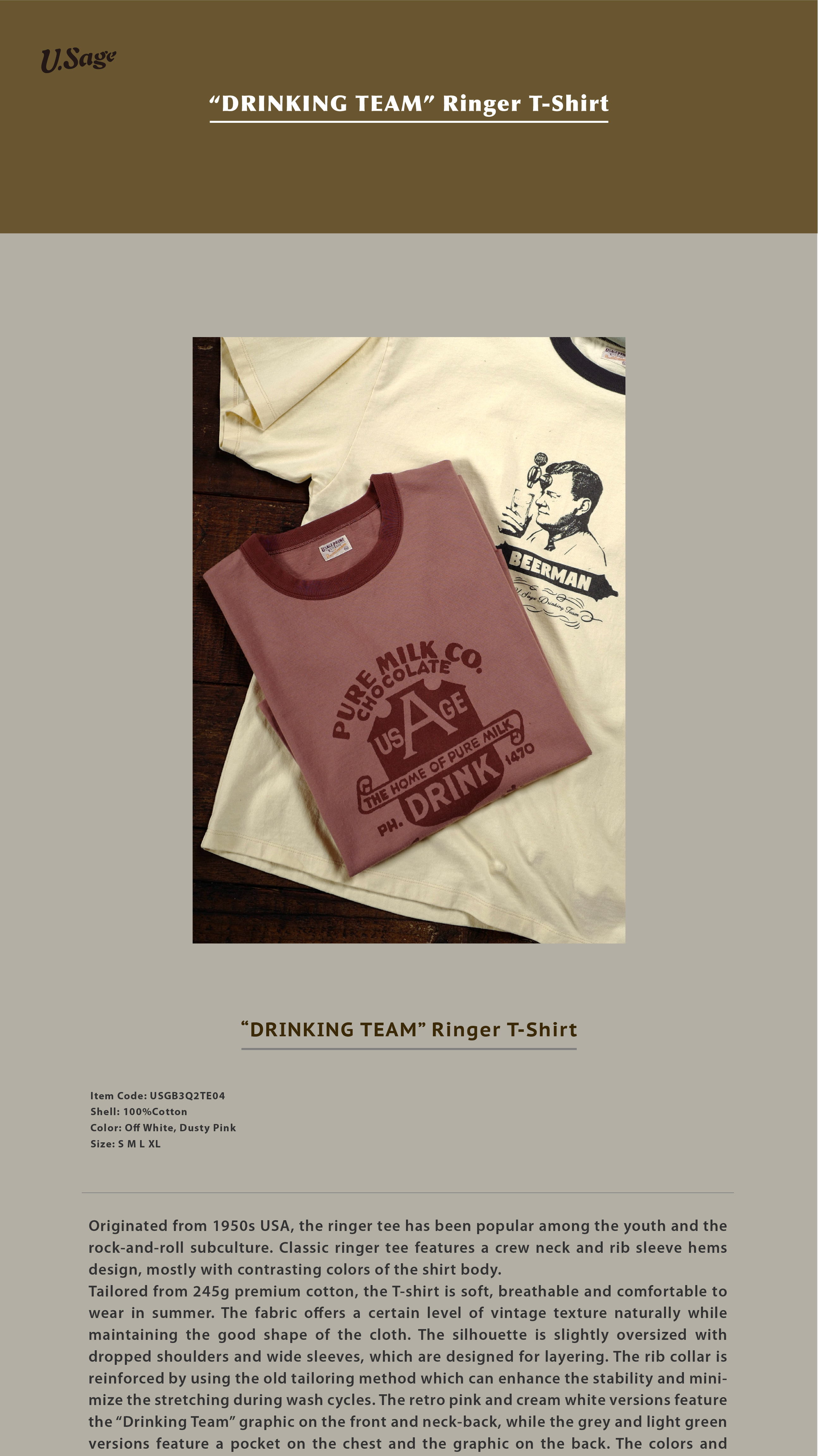 U.Sage SS23 USAGE DRINKING TEAM系列印花復古定織舒適棉滾邊T恤