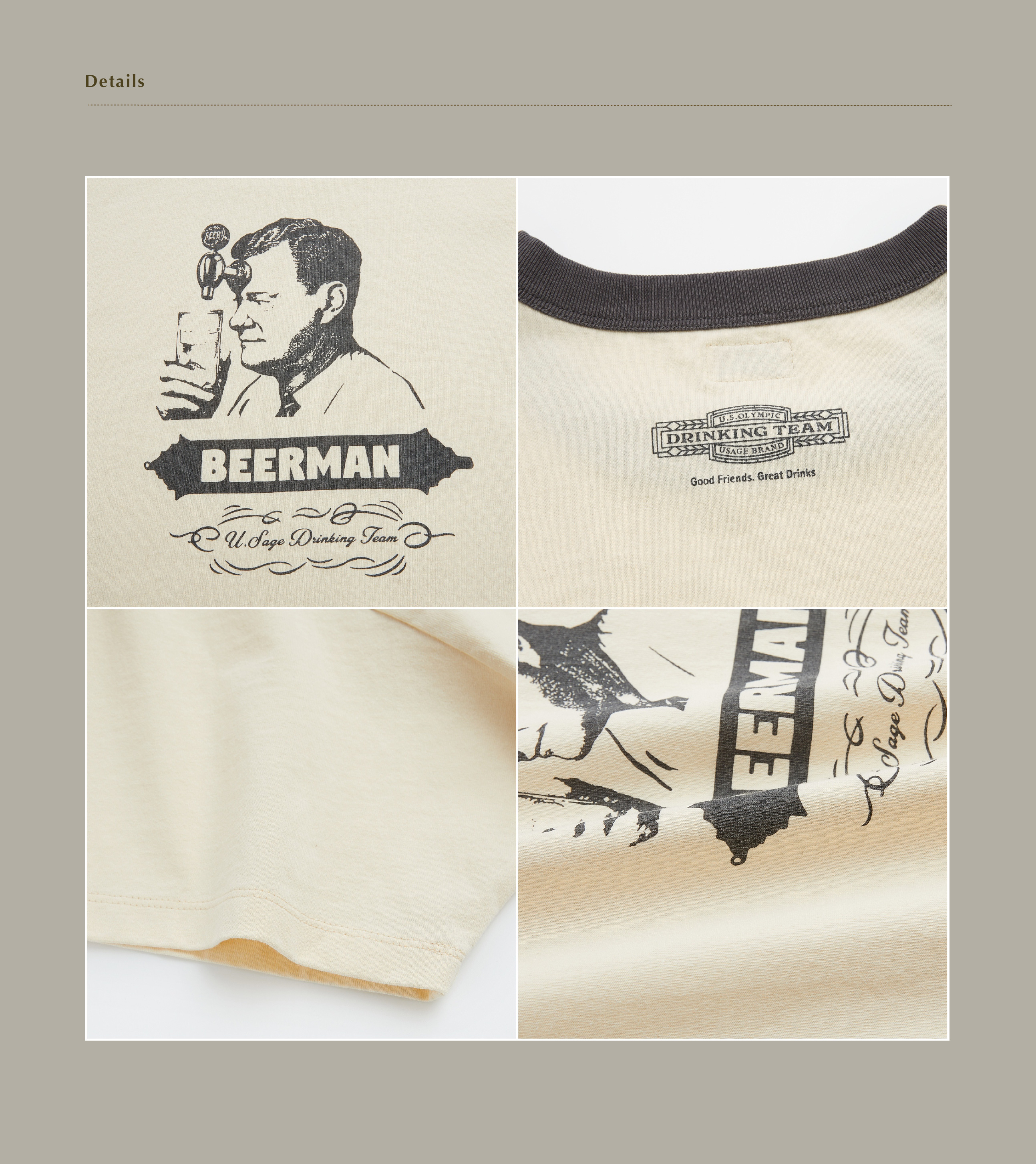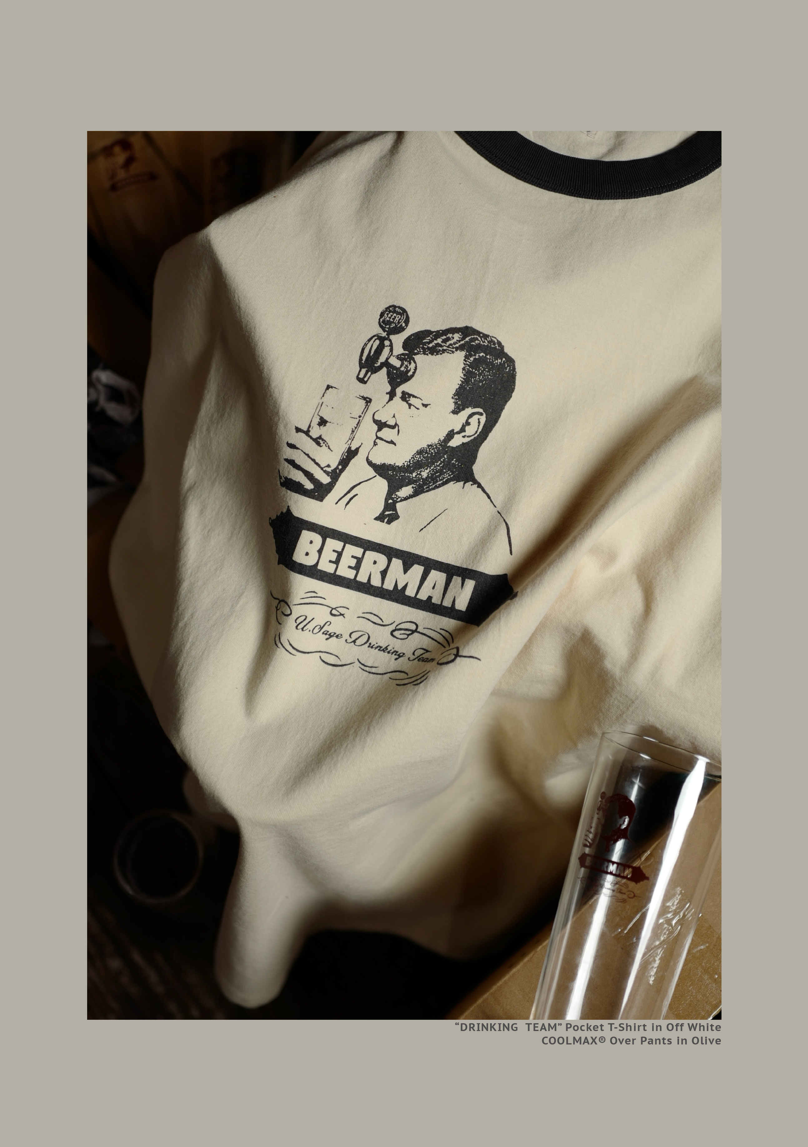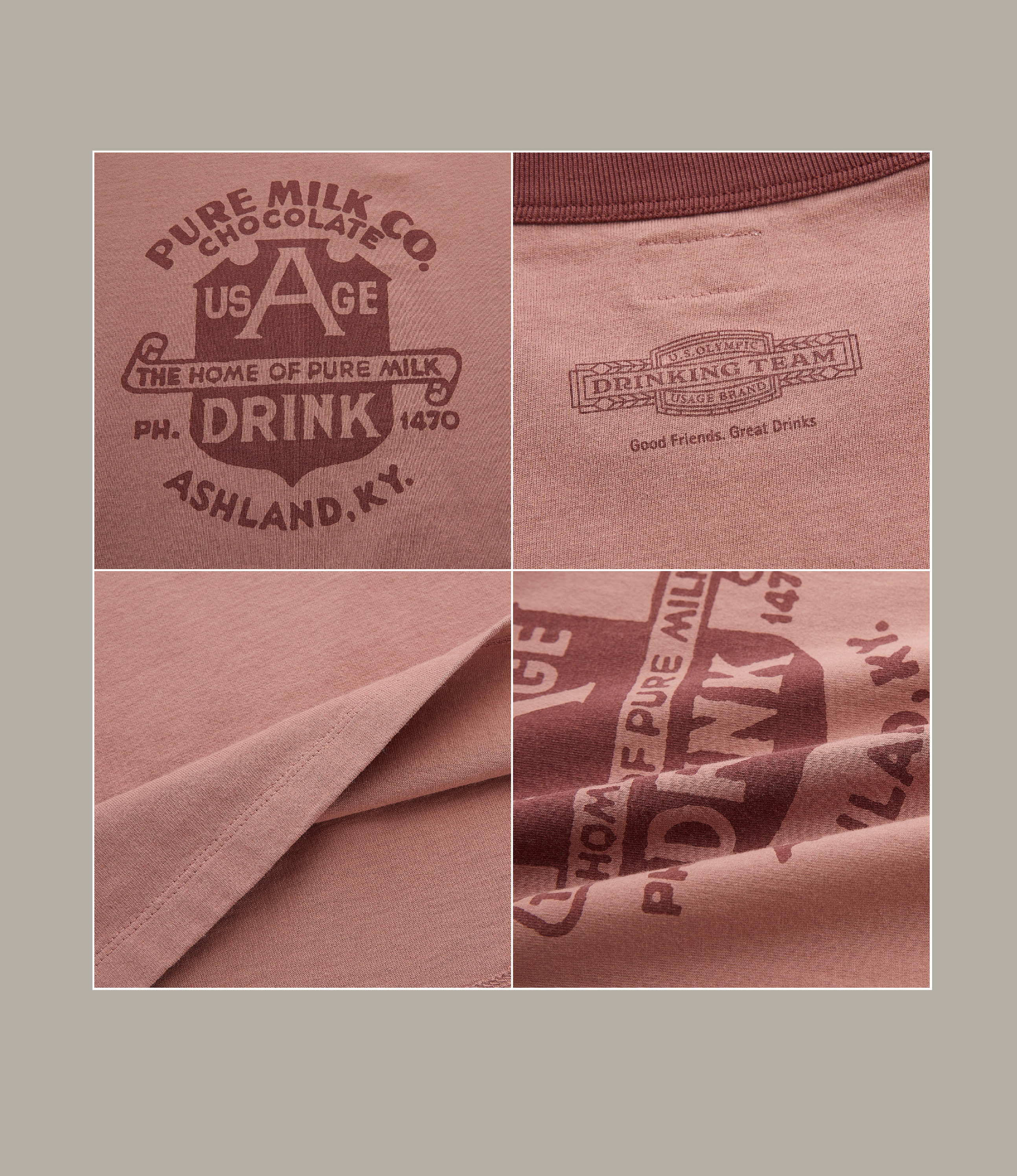 U.Sage SS23 USAGE DRINKING TEAM系列印花復古定織舒適棉滾邊T恤