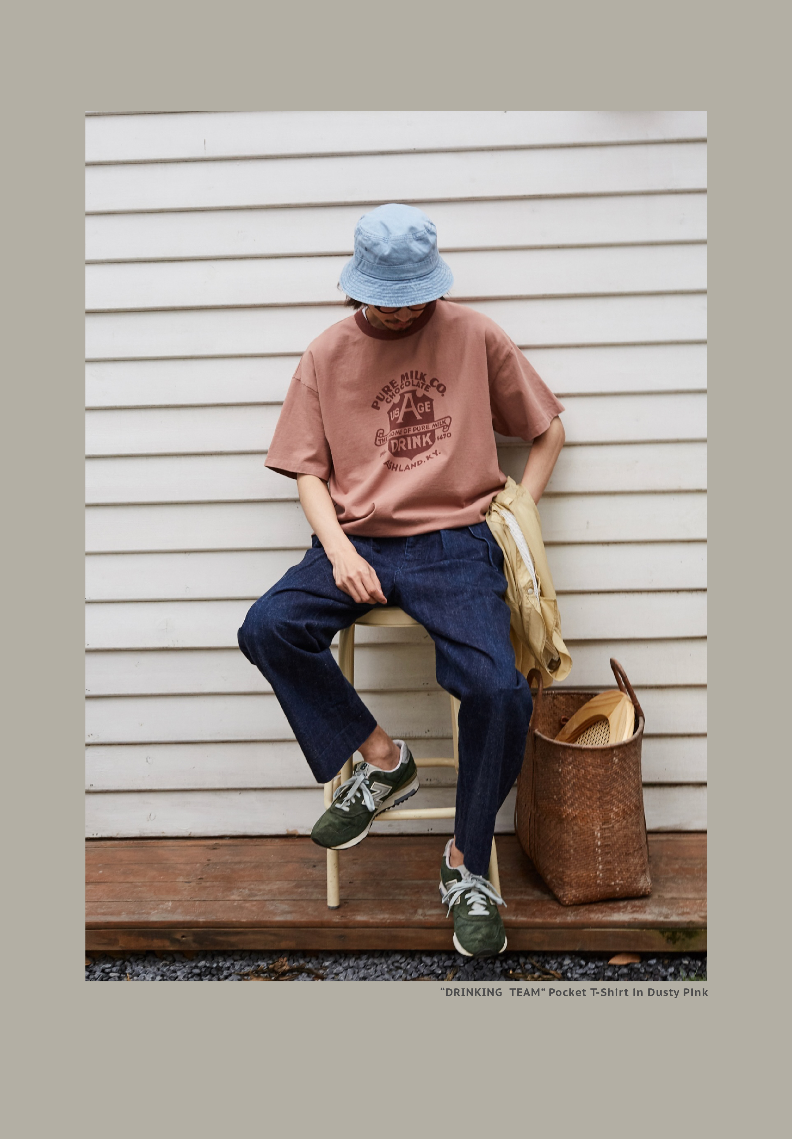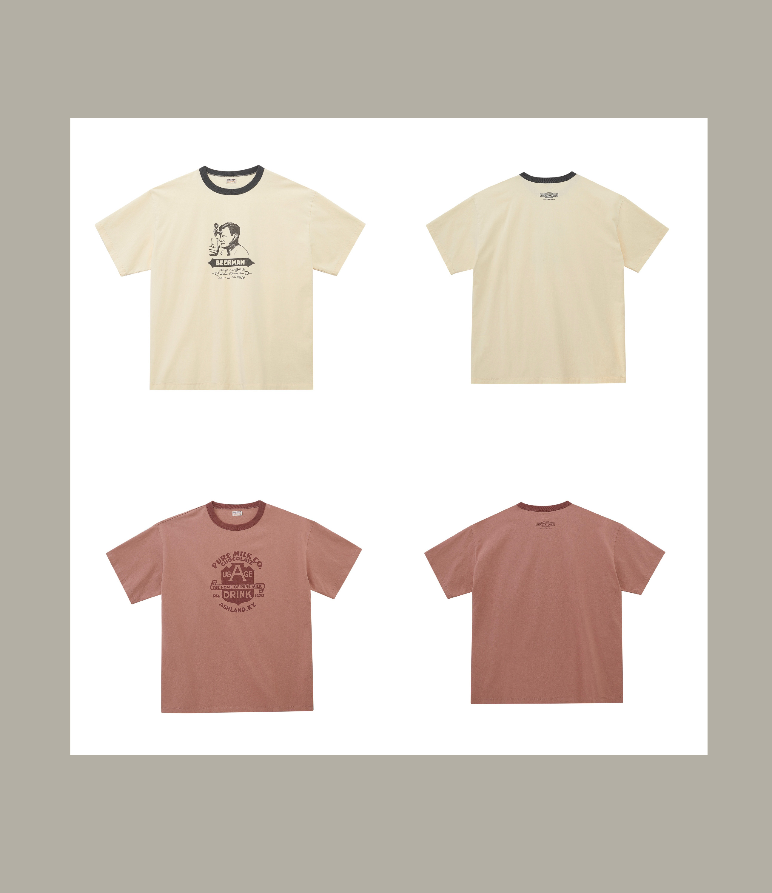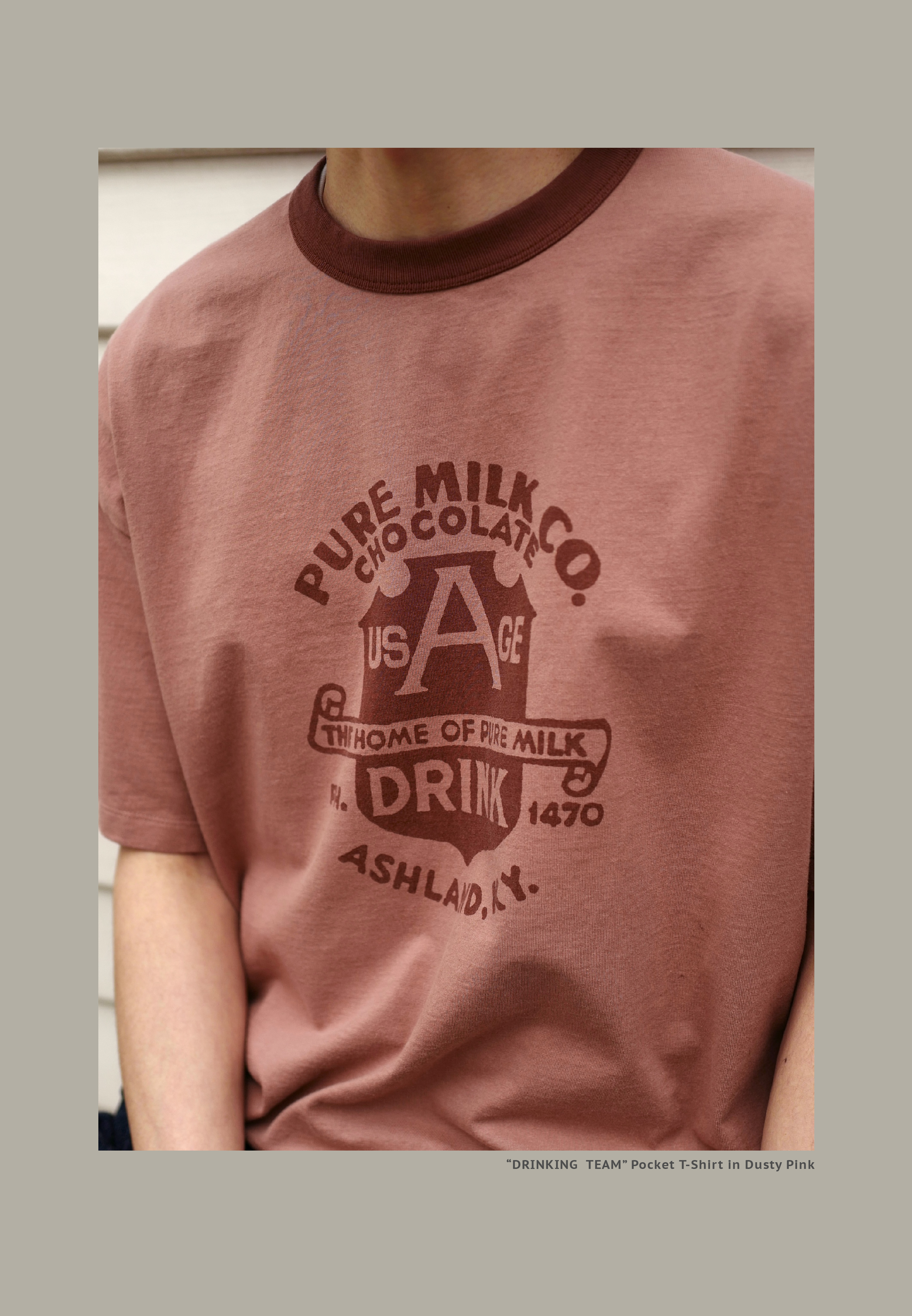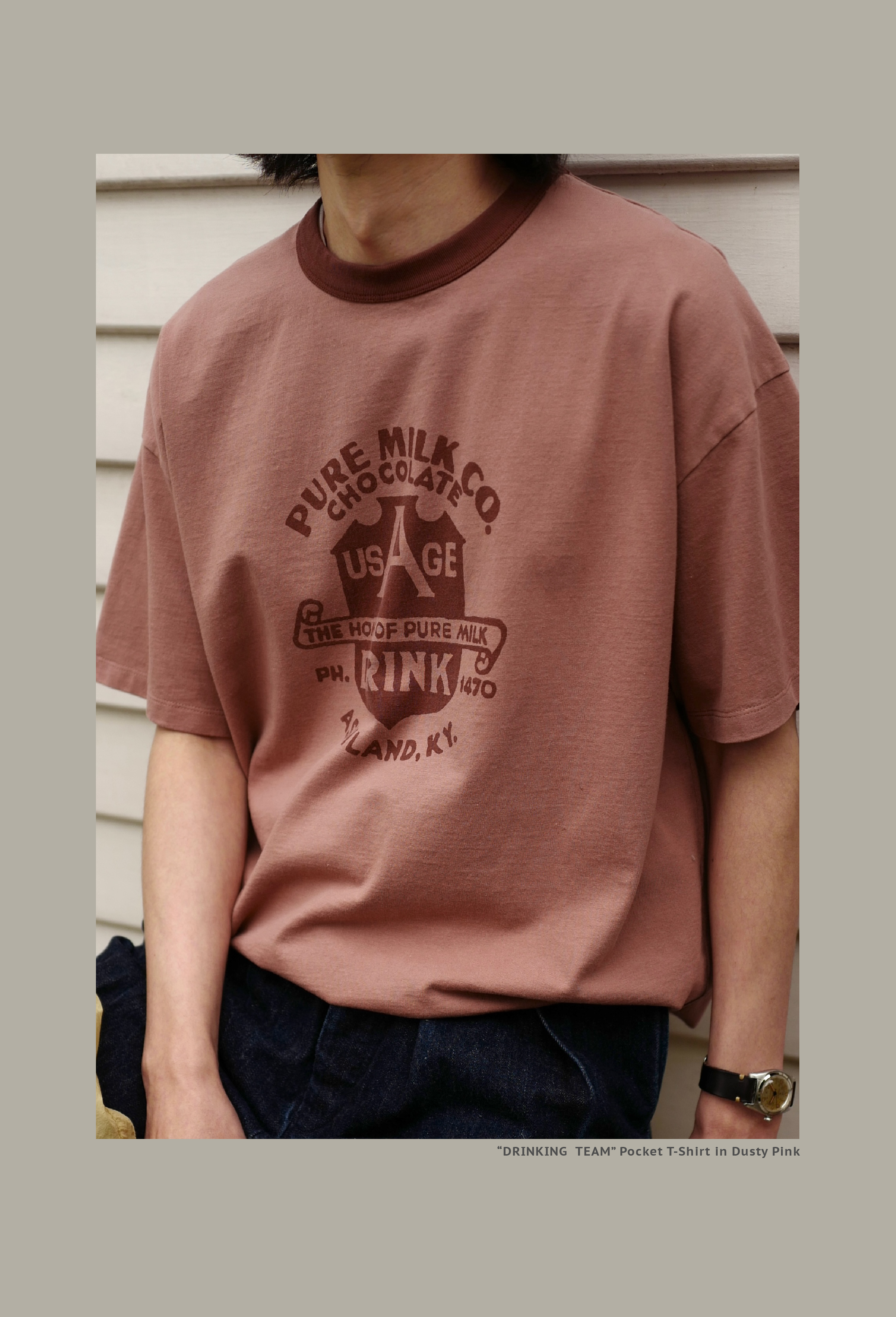 U.Sage SS23 USAGE DRINKING TEAM系列印花復古定織舒適棉滾邊T恤