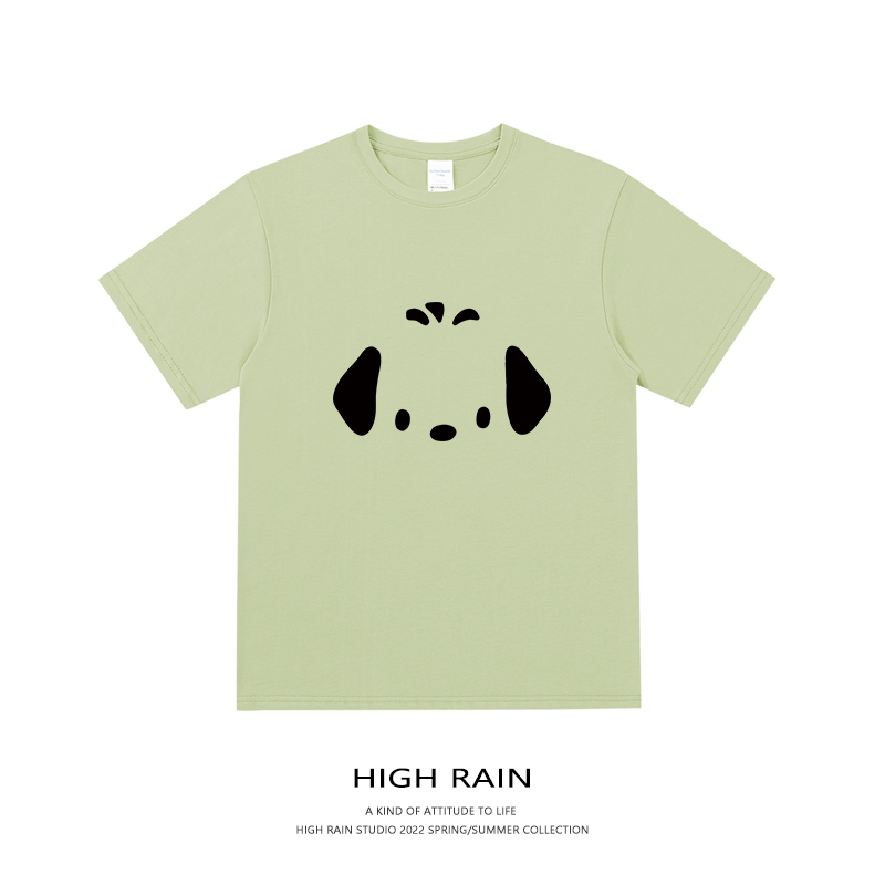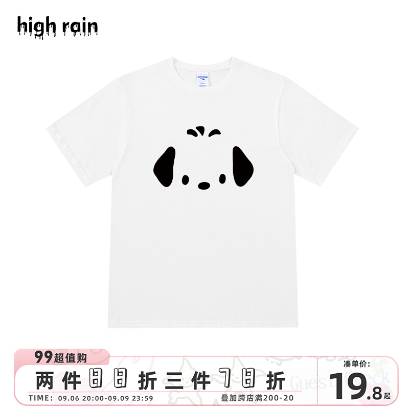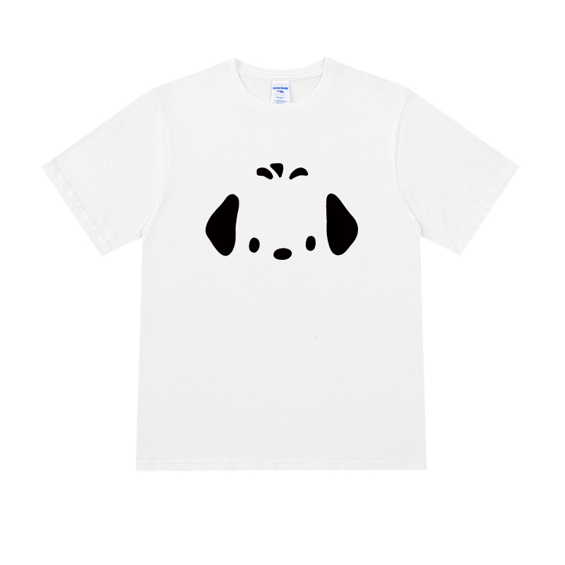 很潤工作室 簡筆畫小狗落肩短袖男女白色校園風純棉百搭情侶T恤