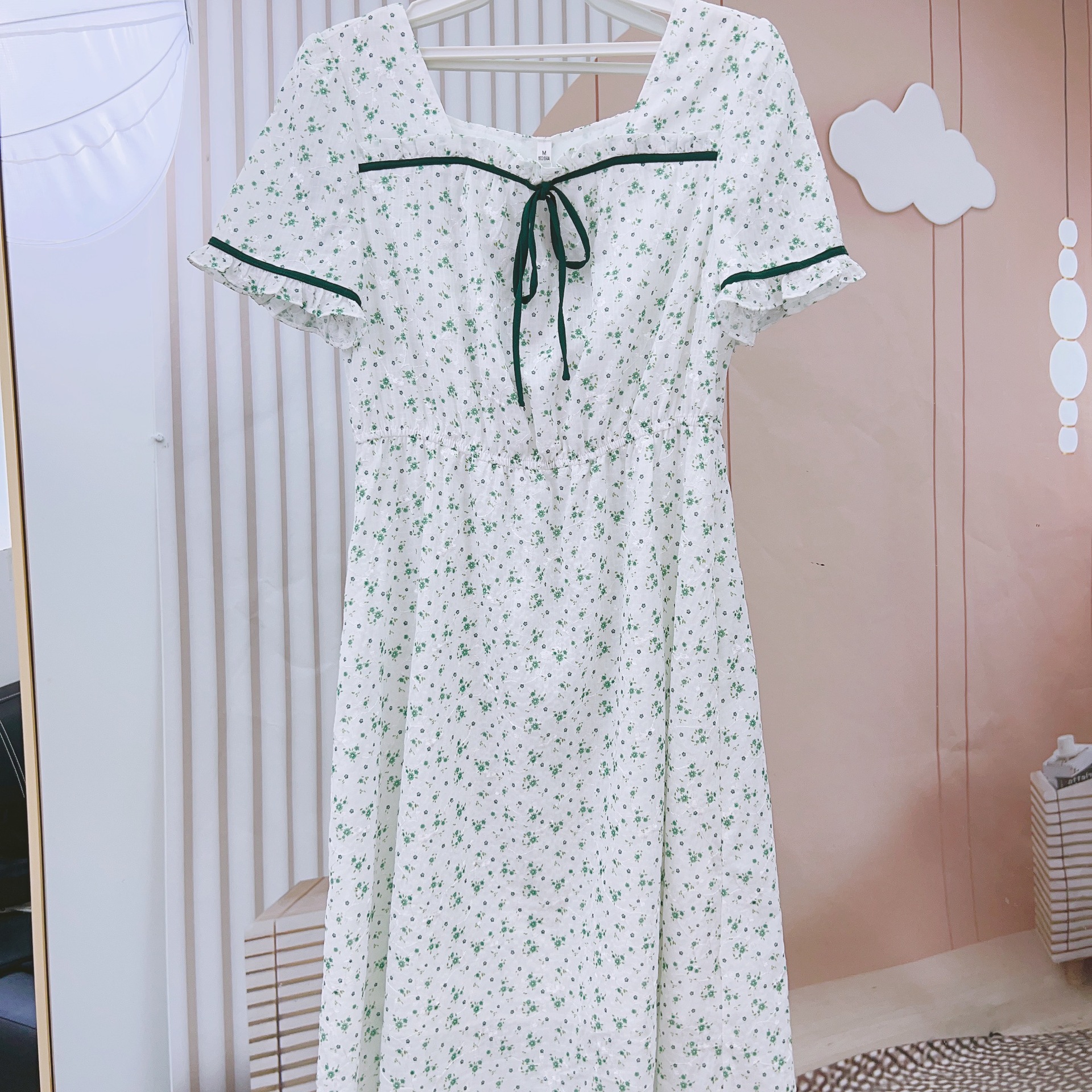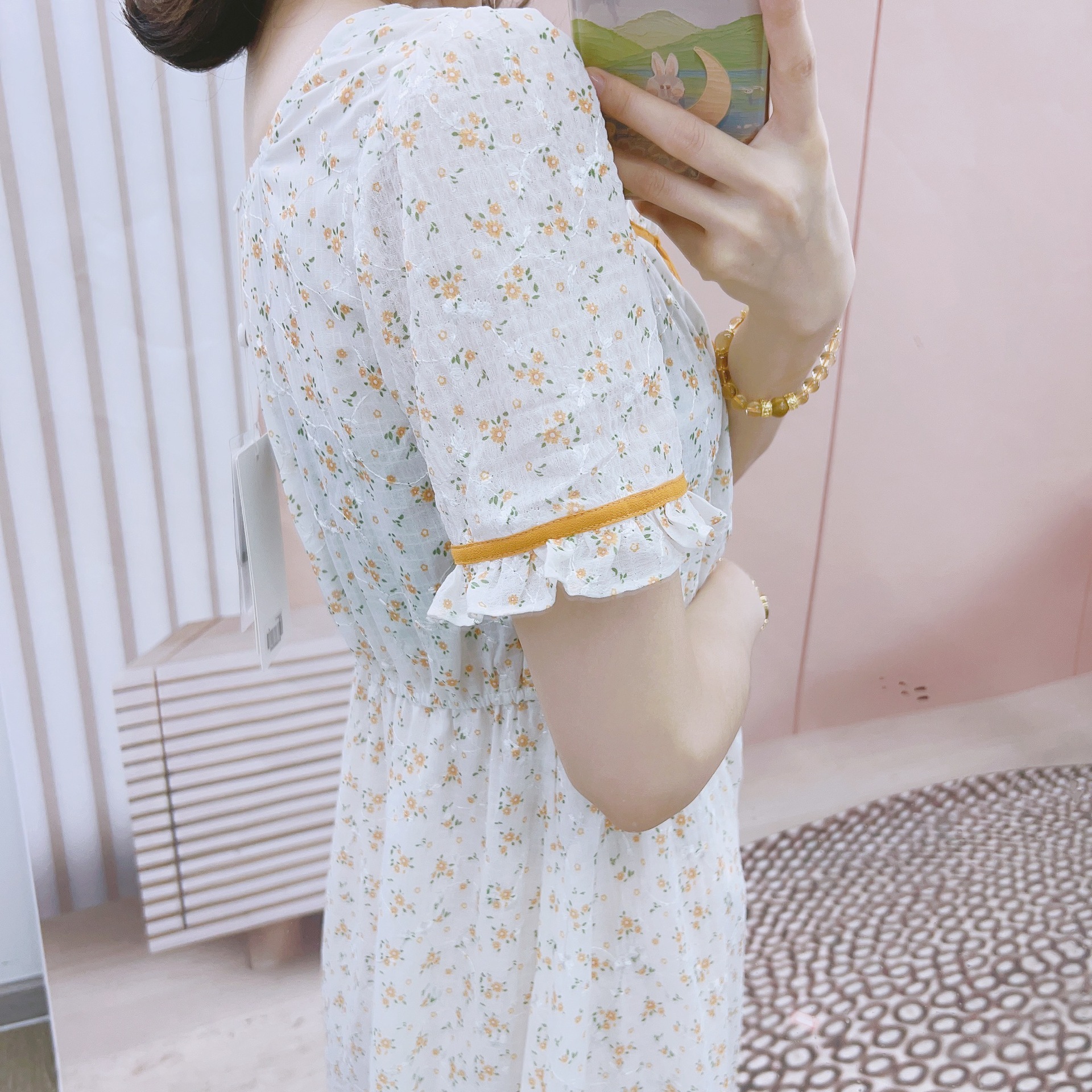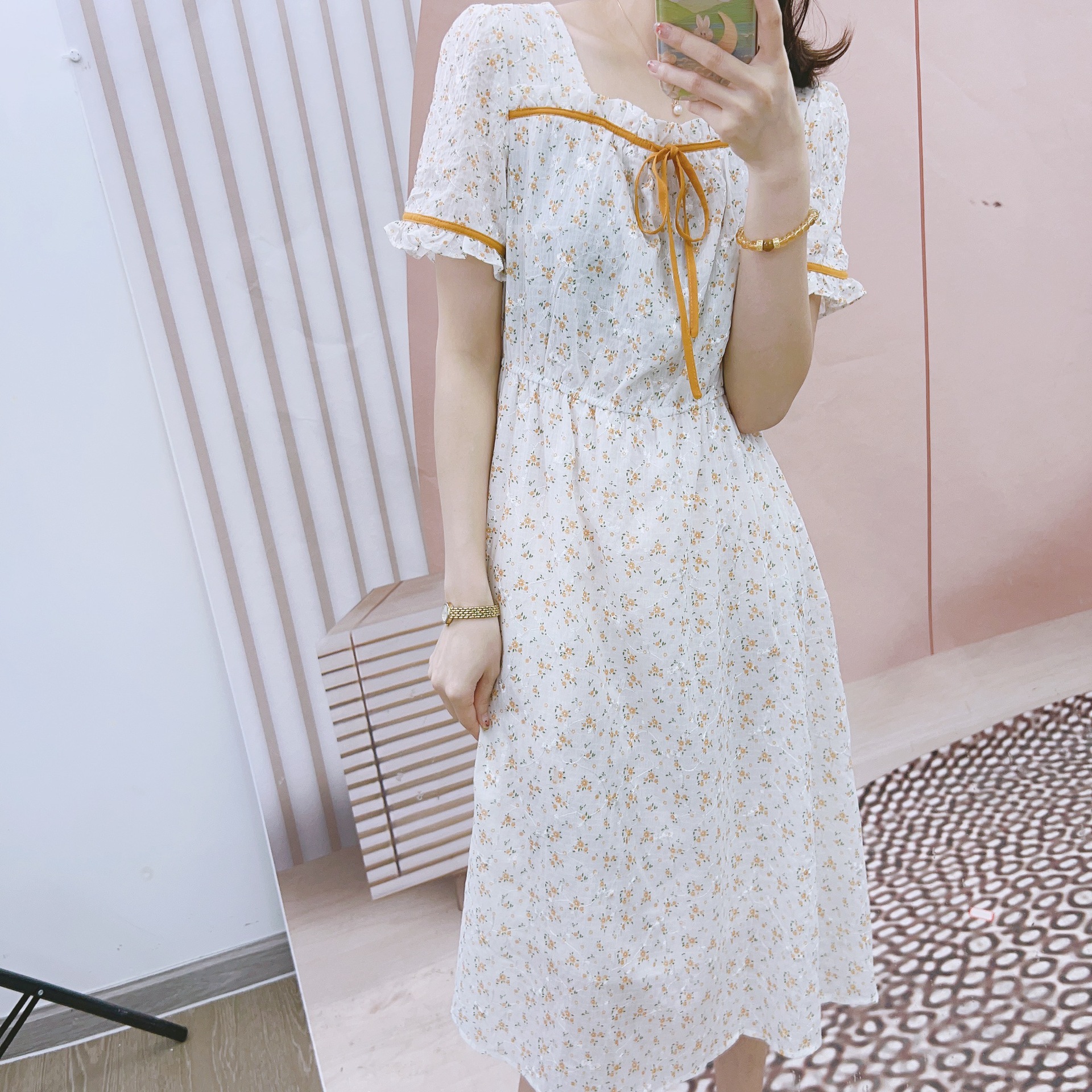 2023年夏季品牌专柜新品汉派韩版时尚气质甜美方领碎花短袖连衣裙