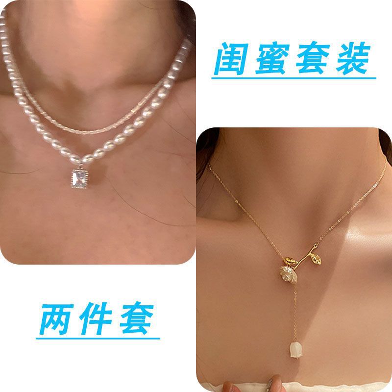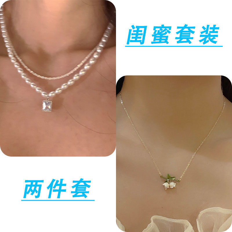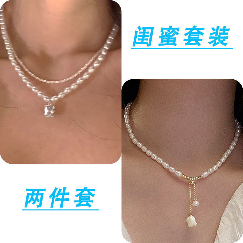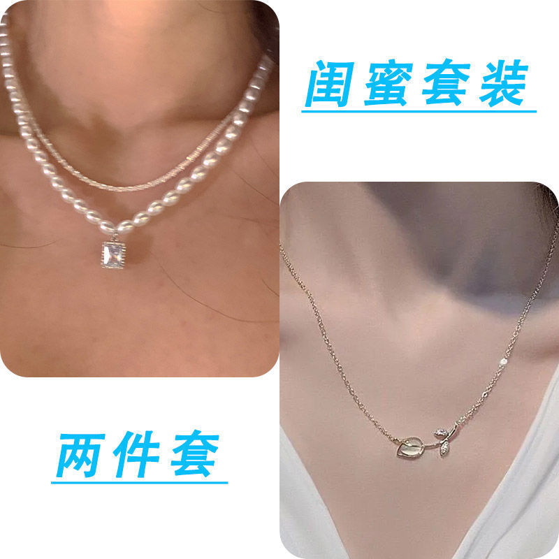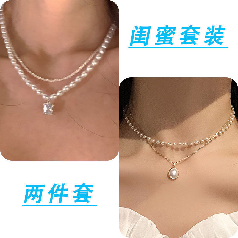 诸暨珍珠项链两件套轻奢小众温柔复古风新款锁骨女网红配饰设计感