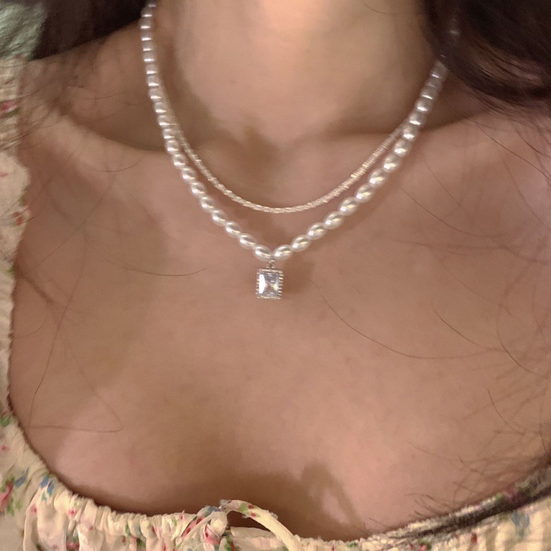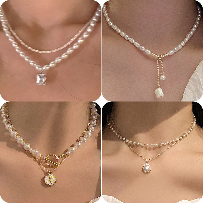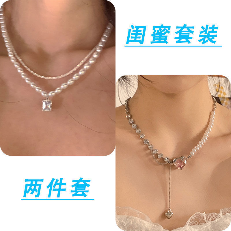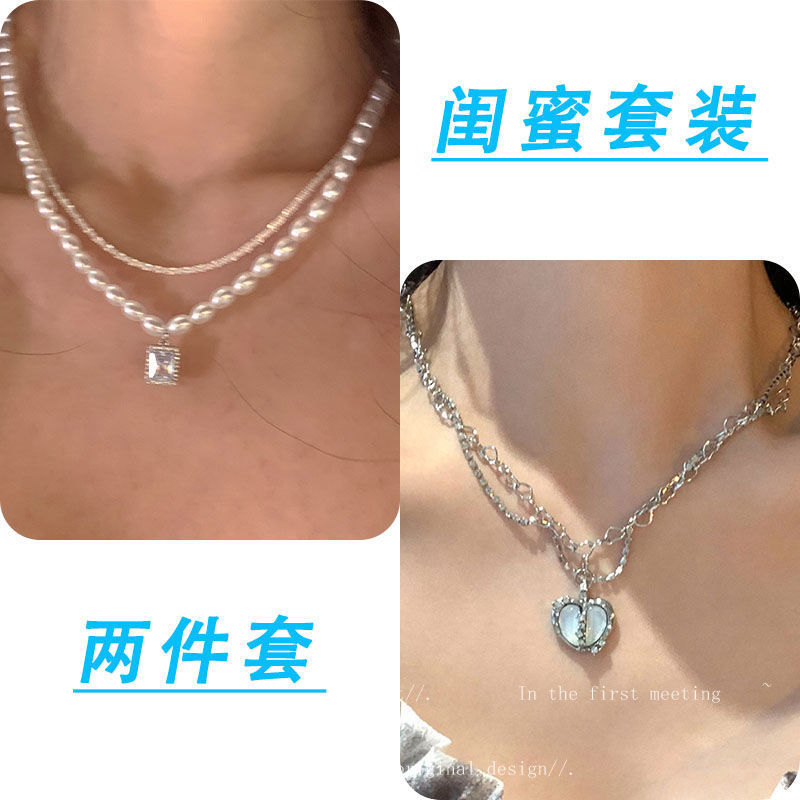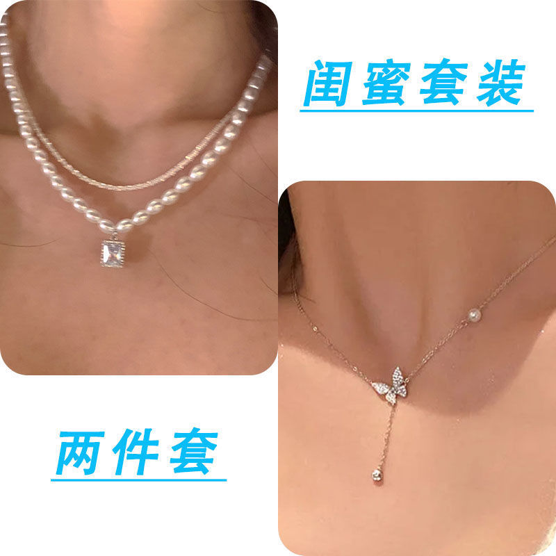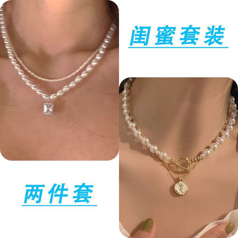诸暨珍珠项链两件套轻奢小众温柔复古风新款锁骨女网红配饰设计感