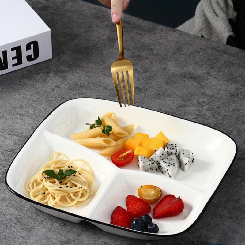 餐盘分隔盘格减脂一人食家用早具家庭儿童陶瓷三格定量子厂家直销¥31.86