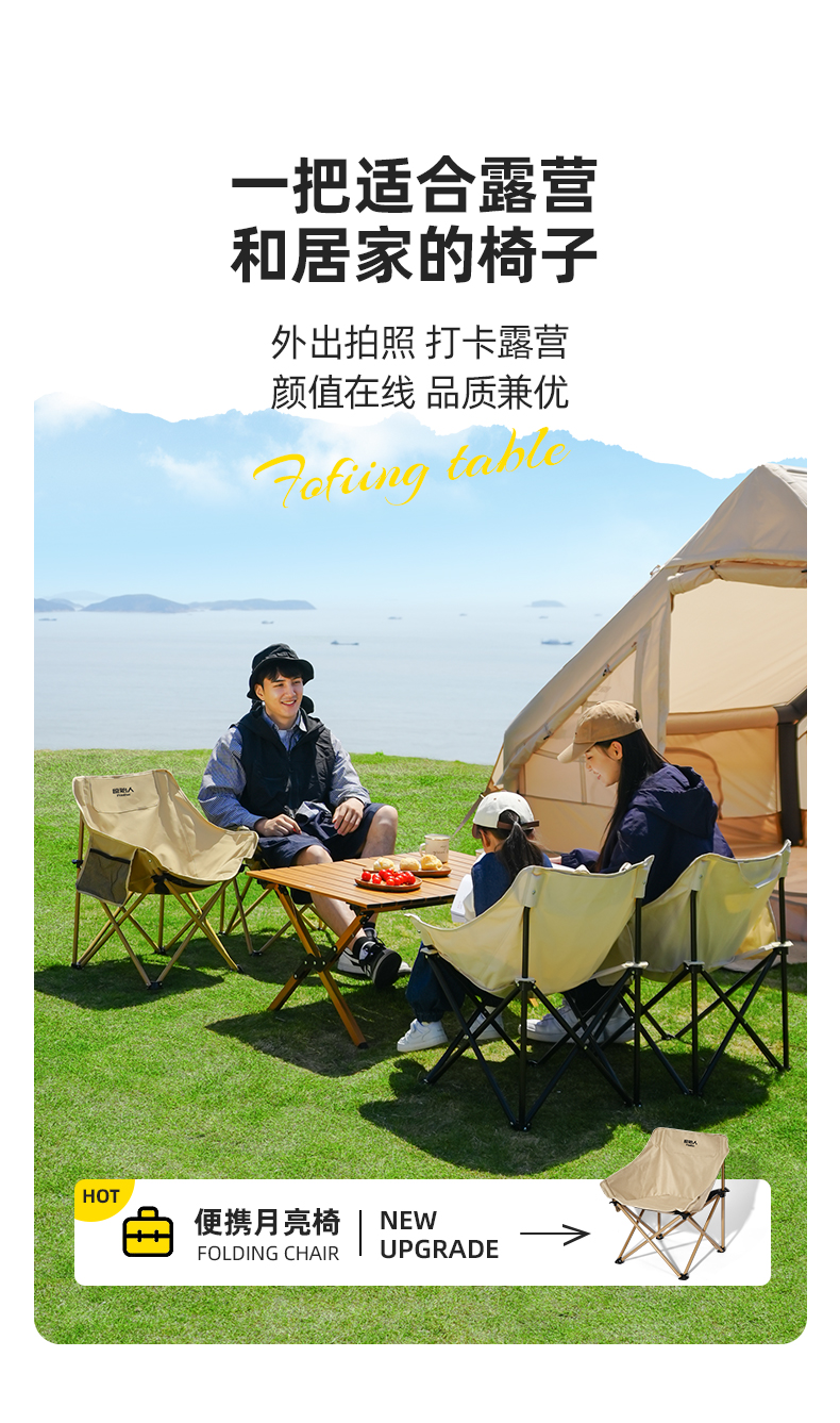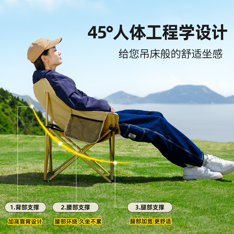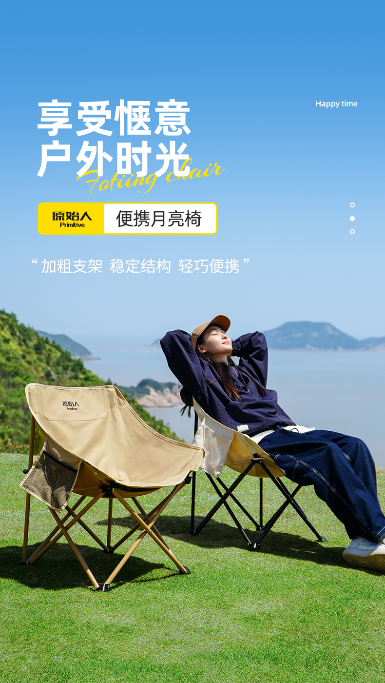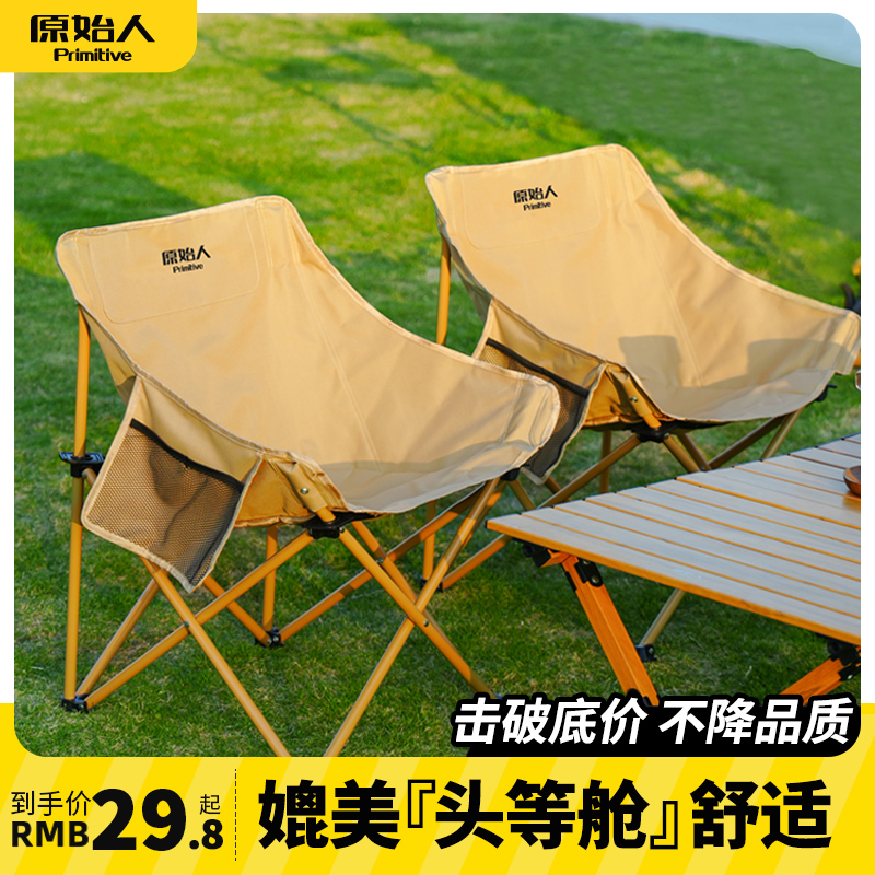 原始人戶外摺疊椅可攜式摺疊月亮椅露營摺疊凳釣魚椅可攜式凳子椅子