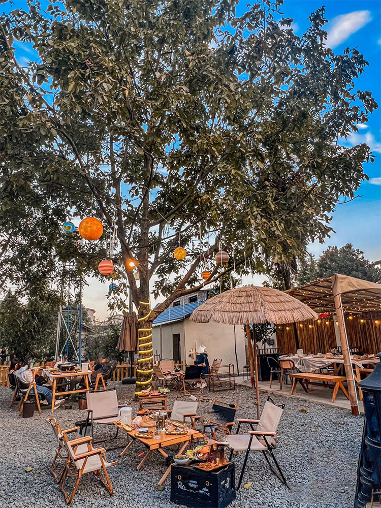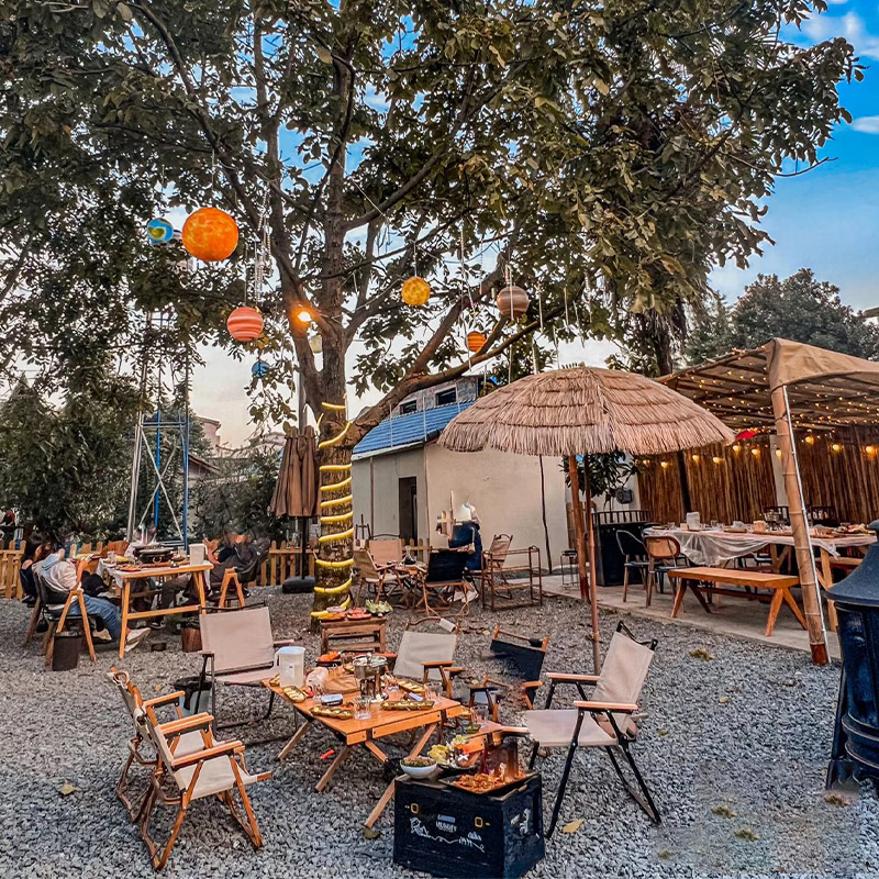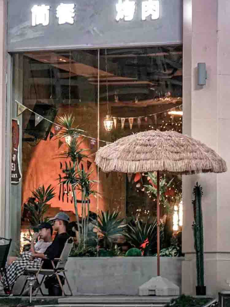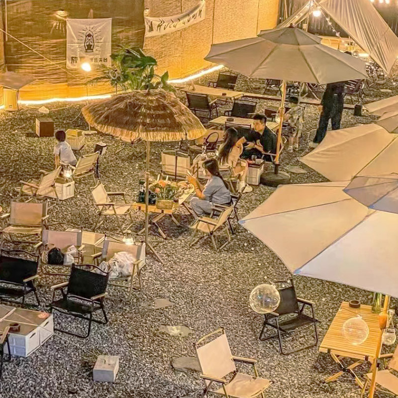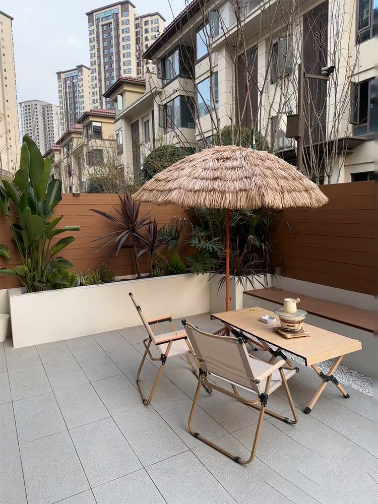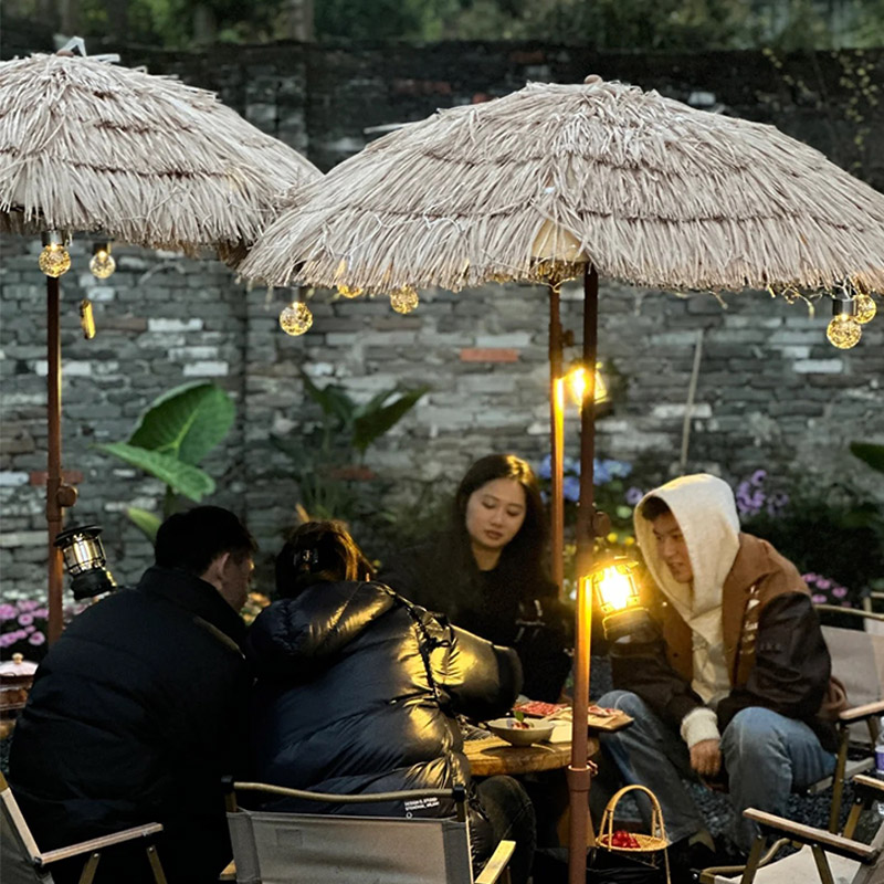 稻草傘蛋卷桌帶四椅套裝露營風小酒館咖啡店烤肉店戶外專用可摺疊